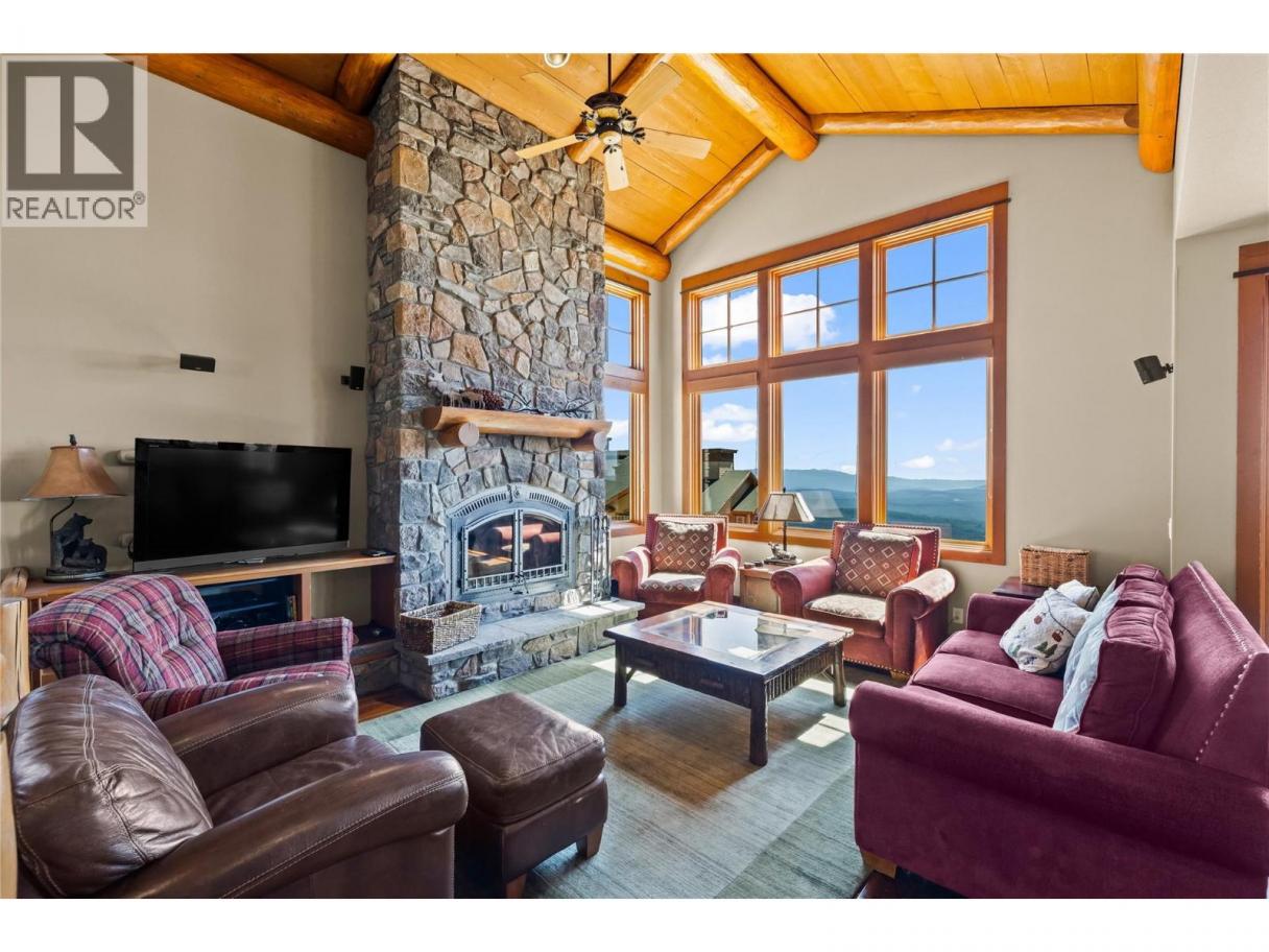 This exceptional stand-alone chalet at Sundance Resort offers the ultimate ski-in, ski-out lifestyle with the convenience of parking right at your front door. Step inside to soaring vaulted timber ceilings and expansive windows that frame breathtaking views of the Monashee Mountains—the perfect backdrop for unforgettable sunsets. Designed for both relaxation and entertaining, this three bedroom plus den, three and a half bathroom retreat features two luxurious primary suites, a cozy wood-burning stone fireplace, private hot tub, and warm, mountain-inspired finishes throughout. Enjoy the full suite of resort-style amenities including a heated outdoor pool with waterslide, hot tubs, sauna, theatre room, games room, and 24/7 concierge service—making it the perfect mountain getaway or income-generating property. (id:6769)
