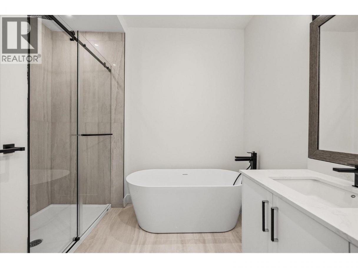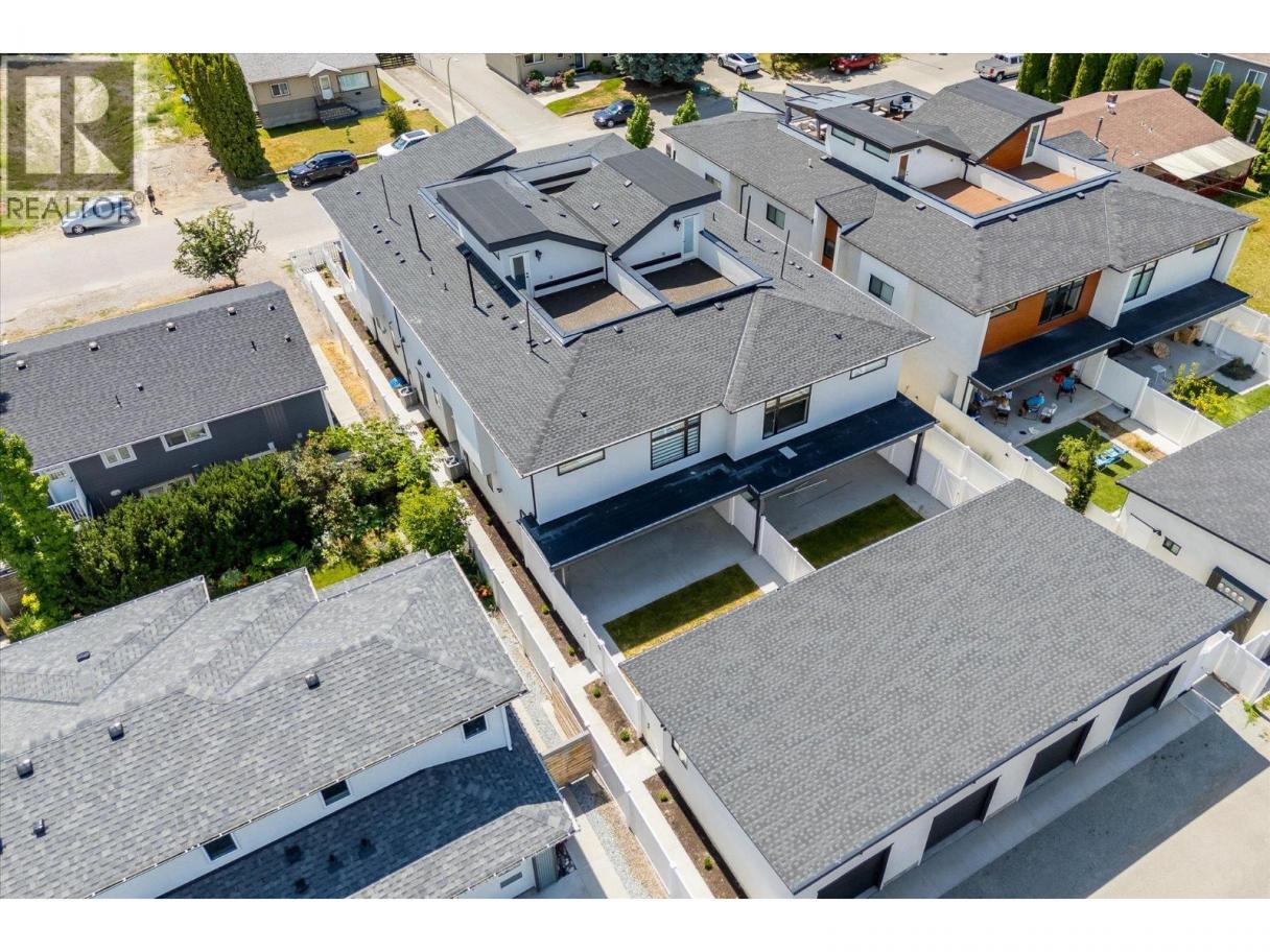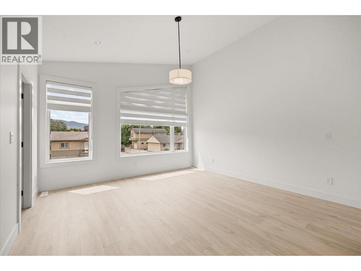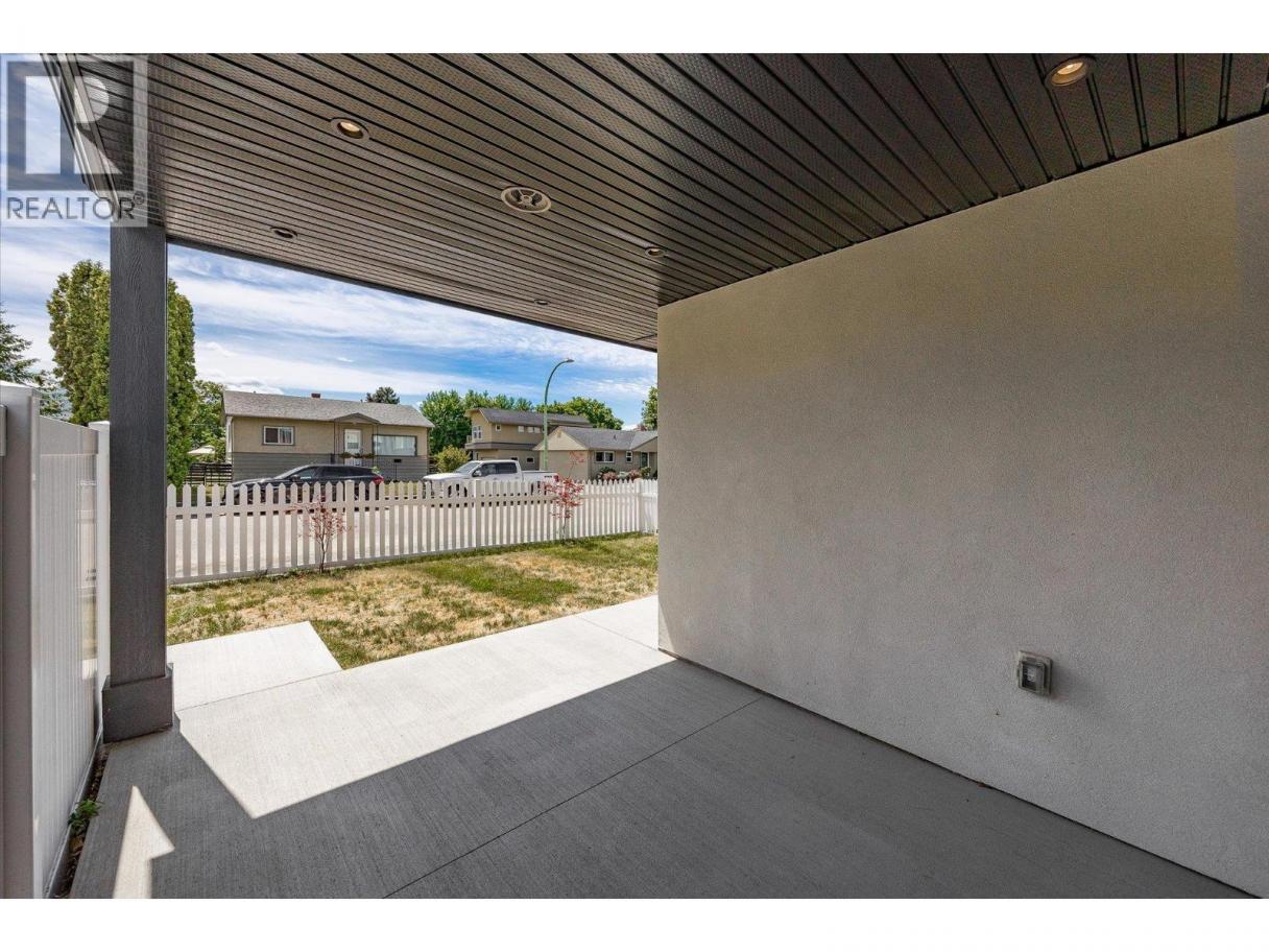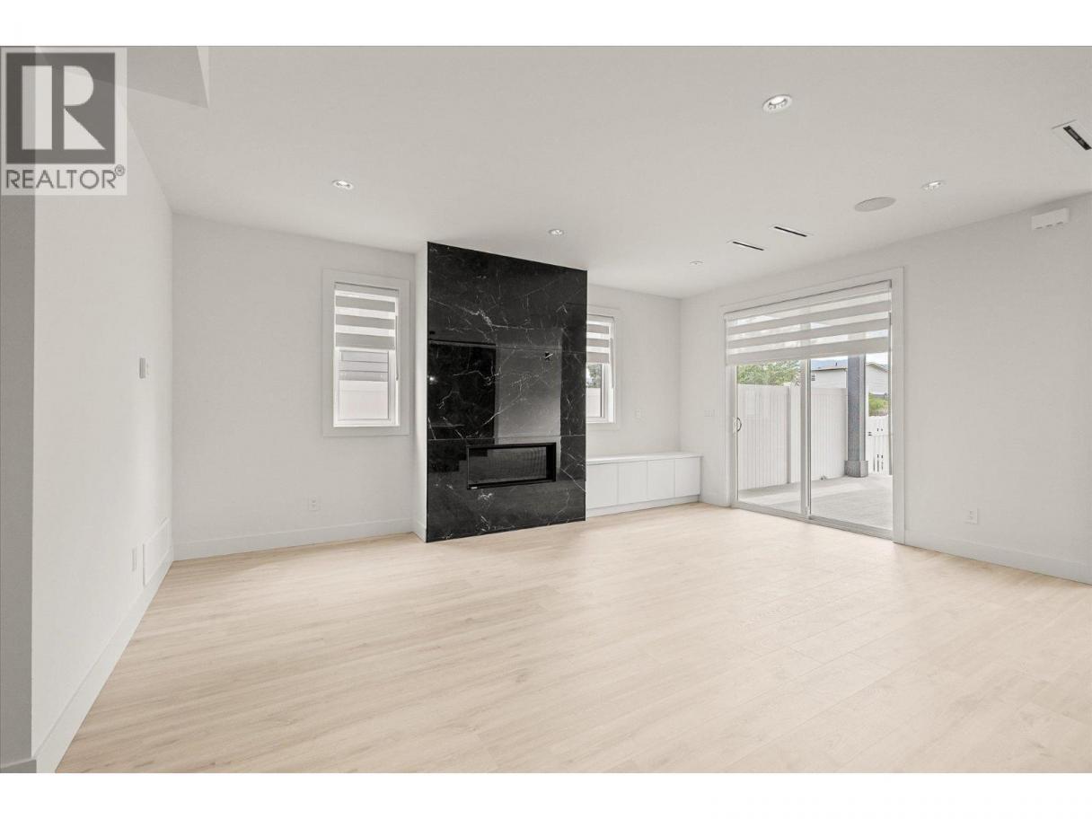Spacious-Brand New-Kelowna South Townhome-Move-In Ready! Blending modern design with contemporary charm, this 3-bedroom, 3-bathroom townhome offers 1,994 sq ft of thoughtfully designed living space. Highlights include a private rooftop patio, a spacious front yard with a classic white picket fence and a single detached garage. Inside, you’re welcomed by 9-foot ceilings and an open-concept main floor featuring wide plank laminate flooring, custom window coverings and elegant built-in cabinetry throughout. The chef-inspired kitchen boasts a large island with built-in storage, striking two-tone cabinetry, stainless steel appliances and a gas range—perfect for entertaining! Finishes include white granite countertops, a cozy gas fireplace set against a stylish feature wall and main floor built-in speakers (indoor and outdoor). The primary suite offers a generous size bedroom and a vaulted ceiling, a large walk-in closet, and a 5-piece ensuite complete with a freestanding tub and a private water closet. Two additional spacious bedrooms feature TV/media hookups and the same floor laundry room including a stacked washer/dryer with built-in cabinets. Ideally located just minutes from parks, schools, shopping, KGH and the lake this home offers the perfect blend of spacious living, everyday comfort and lifestyle convenience. (id:6769)