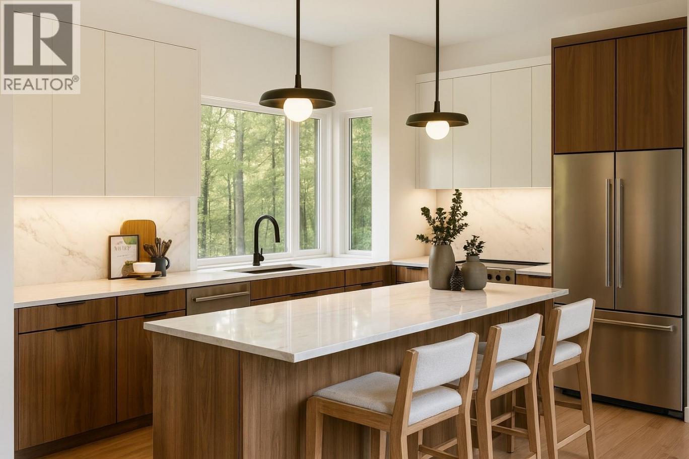Welcome to Juniper Grove at McKinley Beach, single-family homes surrounding Arrowroot Pond in the Hilltown neighborhood. Lot 9 is a thoughtfully designed 3-bedroom plus den, 4-bath residence highlighted by two primary bedrooms, each with its own ensuite, creating an ideal layout for multi-generational living, hosting guests, or offering additional privacy and flexibility for today’s lifestyle. The open-concept design features a modern kitchen, a welcoming fireplace, and a wrap-around deck with views of the natural surroundings. With ample parking and stylish mid-century modern finishes, the home combines everyday functionality with contemporary elegance. Juniper Grove offers the best of the McKinley Beach lifestyle, with easy access to trails, playgrounds, and the beach, along with the nearby amenity centre featuring a pool, hot tub, gym, and yoga room. The neighborhood is connected, family-friendly, and designed for both relaxation and recreation, while still being just minutes from Kelowna International Airport, UBCO, and downtown Kelowna. Move-in is scheduled for January/February 2026, making this an exceptional opportunity to own in one of Kelowna’s most sought-after lakefront communities. (id:6769)