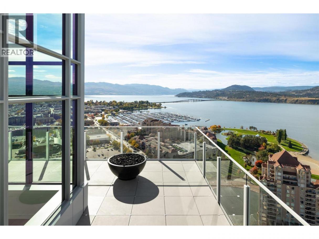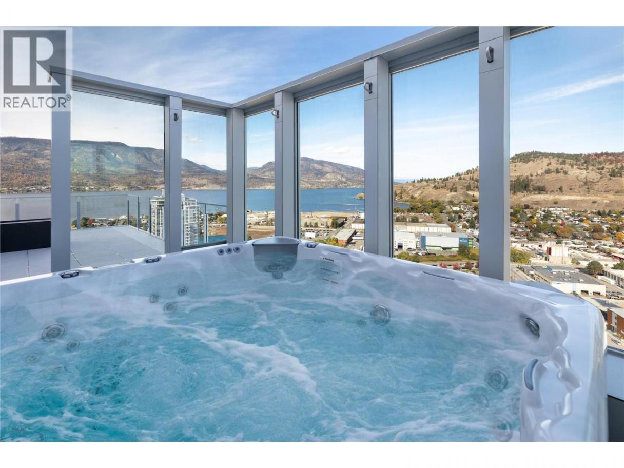 This penthouse at ONE Water Street, elegantly defines Okanagan urban living. Compromising one-half of the 29th floor and purposefully designed to make the most of Kelowna's vistas and natural light, enjoy captivating panoramic views through large spanning bay windows, offering unparalleled sights of the city, lake, and mountain scape. Expansive 3-bedroom home offering over 2300 sq. ft. of open concept living ideal for everyday living and entertaining. Well-appointed with carefully selected custom finishings, a superior appliance package and soaring ceilings. Designed with outdoor living in mind, enjoy enthralling views from the immense outdoor space totalling over 1,200 sq. ft. and featuring a fire pit, hot tub and outdoor kitchen. Retreat to the sensational primary suite with a spa-inspired en suite. SMART Home package for your convenience with automatic blinds, audio, climate control, security and lighting. Secure parking for 3 cars. Residents of ONE Water will relish in access to The Bench. The landscaped 1.3-acre amenity oasis is comprised of two impressive swimming pools, oversized hot tub, a pickleball court, outdoor seating with fire pit enclaves, a dog park, and so much more. Just steps from your front door, you will find a selection of restaurants, cafes, retail stores, and services lining the ONE Water Street streetscape. Georgie Award Finalist for BC Residential Community of the Year. (id:6769)