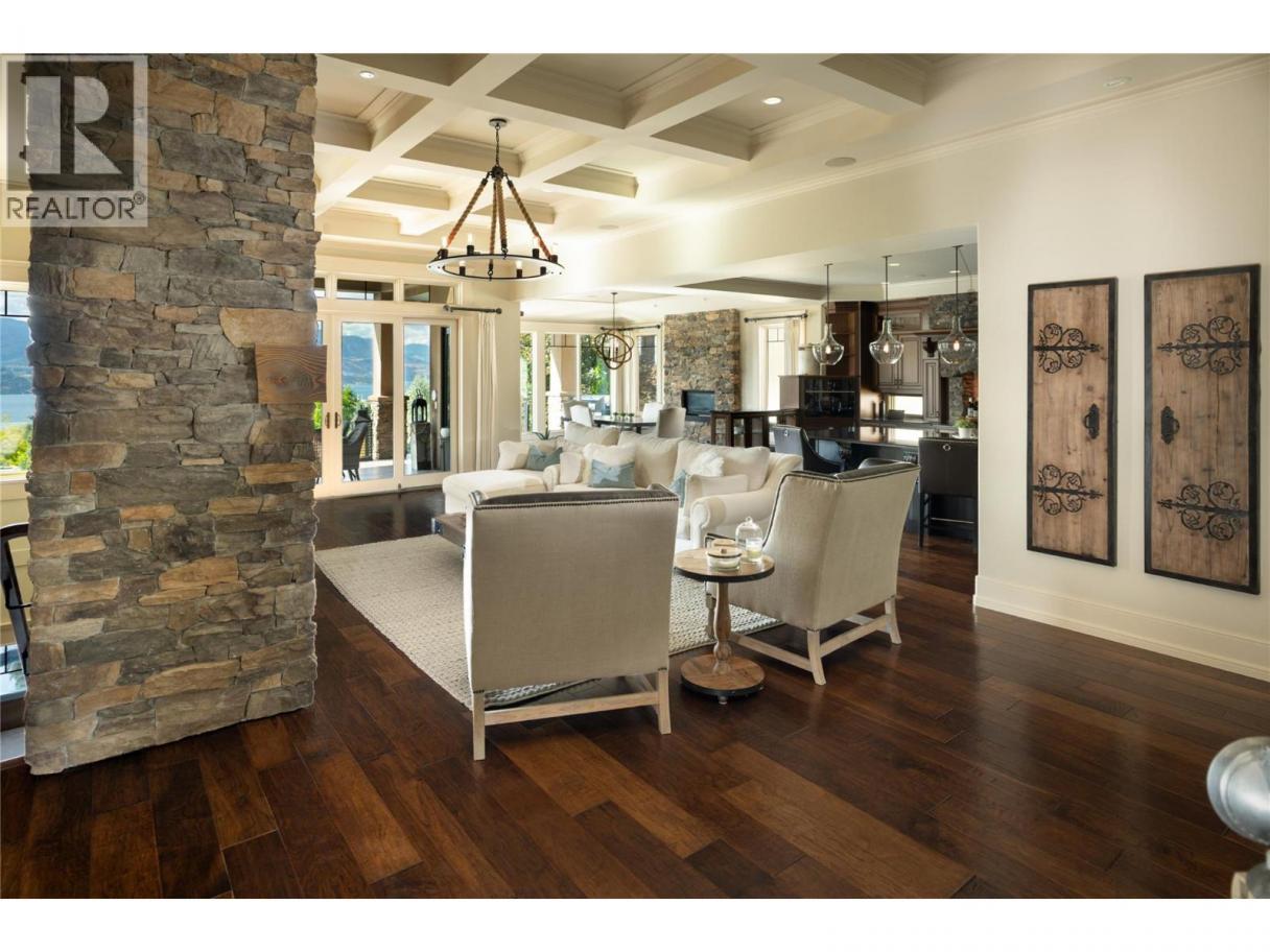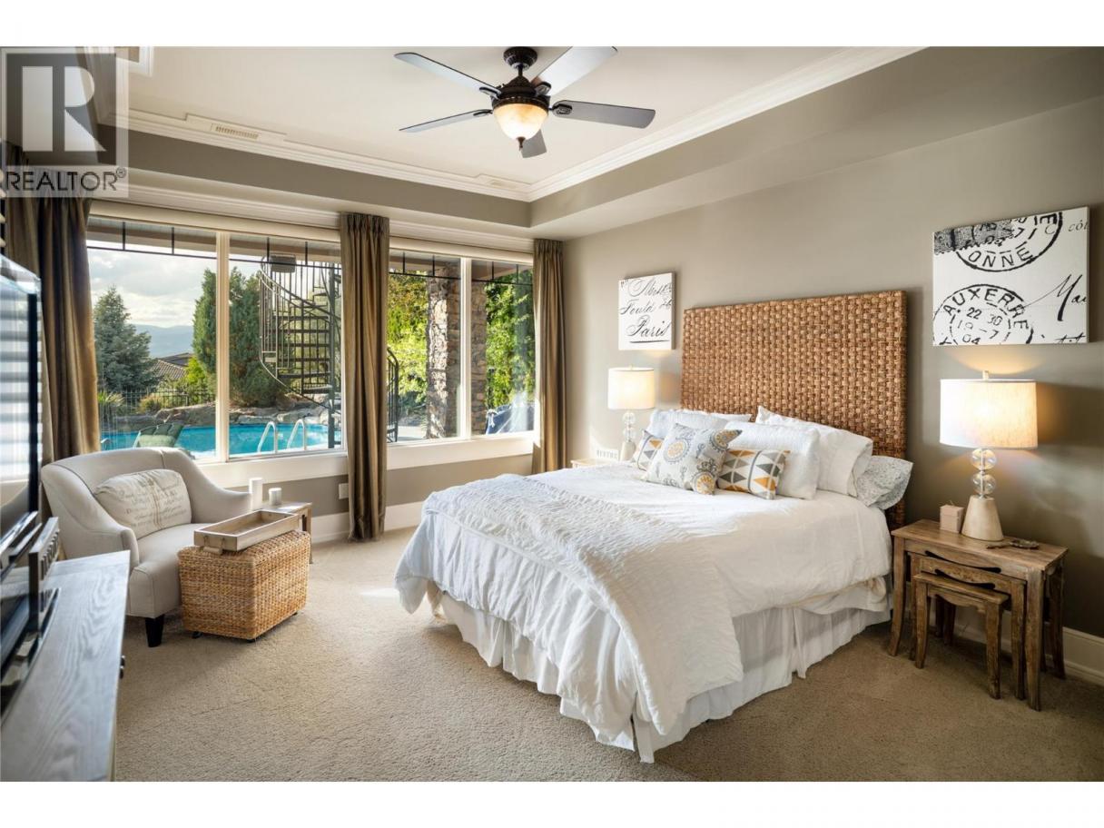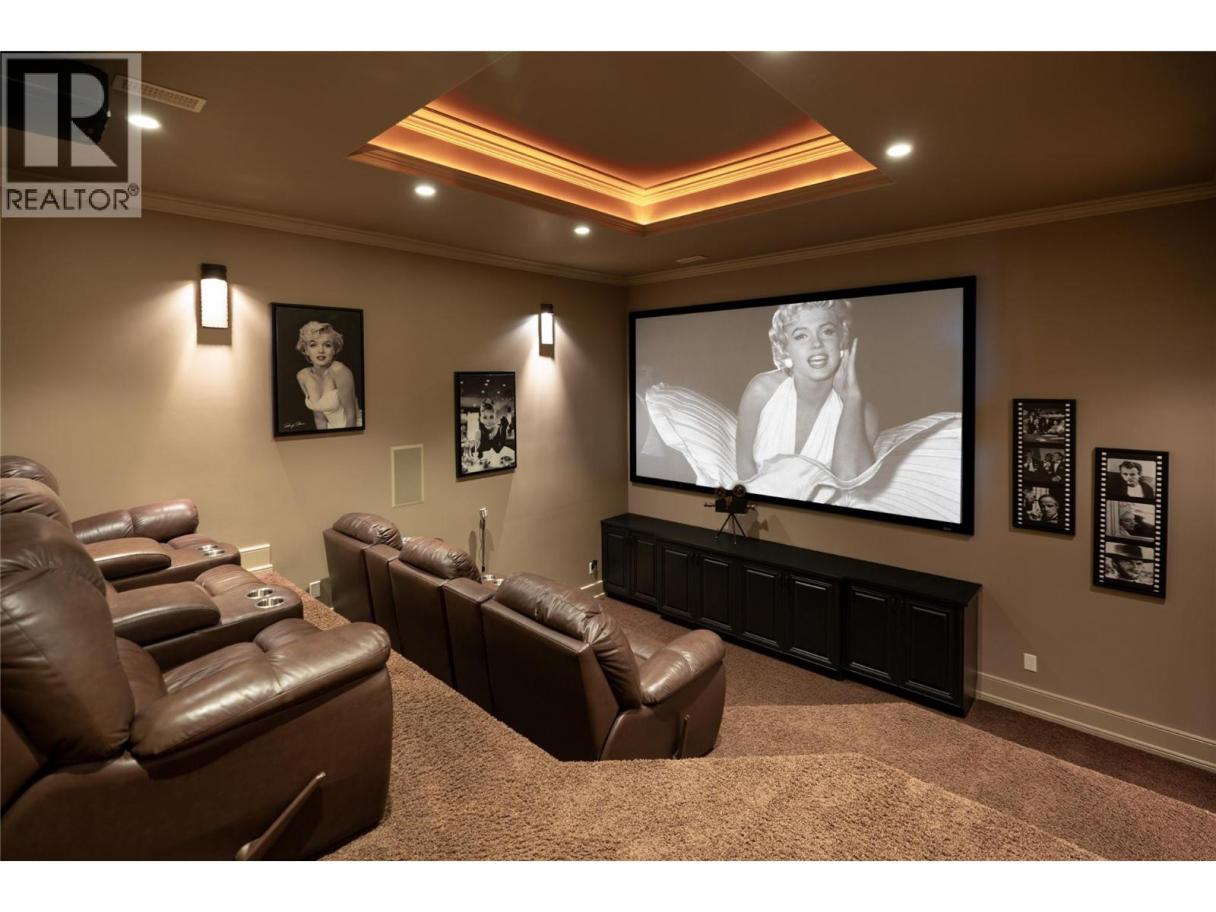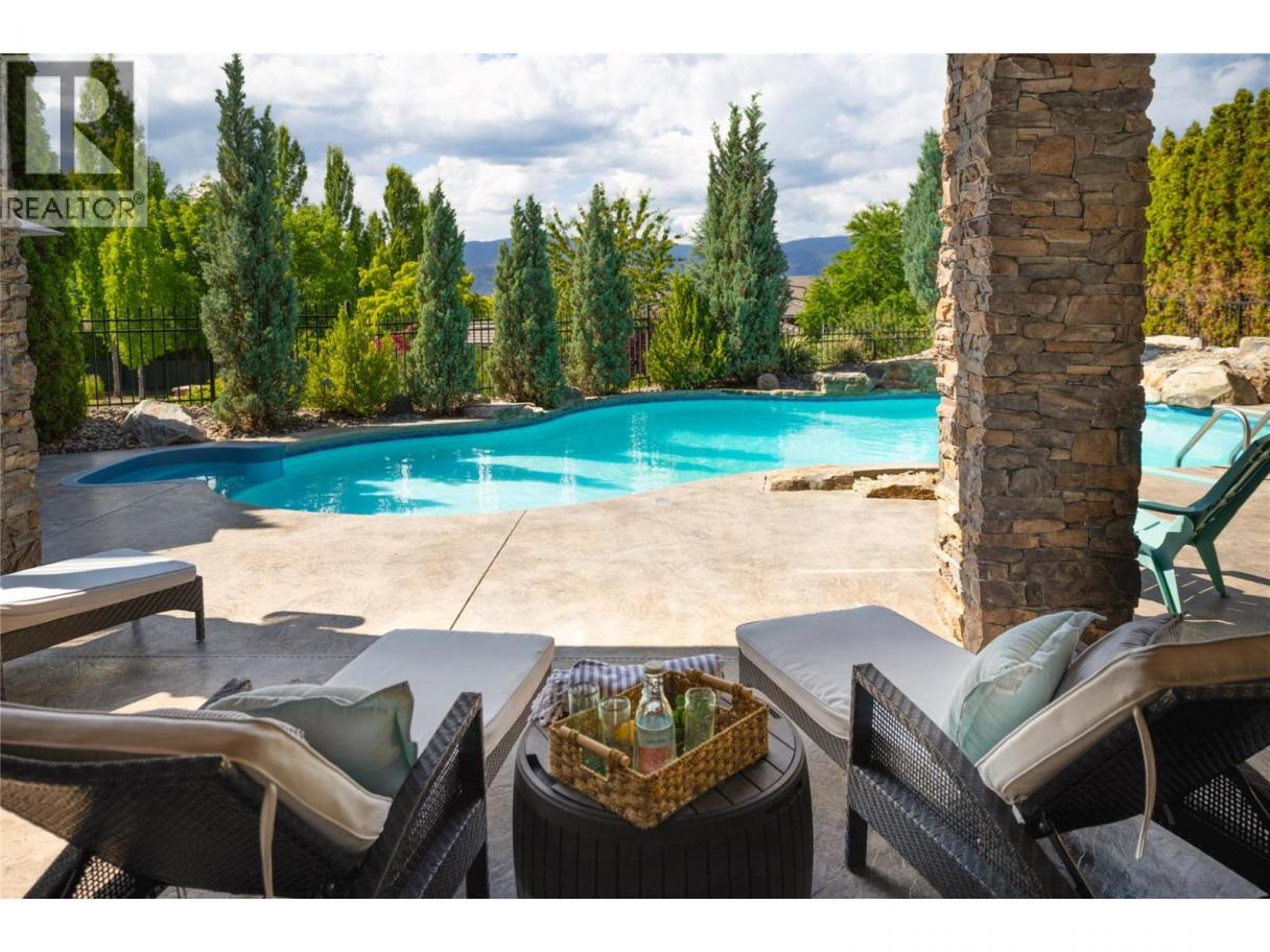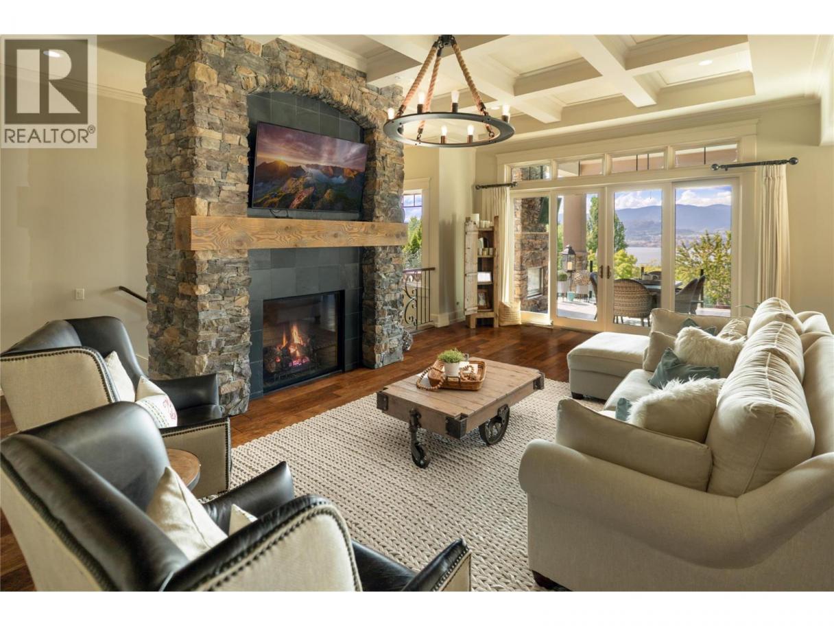 THIS HOME HAS IT ALL! A Tommie Award-winning masterpiece by Bill Frame of Frame Construction, this extraordinary residence offers an unmatched blend of luxury, privacy & resort-style living in one of Kelowna’s most coveted neighbourhoods. Impeccably designed & built with enduring quality, the home showcases rich hardwood flooring, soaring custom ceilings & striking floor-to-ceiling natural stone fireplaces throughout. The primary suite is located on the main level, creating a true private retreat with a spa-inspired ensuite, reading nook & direct access to the deck. The chef’s kitchen is both functional & exquisite—equipped with a full JennAir appliance package, oversized granite island & a walk-through butler’s pantry with wine storage & prep space for seamless entertaining. The main level flows effortlessly through the grand living & dining spaces to the covered patio—complete with an outdoor fireplace & breathtaking lake, city & mountain views. On the walk-out lower level, you’ll find two additional bedrooms alongside a tiered theatre room, full bar with lounge seating, wine cellar & fitness room—an entertainer’s dream. The spacious family room opens directly to your private backyard sanctuary featuring a saltwater pool with water feature, hot tub & lush greenery for ultimate privacy. Just minutes to the best of Upper Mission living, including top schools, nature trails & local amenities. A rare opportunity to live like royalty in a truly timeless & luxurious estate. (id:6769)