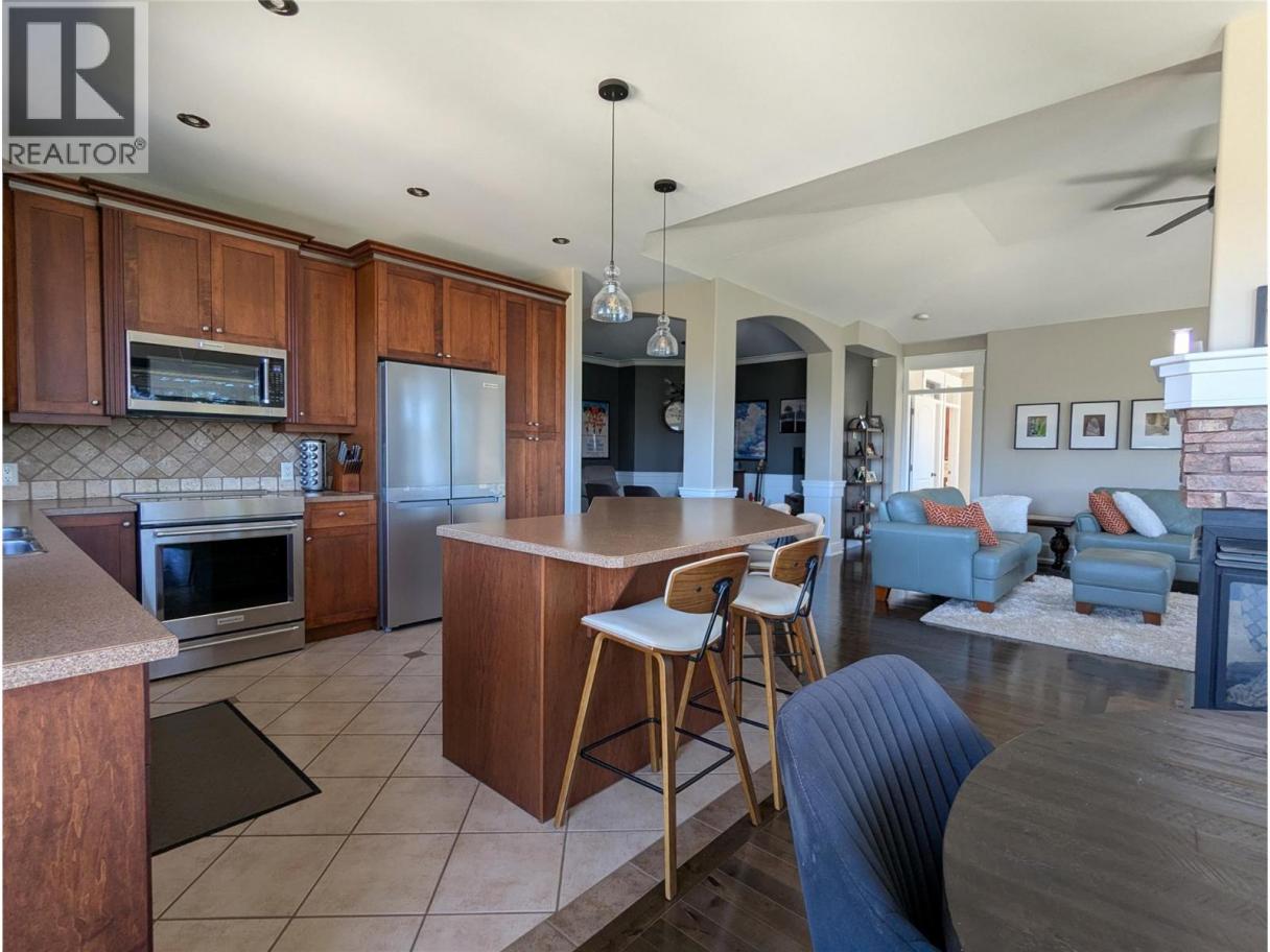 Wait no longer! Rare offering in prestigious Quail Ridge! Custom built 3196 SF, 4 bed & 3 bath walkout rancher with the best home options the in the area! Stunning valley views, lots of parking including a triple car garage, close proximity to golf clubhouse, local shops, airport, UBCO, walking trails & Okanagan Rail Trail. Finishing include: maple cabinetry & hardwood flooring, wainscoting, crown moldings, transom windows, picture windows & updated light fixtures with 100% LED lighting (inside & out). Open-concept main level includes chef’s kitchen (new KitchenAid SS appliances (fridge, induction-top range, dishwasher, microwave), breakfast bar, formal / informal dining areas, cozy living area (gas fireplace, picture windows, wet bar). Large primary bedroom offers deck access, walk-in closet, ensuite (jetted tub, brand new custom tile shower). Downstairs features large rec room with gas fireplace, 2 bedrooms (easy to add another), walk in closet, 4 pc bath & utility & storage rooms with access to a flat backyard. Additional features include a new hot water tank Sept 2025, new Bryant high efficiency dual-fuel furnace & heat pump installed in June 2025 (includes 10 year warranty) & is controlled by a new dual-fuel compatible wi-fi thermostat. The interior has been completely repainted (walls, trim, and ceiling). The property also features a garden shed (with power), multi zone irrigation system, covered patio, partially covered view balcony & gas BBQ outlet. A MUST SEE! (id:6769)