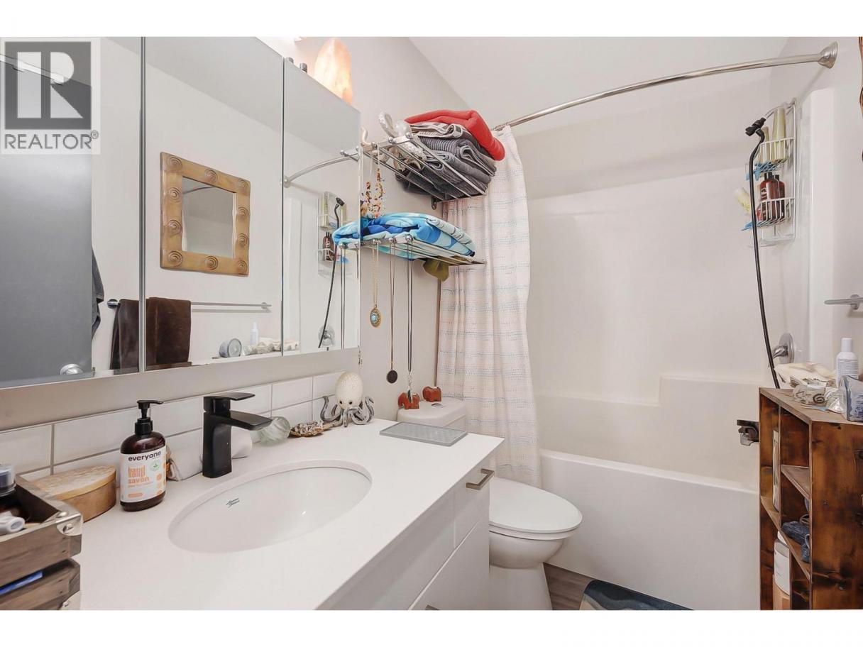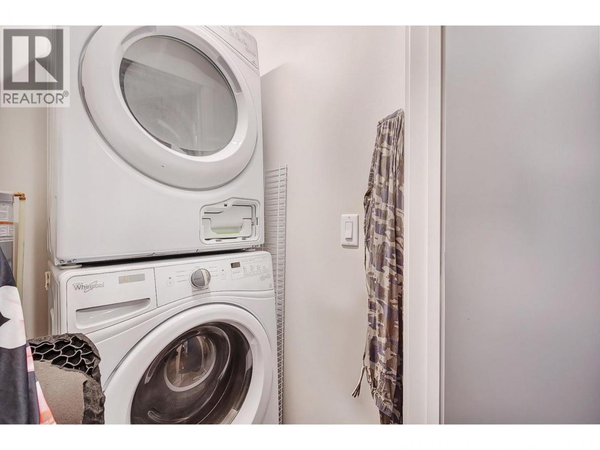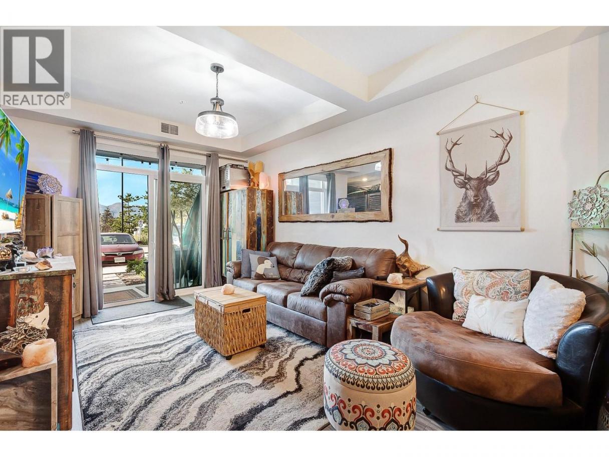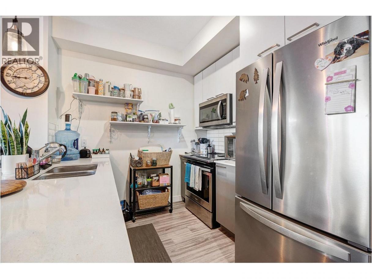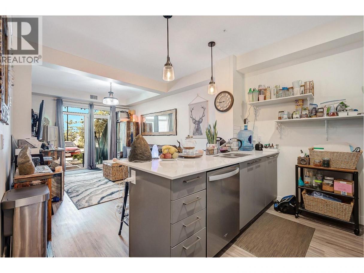 Ground Floor 1-Bedroom at NEO – Lake Views, Low Strata, Pet Friendly! Where lifestyle meets location, this ground floor 1-bedroom suite offers direct exterior access, beautiful lake and mountain views, low strata fees, and a pet-friendly policy with no size restrictions—making it ideal for pet owners, first-time buyers, or investors. Step into a sleek, modern interior featuring a white-on-white kitchen with full-height cabinetry, subway tile backsplash, quartz countertops, stainless steel appliances, and bar seating. The open-concept living area is elevated with a stylish beam and chandelier, while glass patio doors flood the space with natural light and connect to your outdoor space. The spacious bedroom & 4-piece bathroom with vanity storage provide comfort and function. Durable laminate flooring runs throughout. The complex also borders a peaceful creekside walking path, perfect for morning strolls or dog walks. Enjoy incredible shared amenities, including a rooftop patio with BBQ and panoramic views, community gardens, and efficient building systems such as LED common lighting and recirculation lines for nearly instant hot water. Located just an 8-minute walk from Gellatly Bay Aquatic Park, with beaches, dog park, zipline, pier, and waterfront paths—plus shopping, restaurants, and West Kelowna’s famous Wine Trail all nearby. This stylish, low-maintenance home is the perfect blend of lifestyle, location, and value! (id:6769)