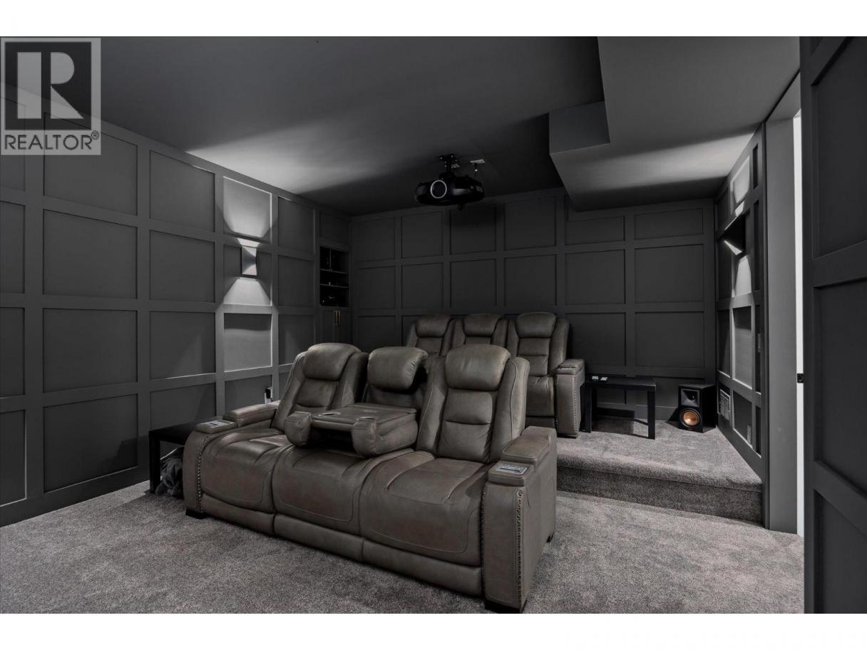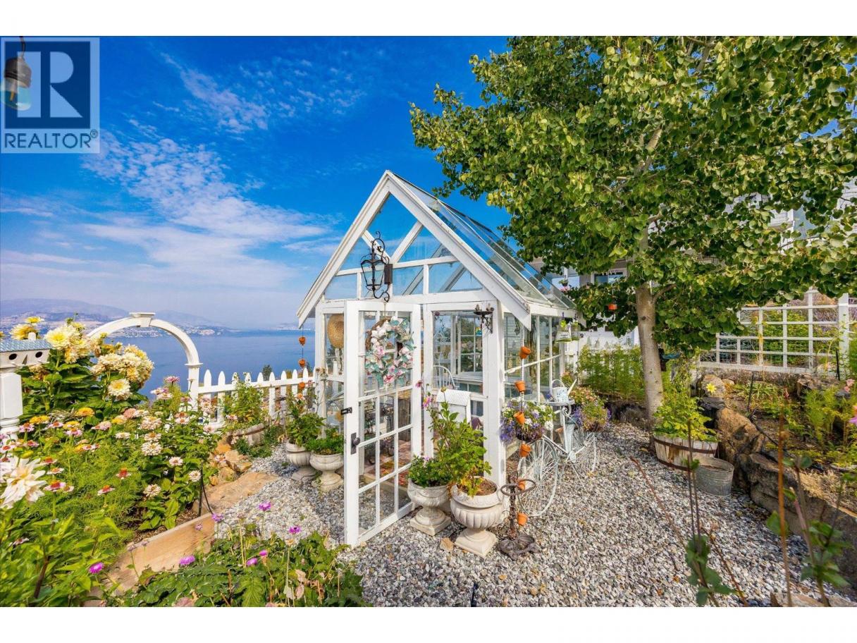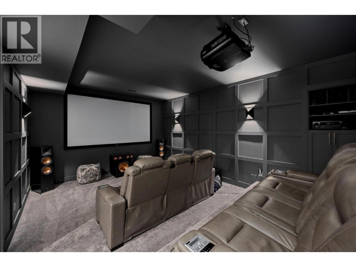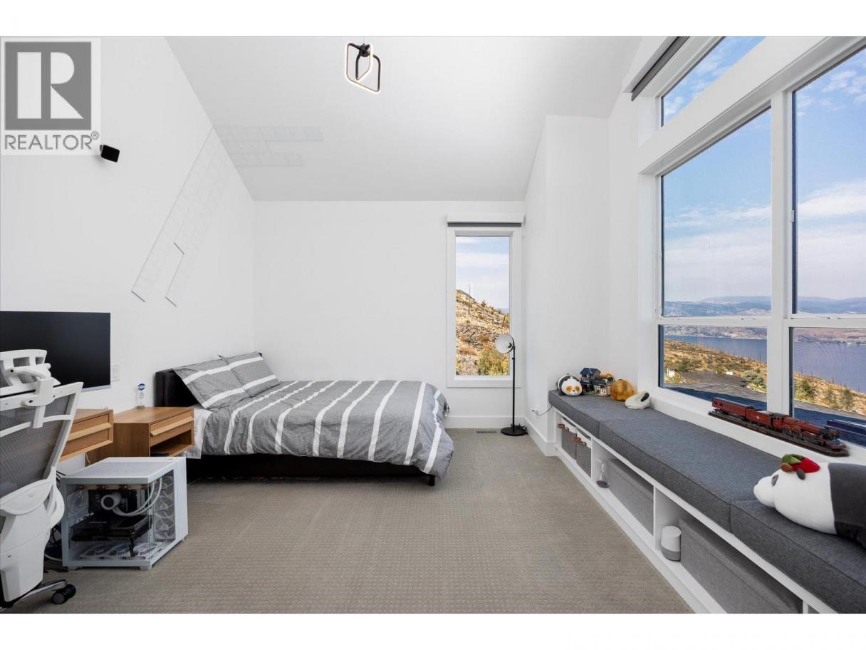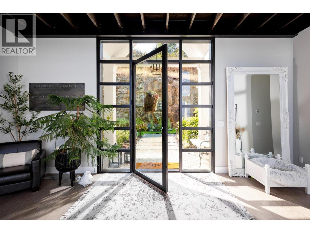 The best view in Kelowna. 2019-built 4 bedroom, 5 bathroom, 5,100+ square foot Modern Hamptons residence perched on a 5.129-acre lot in the Upper Mission area of Kelowna! Upon entering the property, you're greeted with your substantive driveway that carves through the rock, creating a unique estate feel. The grounds include substantial mature landscaping, a custom greenhouse/garden area, a large 30'x60' open-air structure at the top of the property (Wedding venue, workshop conversion, greenhouse, etc), a waterfall & pond feature at your central entry, and several raised planter bed areas; a rare property where even the garden gets a view. Upon entering the home, you are greeted with soaring 20' ceilings in the living room that flow straight ahead to the infinity pool that blends into Okanagan Lake ahead. The main floor offers this stunning living room, a kitchen with a pass-through to the outdoor BBQ area, and a dining room with perfect indoor/outdoor transitions. The master on the main offers the same panoramic views, and a 5-piece private ensuite. The main floor is finished off with a powder room, laundry, and an additional bedroom/office. Upstairs via the floating staircase are two complete master bedrooms with their own en-suites, as well as a private ""perch"" one further level up as a viewpoint. Downstairs, there is a tandem-car garage and a full recreation room that features a bar, room for a pool table, a full bathroom, and a private, fully outfitted theatre room. Outdoor amenities include the covered deck with heaters, BBQ area, hot-tub, tiled infinity pool, and sunken fire pit with seating area. This property uniquely has the modern features of a high-end residence but with 5+ acres, stunning views, full privacy, and extras like the detached structure, and plenty of uncovered parking. (id:6769)