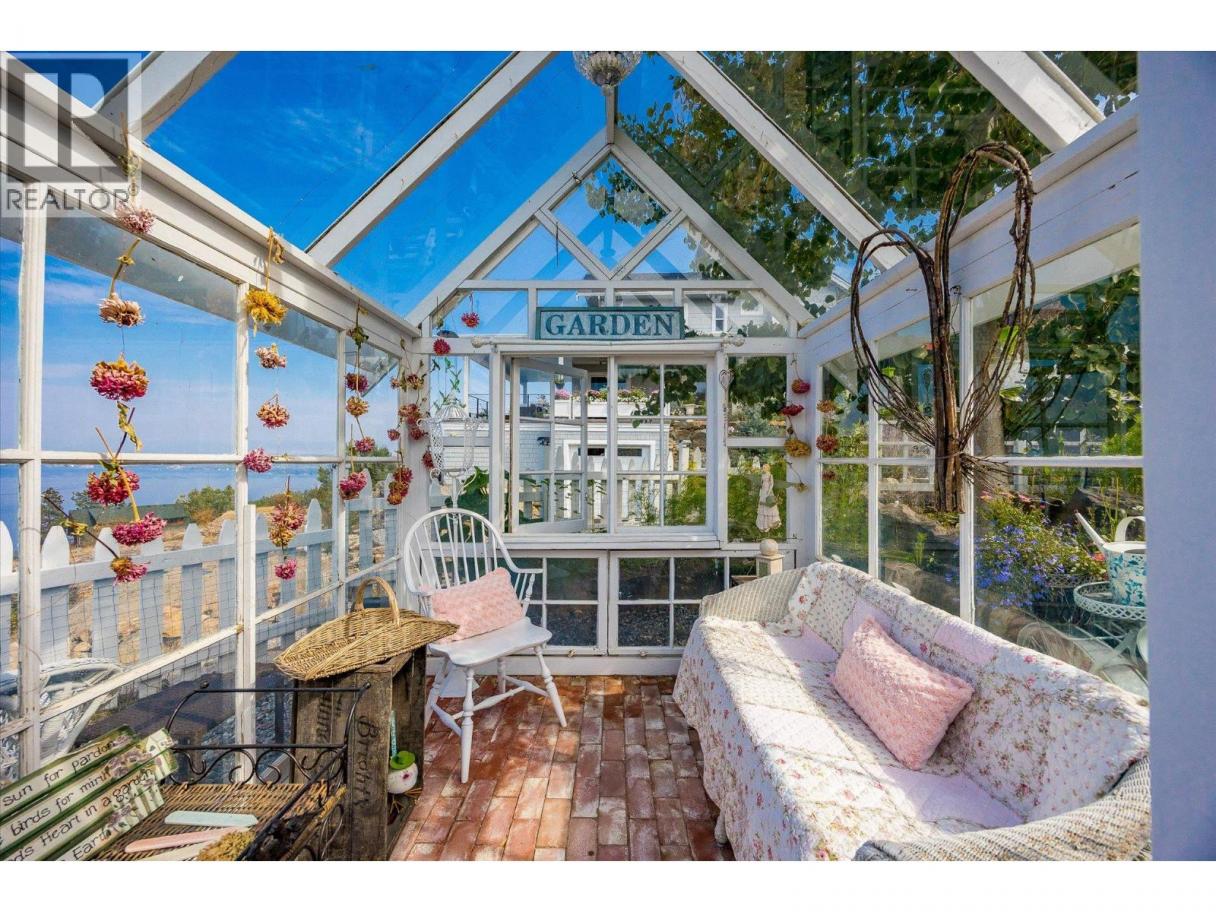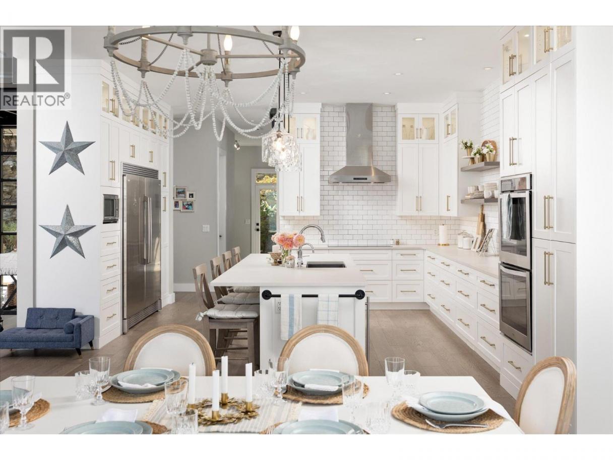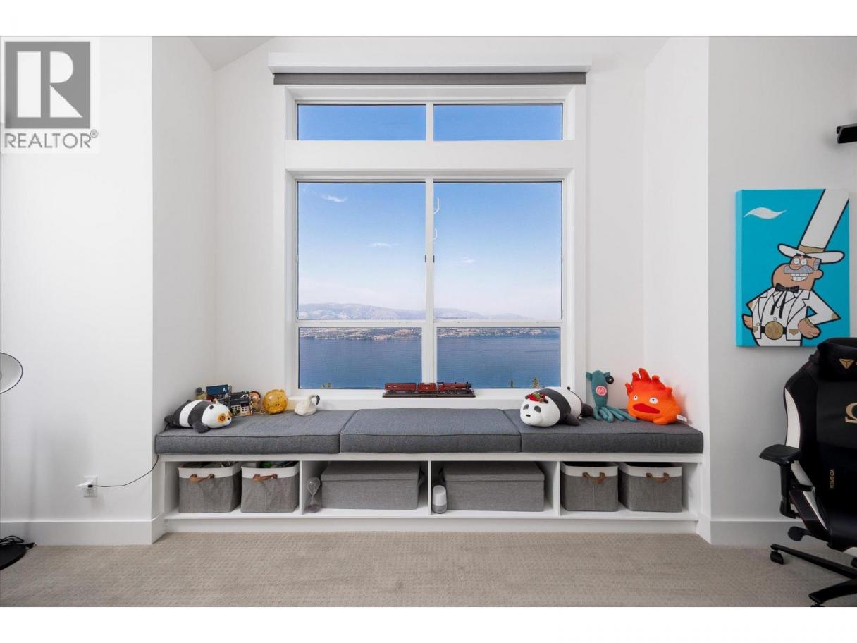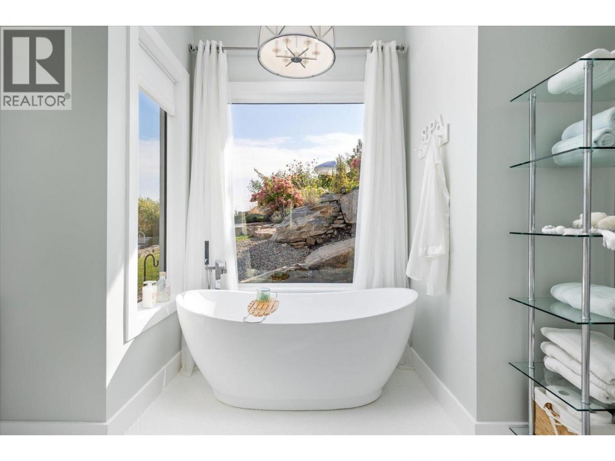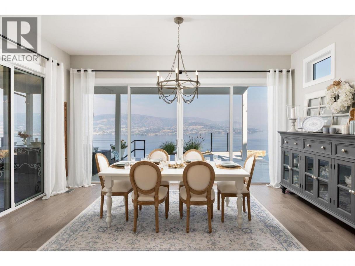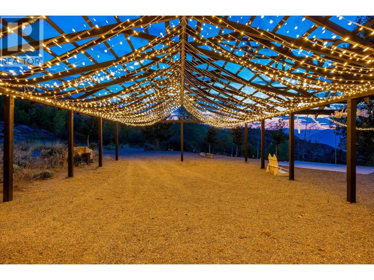 The best view in Kelowna. 2019-built 4 bedroom, 5 bathroom, 5,100+ square foot Modern Hamptons residence perched on a 5.129-acre lot in the Upper Mission area of Kelowna! Upon entering the property, you're greeted with your substantive driveway that carves through the rock, creating a unique estate feel. The grounds include substantial mature landscaping, a custom greenhouse/garden area, a large 30'x60' open-air structure at the top of the property (Wedding venue, workshop conversion, greenhouse, etc), a waterfall & pond feature at your central entry, and several raised planter bed areas; a rare property where even the garden gets a view. Upon entering the home, you are greeted with soaring 20' ceilings in the living room that flow straight ahead to the infinity pool that blends into Okanagan Lake ahead. The main floor offers this stunning living room, a kitchen with a pass-through to the outdoor BBQ area, and a dining room with perfect indoor/outdoor transitions. The master on the main offers the same panoramic views, and a 5-piece private ensuite. The main floor is finished off with a powder room, laundry, and an additional bedroom/office. Upstairs via the floating staircase are two complete master bedrooms with their own en-suites, as well as a private ""perch"" one further level up as a viewpoint. Downstairs, there is a tandem-car garage and a full recreation room that features a bar, room for a pool table, a full bathroom, and a private, fully outfitted theatre room. Outdoor amenities include the covered deck with heaters, BBQ area, hot-tub, tiled infinity pool, and sunken fire pit with seating area. This property uniquely has the modern features of a high-end residence but with 5+ acres, stunning views, full privacy, and extras like the detached structure, and plenty of uncovered parking. (id:6769)