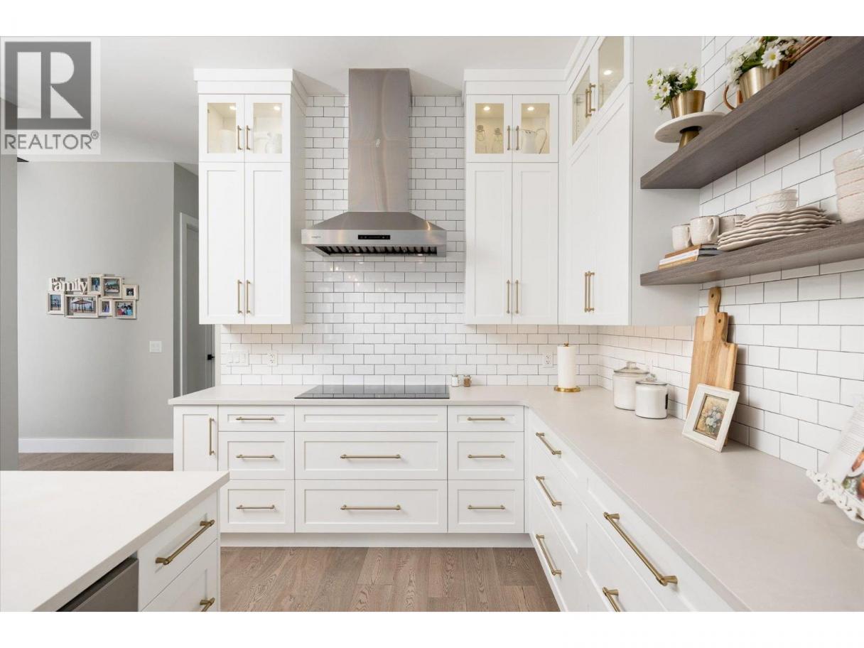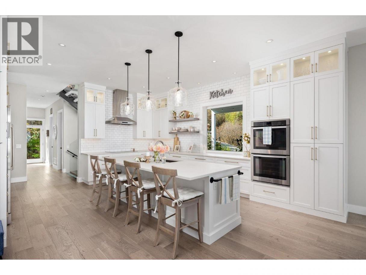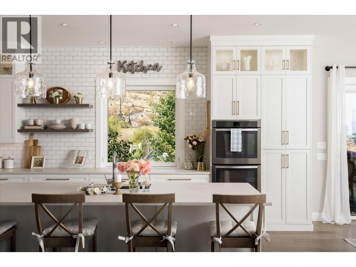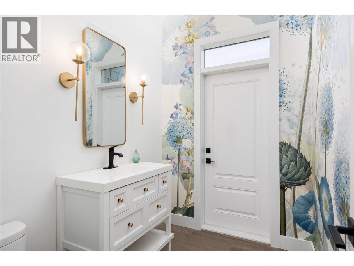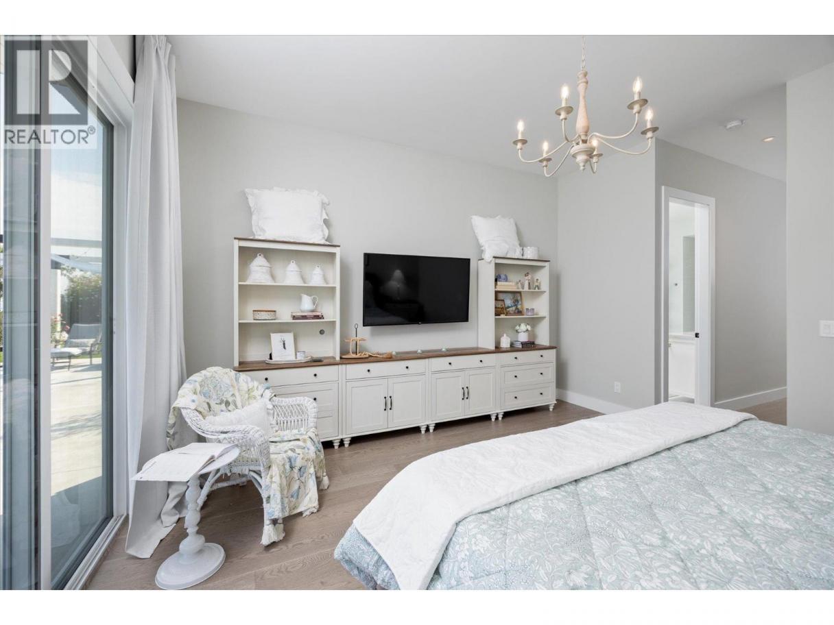 The best view in Kelowna. 2019-built 4 bedroom, 5 bathroom, 5,100+ square foot Modern Hamptons residence perched on a 5.129-acre lot in the Upper Mission area of Kelowna! Upon entering the property, you're greeted with your substantive driveway that carves through the rock, creating a unique estate feel. The grounds include substantial mature landscaping, a custom greenhouse/garden area, a large 30'x60' open-air structure at the top of the property (Wedding venue, workshop conversion, greenhouse, etc), a waterfall & pond feature at your central entry, and several raised planter bed areas; a rare property where even the garden gets a view. Upon entering the home, you are greeted with soaring 20' ceilings in the living room that flow straight ahead to the infinity pool that blends into Okanagan Lake ahead. The main floor offers this stunning living room, a kitchen with a pass-through to the outdoor BBQ area, and a dining room with perfect indoor/outdoor transitions. The master on the main offers the same panoramic views, and a 5-piece private ensuite. The main floor is finished off with a powder room, laundry, and an additional bedroom/office. Upstairs via the floating staircase are two complete master bedrooms with their own en-suites, as well as a private ""perch"" one further level up as a viewpoint. Downstairs, there is a tandem-car garage and a full recreation room that features a bar, room for a pool table, a full bathroom, and a private, fully outfitted theatre room. Outdoor amenities include the covered deck with heaters, BBQ area, hot-tub, tiled infinity pool, and sunken fire pit with seating area. This property uniquely has the modern features of a high-end residence but with 5+ acres, stunning views, full privacy, and extras like the detached structure, and plenty of uncovered parking. (id:6769)