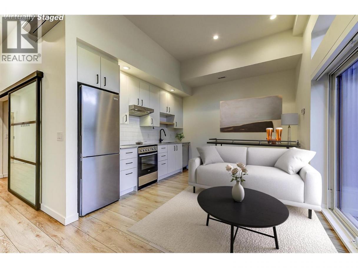 Welcome Home to the North End of Kelowna. This stylish/modern one-bedroom, one-bathroom condo perfectly situated in one the most highly sought-after neighborhoods, where everything you could desire is all within walking distance. Offering both comfort and convenience, this residence is ideal for first-time buyers, investors, or those looking to enjoy the vibrant downtown lifestyle. Step inside to a bright, open living space that flows seamlessly onto your spacious, private walkout patio, perfect for morning coffee or evening relaxation and ideal if you have a dog to walk and want the convenience of walking straight out your back door. With stainless steel appliance and stone countertops, the thoughtfully designed floor plan maximizes every inch, creating a cozy yet functional vibe. This community offers more than just a place to live—residents enjoy access to a co-work office space, lounge area, the 'Modo' car share program, bike storage, and the convenience of one secure underground parking stall. All this, in a prime location within walking distance to restaurants, local brewery's, shopping, waterfront parks, beaches, gyms and everything downtown Kelowna has to offer. Don’t miss your chance to live in one of Kelowna’s most desirable neighborhoods! View the Vitual Tour and book your showing to explore this opportunity! (id:6769)