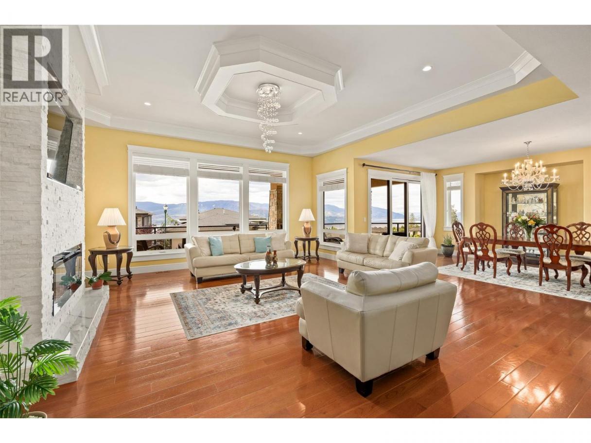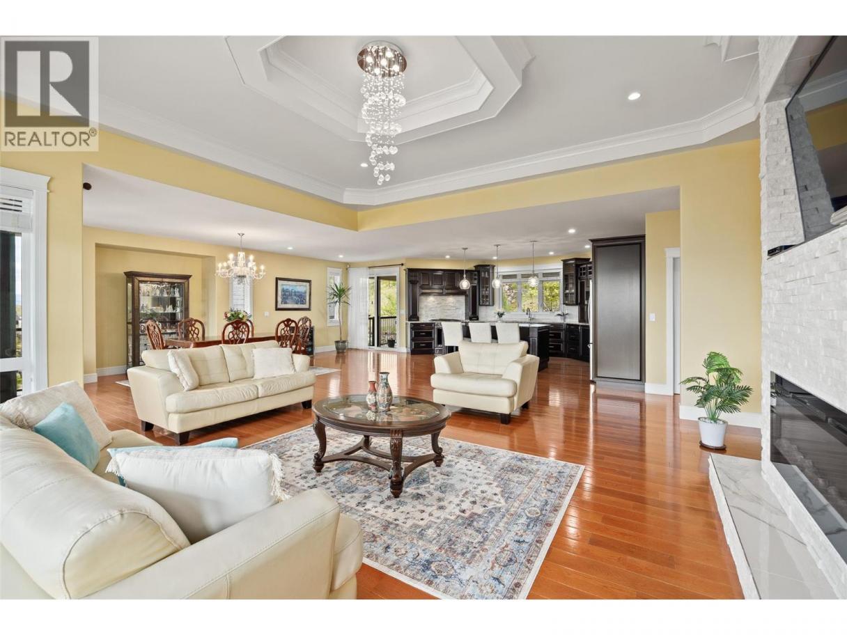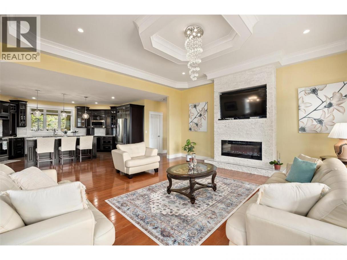 Set in the heart of Kettle Valley, this exceptional 4 bed + den / 3 bath home boasts 3,800 sqft of beautifully designed living space with stunning lake and valley views. The open floor plan is highlighted by rich cherry wood floors, granite countertops throughout, and a spacious kitchen and living area perfect for entertaining. Enjoy Okanagan sunsets from the front deck or the private balcony off the primary bedroom. The triple-car garage includes a tandem stall for added flexibility, and the versatile den is ideal as a home gym or theatre. Outside, the landscaped and fully fenced backyard features grapevines, strawberries, and tomatoes—with plumbing in place for a future pool. Situated on a quiet, no-thru road, the property offers a peaceful and private setting on a .21-acre lot in the highly desirable neighbourhood near parks, schools, restaurants and more. Want to learn more? Contact our team today to book your private viewing! (id:6769)