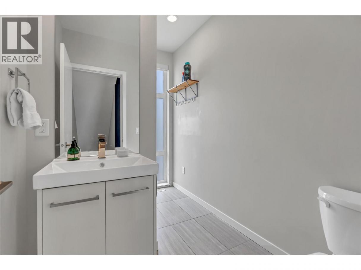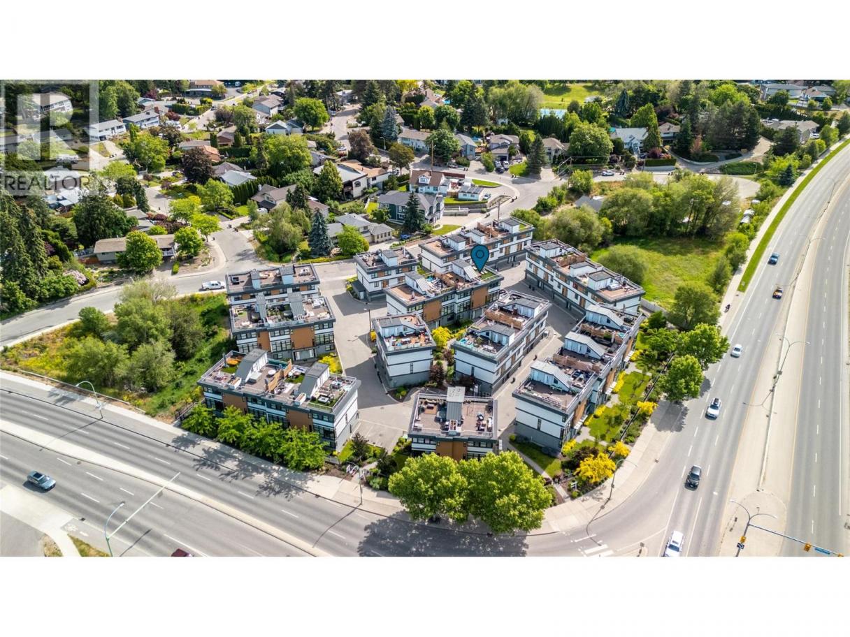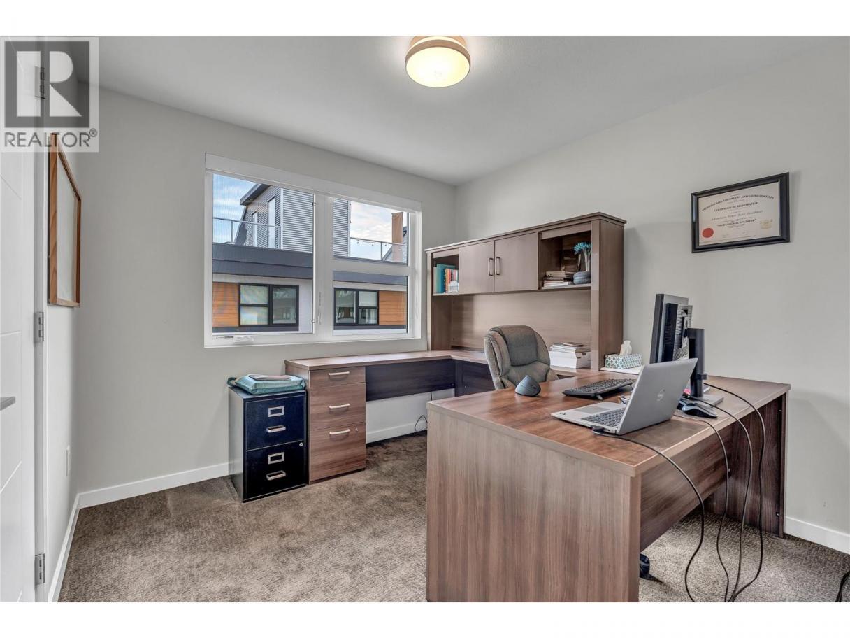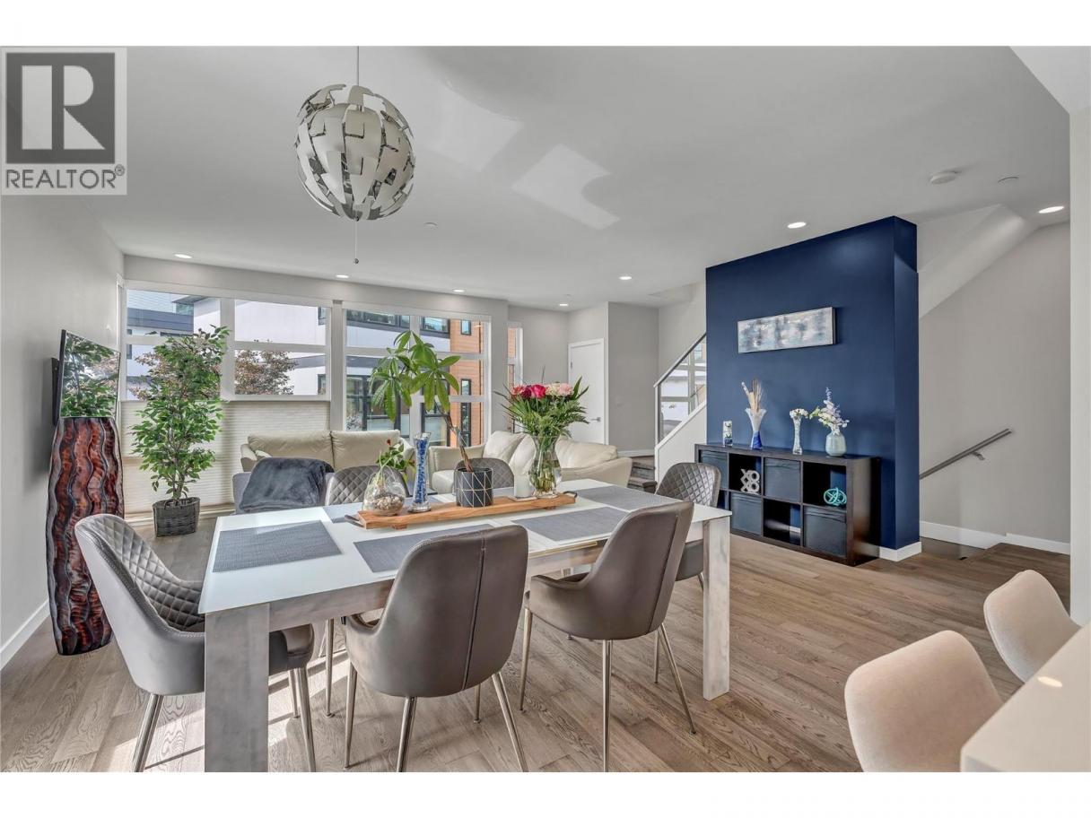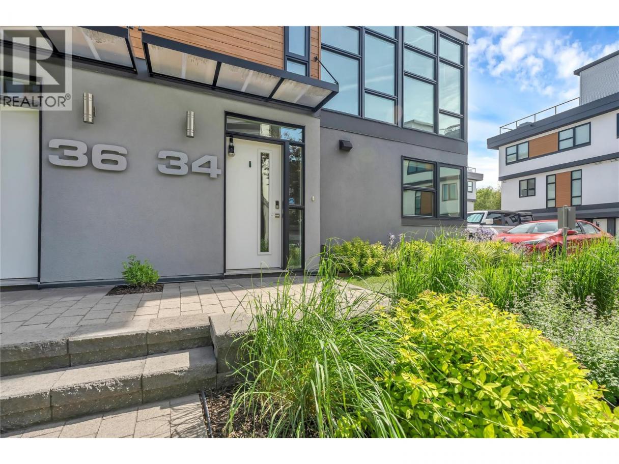 Welcome to Skyview Terraces, where form and function blend perfectly with upscale design and finishings, away from the hustle and bustle of downtown, but conveniently located within a short bike ride to all that downtown Kelowna has to offer. This end unit is located within a quiet location in the complex, near to visitor parking, and has an array of extra windows for added natural light. From the front door you are welcomed to a warm and inviting foyer, with access to the ground level bedroom/office and double car garage. Up from here you will find the inside entertainment level, with designer two tone kitchen including gas stove, cabinet space galore, light and bright living space, and the guest bath/laundry room, complete with newer Samsung washer and dryer. On the next floor are three well sized bedrooms, including the primary with 4 piece ensuite including heated floors and heated towel rack. The upper most level is the real focal point of this entire property, with the roof top deck, including synthetic lawn, a hot tub, and natural gas bib for your bbq; this is the space to soak in the sun and entertain your friends and family on a golden Kelowna summer night. The strata allows 1 dog or 1 cat and a minimum 3 month rental. Heating and cooling is through Geothermal, and there is newly installed hot water on demand unit. (id:6769)