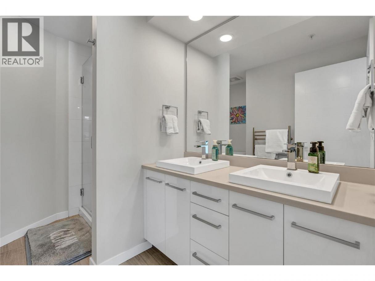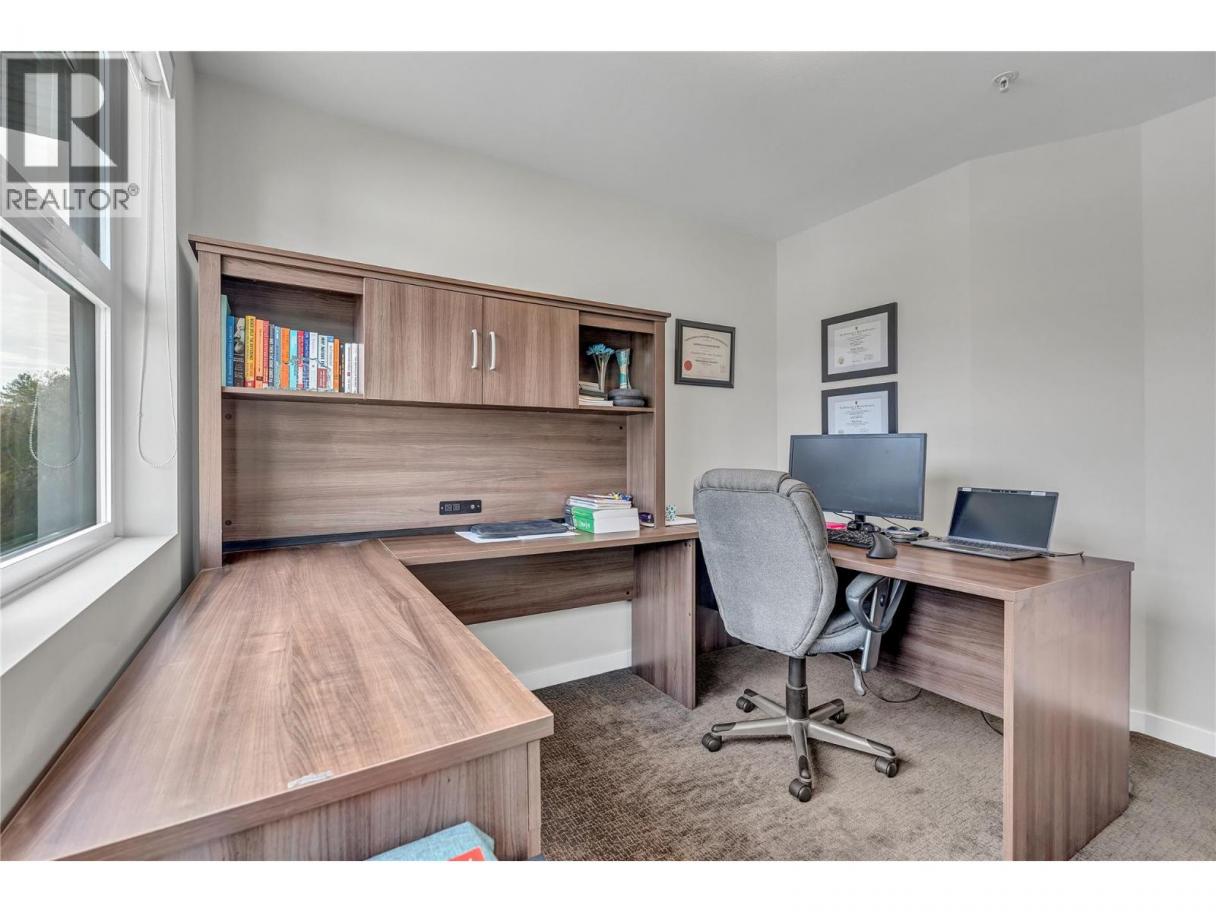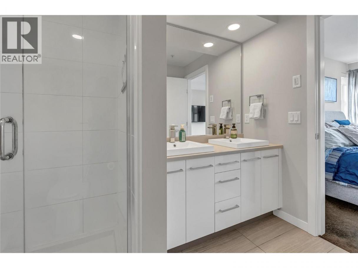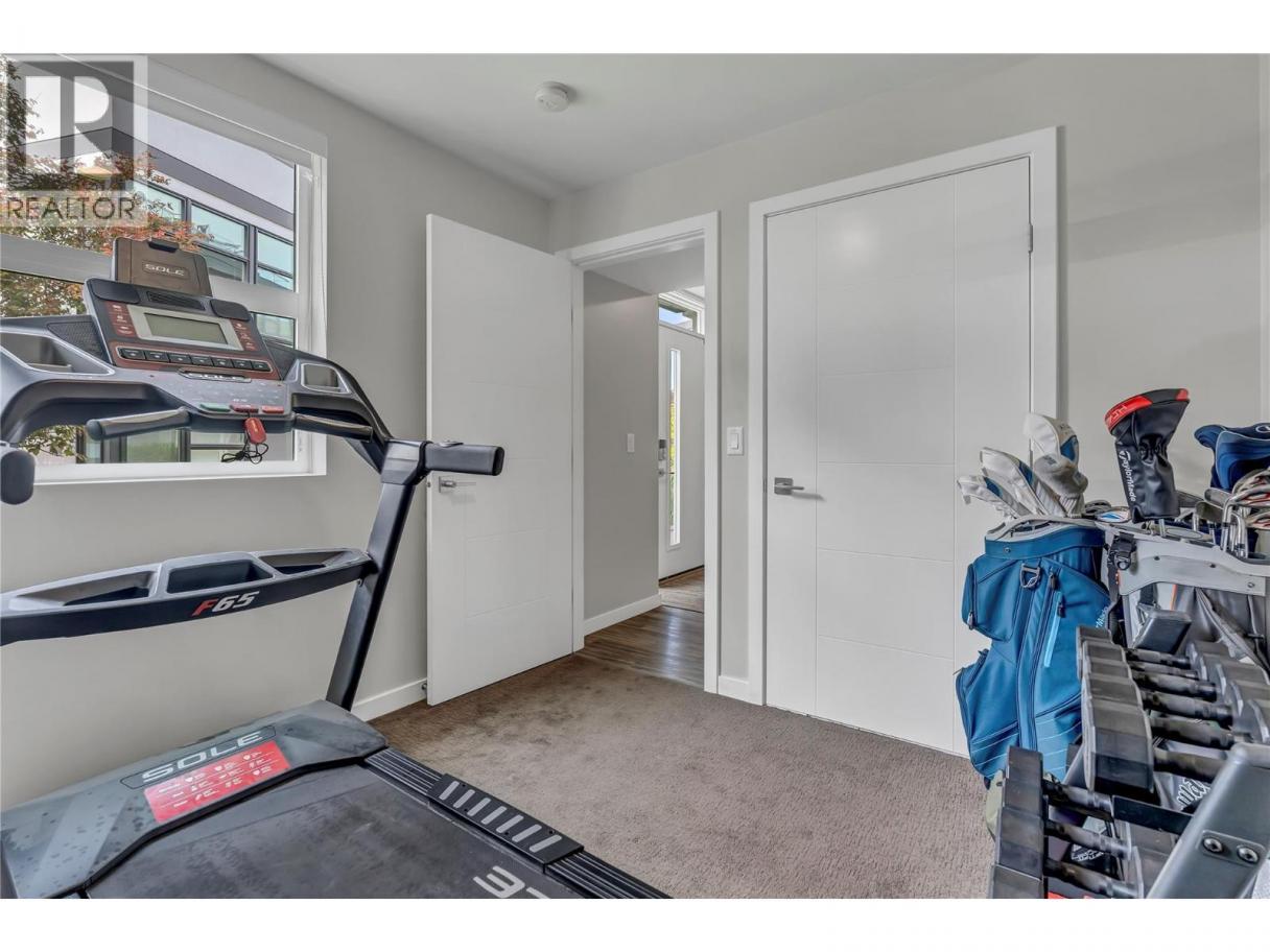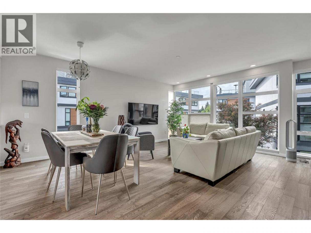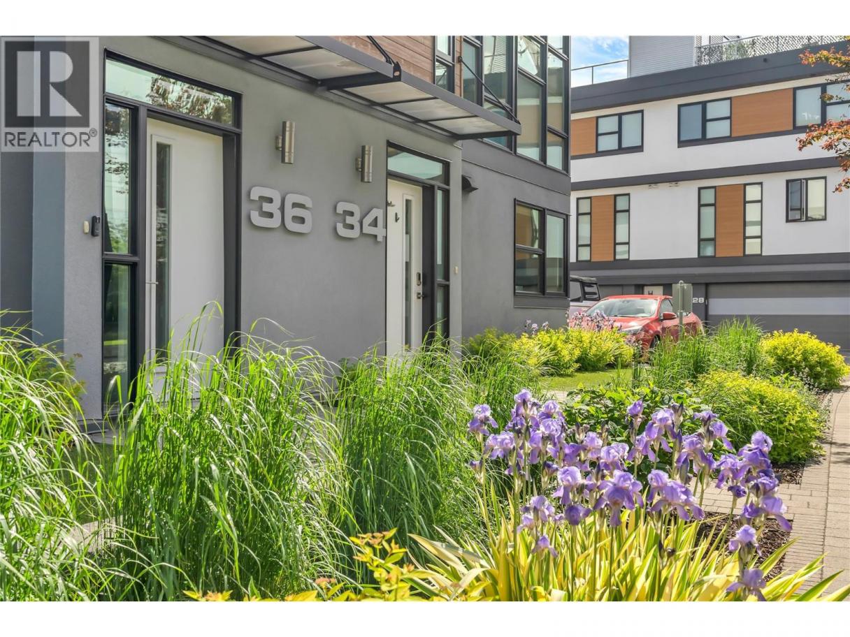 Welcome to Skyview Terraces, where form and function blend perfectly with upscale design and finishings, away from the hustle and bustle of downtown, but conveniently located within a short bike ride to all that downtown Kelowna has to offer. This end unit is located within a quiet location in the complex, near to visitor parking, and has an array of extra windows for added natural light. From the front door you are welcomed to a warm and inviting foyer, with access to the ground level bedroom/office and double car garage. Up from here you will find the inside entertainment level, with designer two tone kitchen including gas stove, cabinet space galore, light and bright living space, and the guest bath/laundry room, complete with newer Samsung washer and dryer. On the next floor are three well sized bedrooms, including the primary with 4 piece ensuite including heated floors and heated towel rack. The upper most level is the real focal point of this entire property, with the roof top deck, including synthetic lawn, a hot tub, and natural gas bib for your bbq; this is the space to soak in the sun and entertain your friends and family on a golden Kelowna summer night. The strata allows 1 dog or 1 cat and a minimum 3 month rental. Heating and cooling is through Geothermal, and there is newly installed hot water on demand unit. (id:6769)