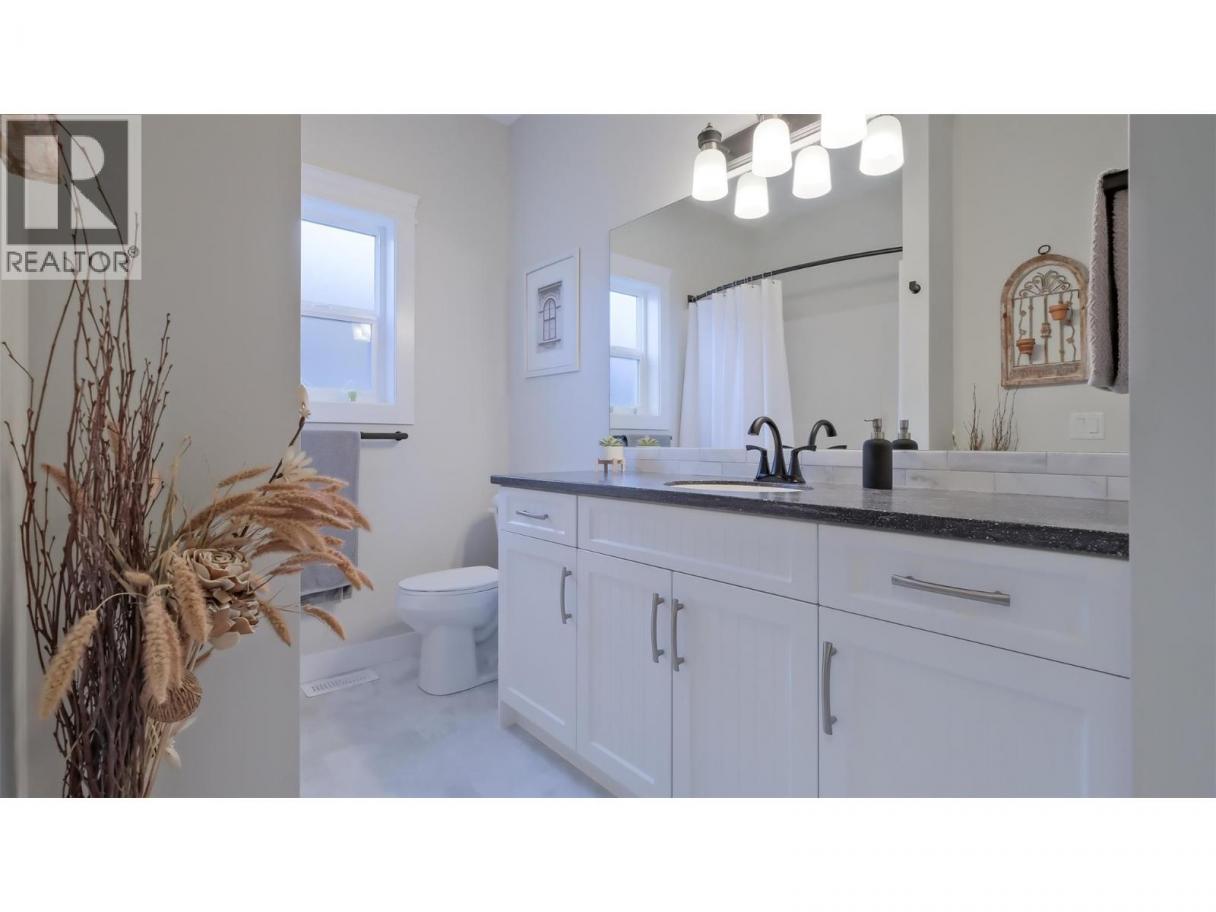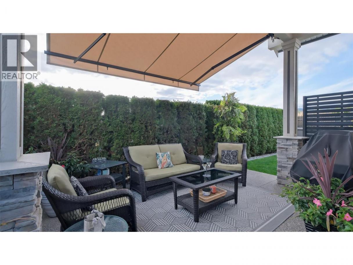 Stunning no-step rancher in Sage Creek, featuring the spacious Heron II floor plan with 3 bedrooms and 2 bathrooms and a freshly painted exterior. This impeccably maintained home boasts an open-concept main level with a cozy fireplace set against a solid oak slat feature wall, surrounded by custom built-ins. Upgrades include modern kitchen and laundry appliances, Corian countertops throughout, extended roof-lines over front and back patios, a BBQ gas line, an extended kitchen bar, and laundry room enhancements like a folding station and sink. Beautiful details like wainscoting and upgraded fixtures complete the look, while new flooring in the bathrooms and laundry add a fresh touch. Step outside to your private fenced backyard with a motorized awning with wind sensor for shade when you want it. The property also includes a double car garage with an easy to maintain epoxy floor and a generously sized crawl space for added storage. Sage Creek’s clubhouse amenities are top-notch, offering a games room, library, gym, pool table, and shuffleboard. The active social committee organizes fantastic events year-round. Perfect for 45+ residents, with no property transfer tax or vacancy tax. Sage Creek’s ideal location places you across from Two Eagles Golf Course and near world-class wineries, beaches, hiking trails, shopping, and fine dining. Don’t miss the chance to make this remarkable property your new home! (id:6769)