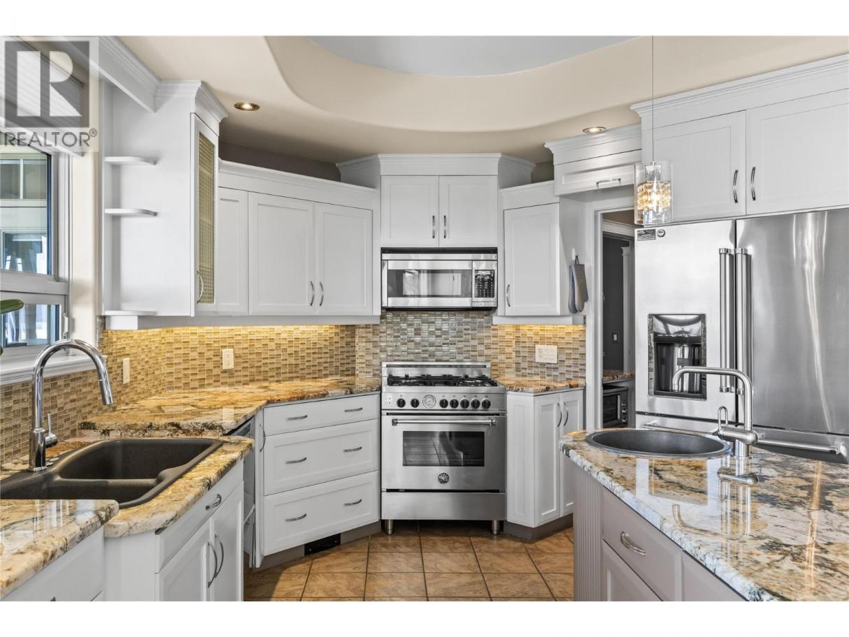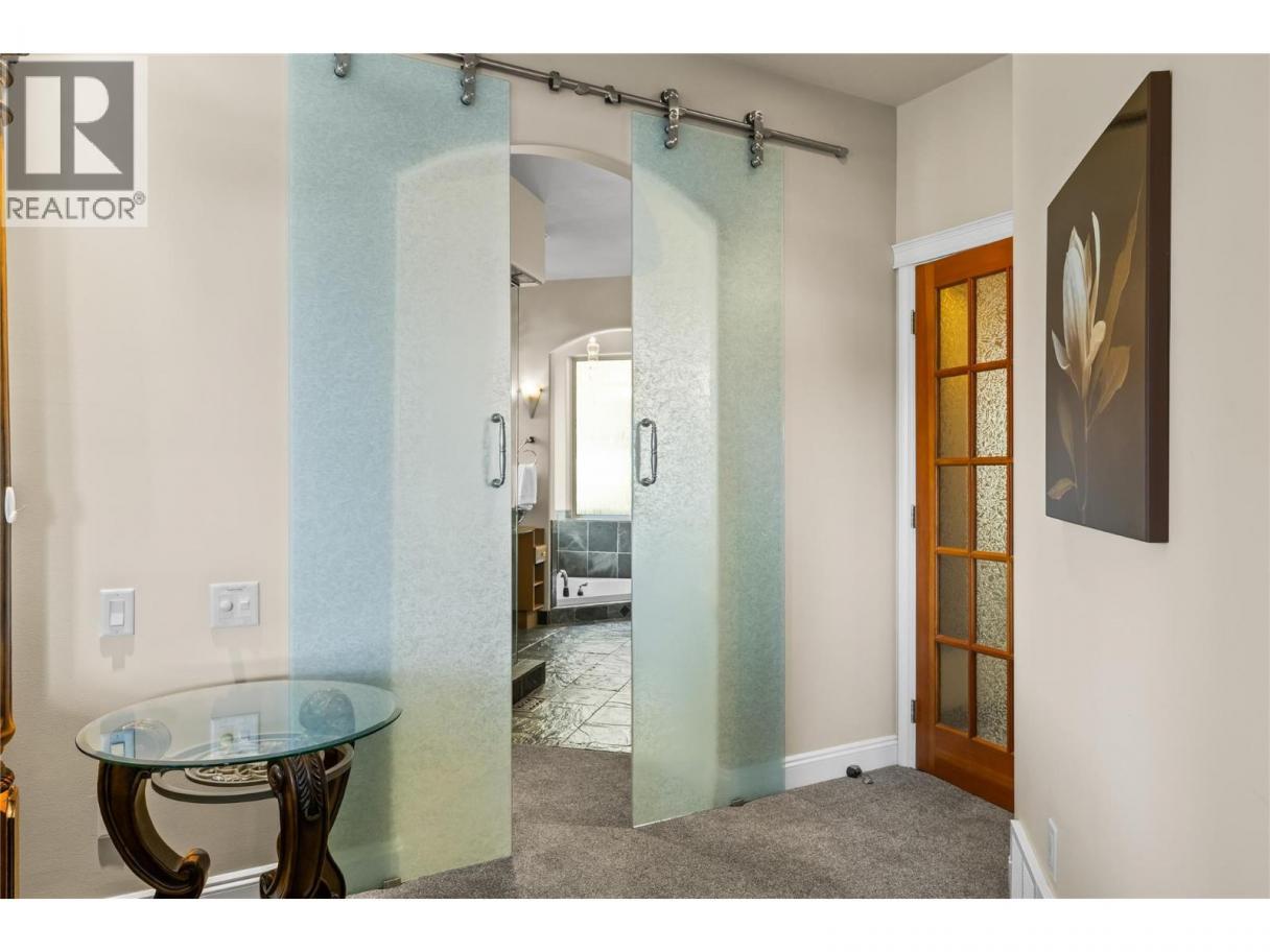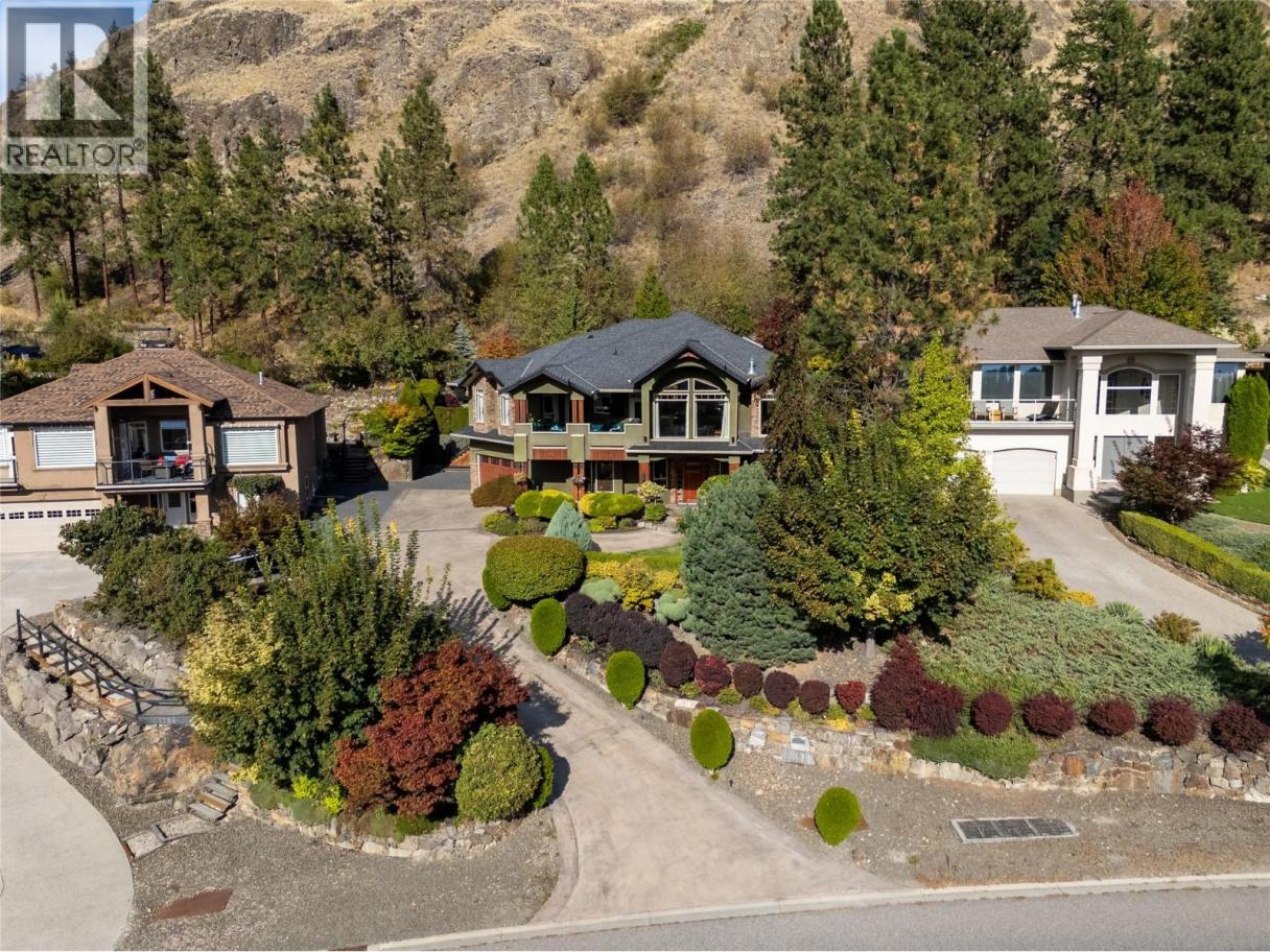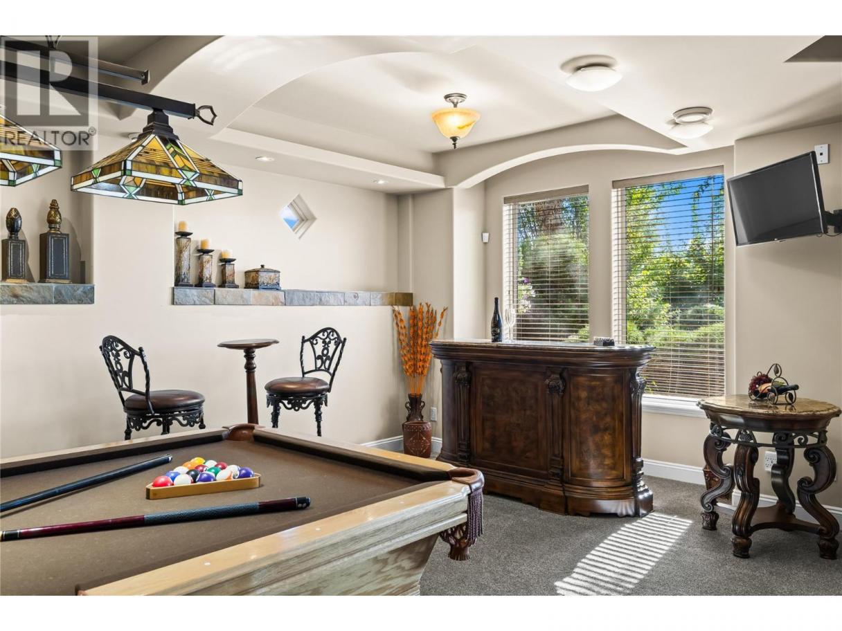 This exceptional lake view West Kelowna estate has a welcoming entrance through a grand wood front door. The stunning interior features a custom art stone wall with a built-in fireplace and archway leading to the media theatre room—perfect for movie nights. The spacious rec room with a bar, pool table, and seating is ideal for entertaining. Adjacent to the foyer, there is a large bedroom/office that offers an ideal work from home set up with its own separate entrance. The lower level includes 2 more bedrooms, full bath, and laundry room. Up the lit staircase is an open-concept main level filled with natural light. The chef’s kitchen boasts a large island with wine storage, 2 sinks, a KitchenAid fridge, gas range, and a walk-in pantry. An expansive breakfast nook overlooks the stunning lake and mountain views and a bar area that boasts mahogany cabinets, wine fridge, and a seating area. A bright, spacious sitting room with vaulted wood panelled ceilings offer views of the backyard paradise through large windows. The primary suite features a generous walk-thru closet and an ultra-luxurious ensuite—tiled shower, sunken soaker tub, and an elegant makeup area. Two more bedrooms, and 2 additional bathrooms complete this level. Out back, the landscaped yard has a stone patio, hot tub, pond with waterfall, multiple seating areas, fire table, built-in BBQ with bar fridge, and outdoor bar with sink and fridge—perfect for entertaining with panoramic lake and mountain views. (id:6769)