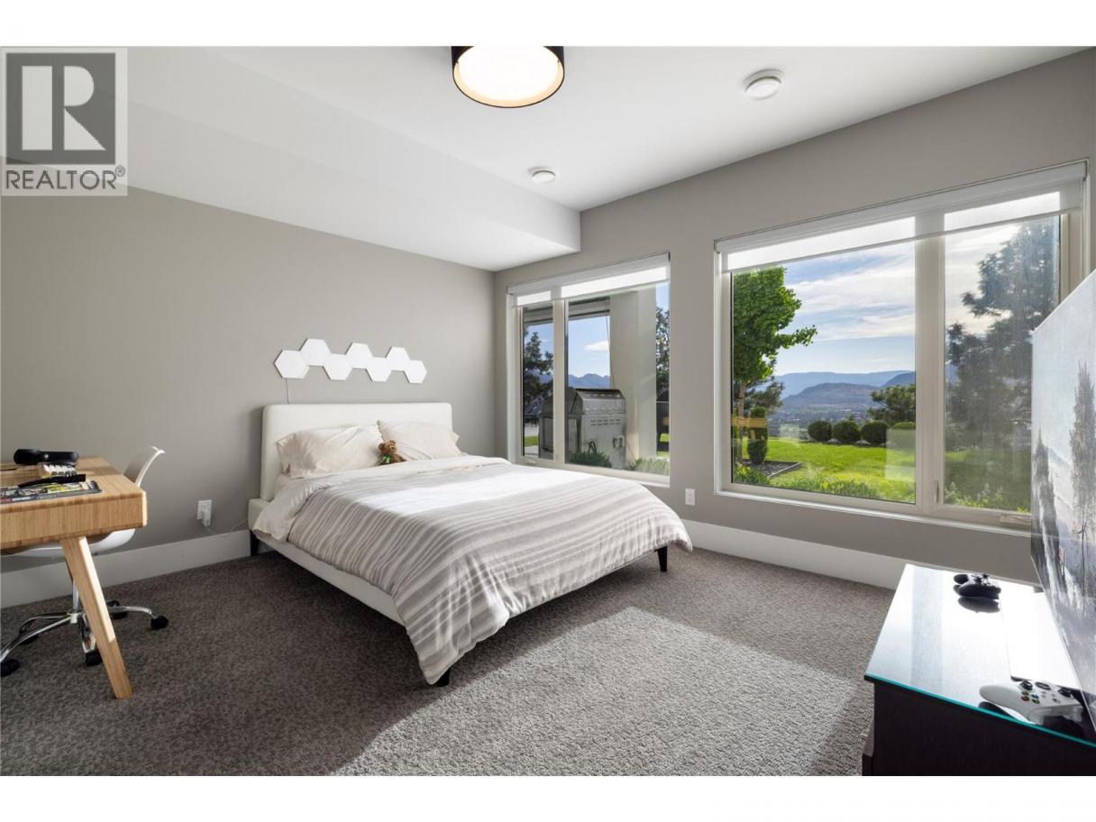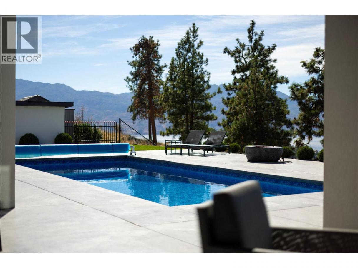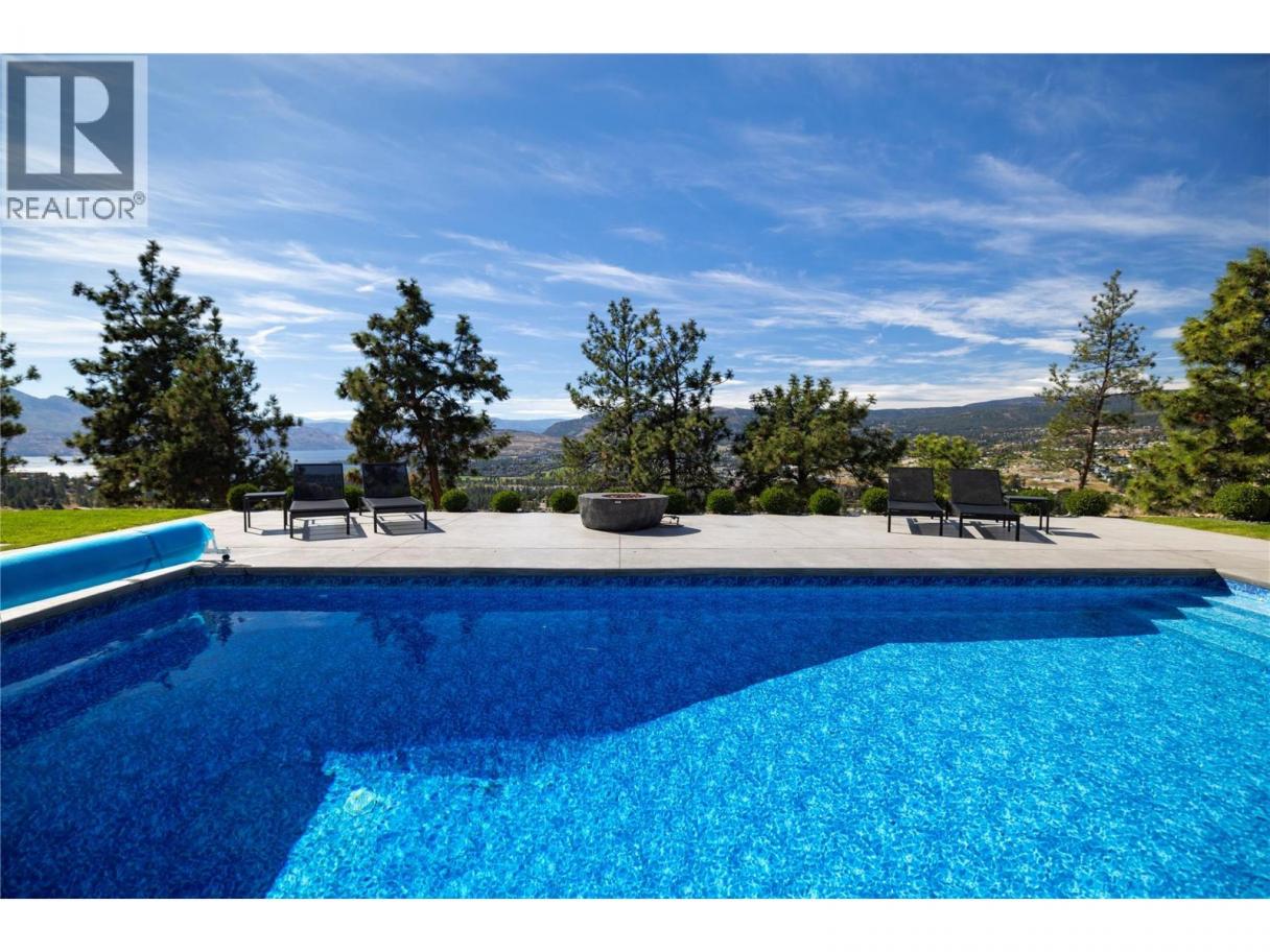 Welcome to your new home, a custom-built contemporary walk-out rancher with over 5,200 sq. ft. of luxurious living space in the prestigious Lakeview Heights community of West Kelowna. Built by the renowned Lenarcic Brothers, this home offers sweeping mountain, lake, city, and sunset views, shared with the iconic Mission Hill Winery. Perched on an unobstructed bench and backing onto a tranquil natural park, the property is flooded with natural light from expansive windows that frame breathtaking vistas in every room, even the oversized, temperature-controlled garage. The chef-inspired kitchen is a true centerpiece, featuring custom cabinetry, quartz countertops, and a spacious butler’s pantry, perfect for creating culinary masterpieces to share with family and friends. The primary suite is your private retreat, complete with a gas fireplace, heated floors, a spa-like 5-piece ensuite, and a generous walk-in closet, perfect for the avid shoe collector. Three additional bedrooms, a second laundry room, and ample storage ensure the home is as functional as it is beautiful. Designed for entertaining, the walk-out basement includes a rec room, wine cellar, bar, games area, and a spa-inspired poolside change room with a steam shower and gym. Outside, your private backyard oasis awaits with a sparkling pool, covered seating, and panoramic views of Okanagan Lake and West Kelowna. This home is the perfect blend of luxury, comfort, and natural beauty, your dream lifestyle is here! (id:6769)