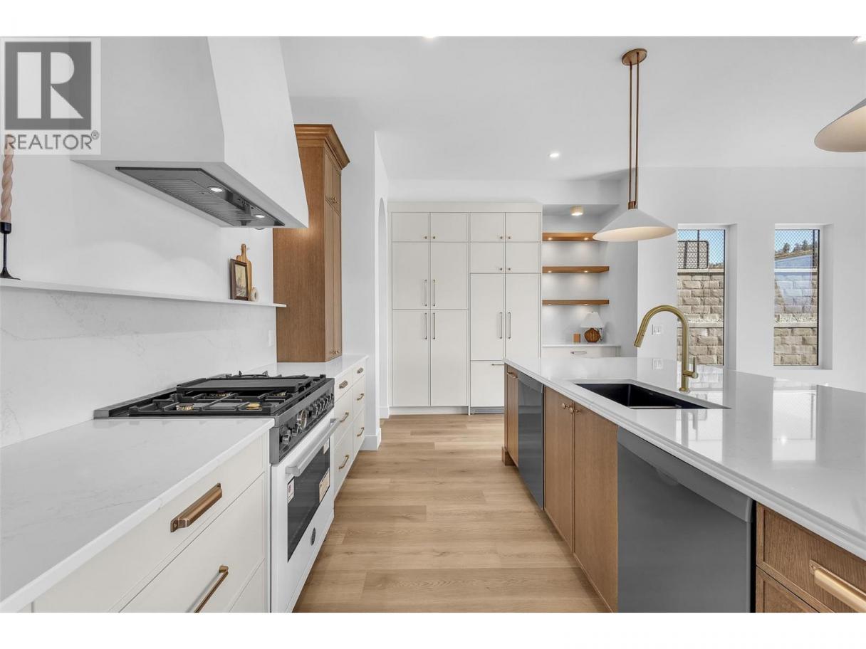 Don’t miss the opportunity to own this showpiece in Hidden Hills — a home where every detail is crafted for luxurious everyday living. Step into this stunning 5 bedroom, 4 bathroom masterpiece, complete with a fully legal 1 bedroom suite. Designed with modern elegance and functionality, this home spares no detail. At the heart of the home is a true chef’s kitchen, featuring an oversized island with a reeded-edge quartz countertop, top-of-the-line Bertazzoni range, continuous-edge waterfall backsplash, soft-close cabinetry, two dishwashers and a separate butler’s pantry complete with a mini-fridge and microwave. White oak floors flow into the family room with soaring 20 foot ceilings, a trapeze light fixture, and limestone fireplace all overlooking breathtaking views of Wilden. An office, mudroom, and a main floor bathroom complete the main floor. Upstairs, 3 bedrooms, including a primary suite designed to be your personal oasis. Including freestanding tub, oversized custom shower, double sinks, abundant storage, separate water closet and a spacious walk-in closet. The home offers two full laundry rooms, one upstairs and one on the main level. The lower floor extends the living space with a bonus family room, 1 bedroom, full bathroom, and a completely self-contained legal suite. Fully landscaped with U/G irrigation. This property is complete with plumbing and electrical for a pool and garage is oversized for 2 cars with EV plug. Plus GST (id:6769)