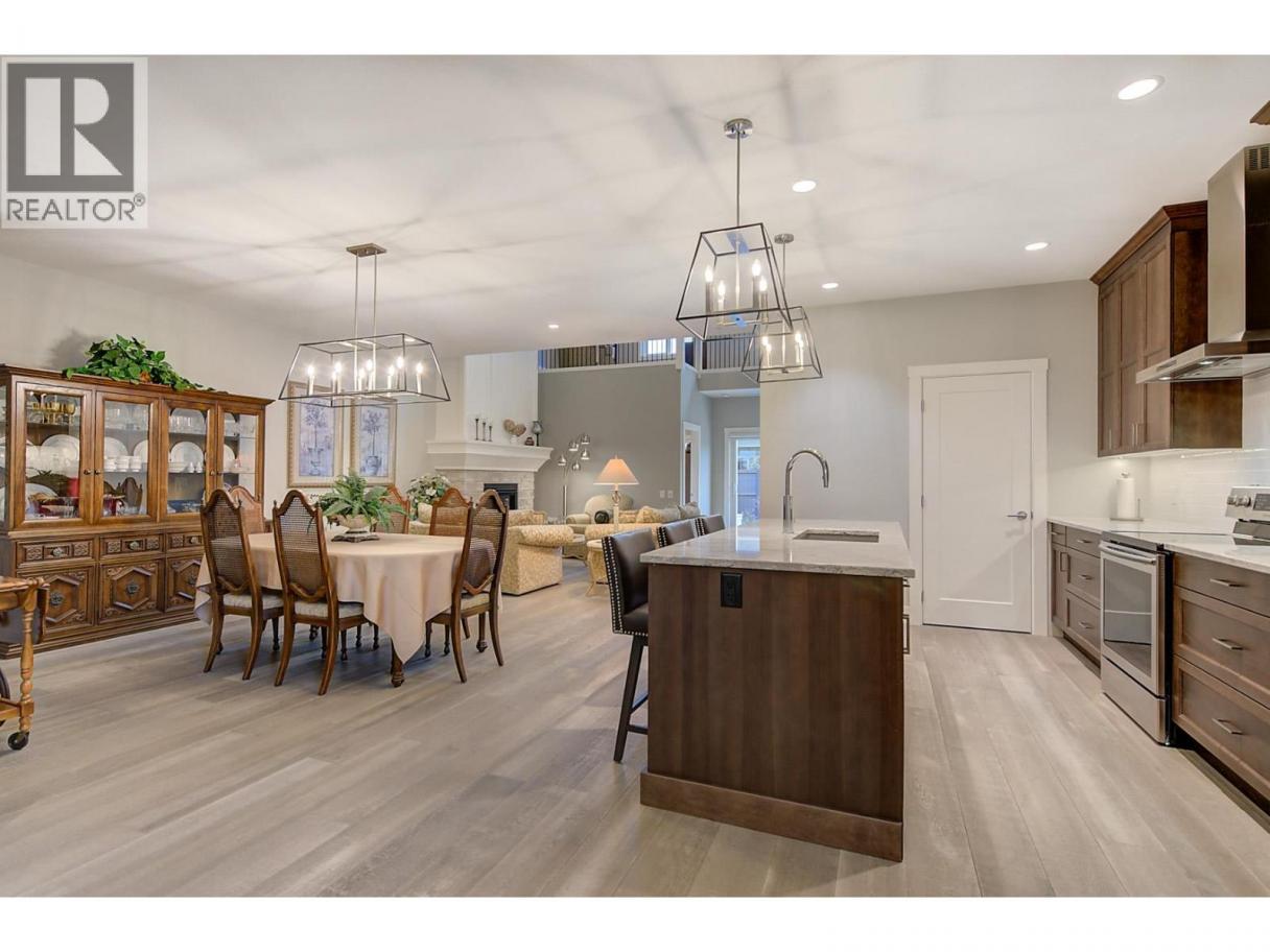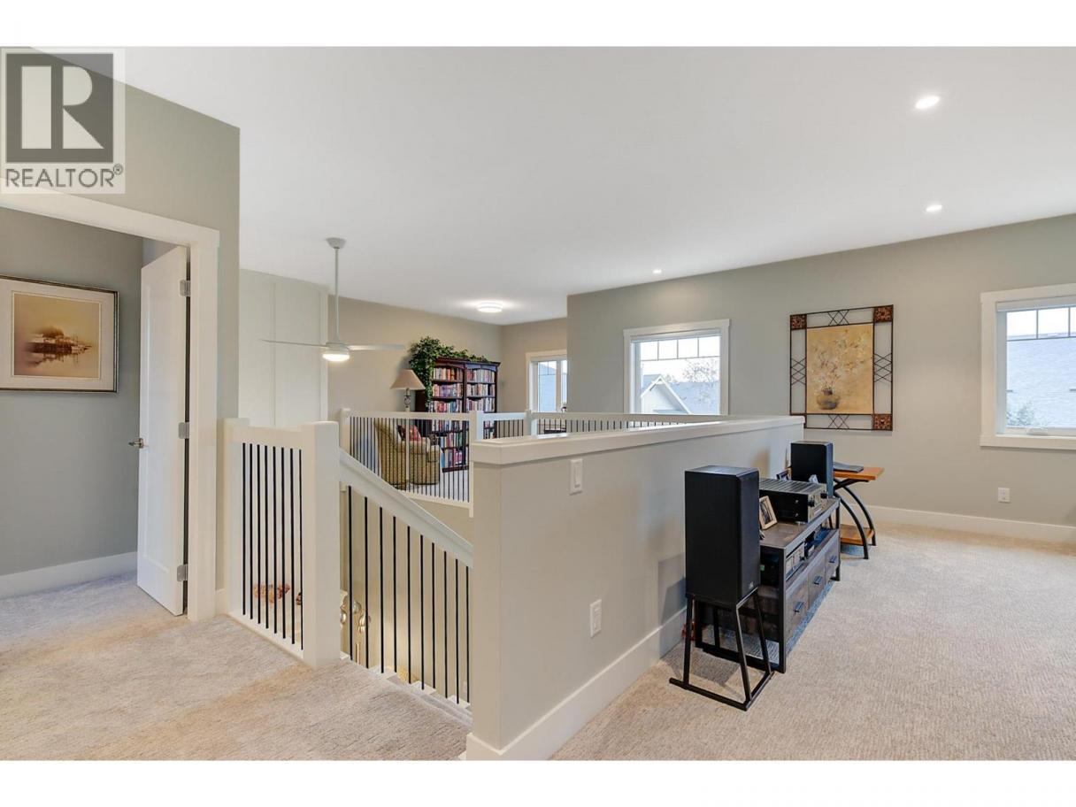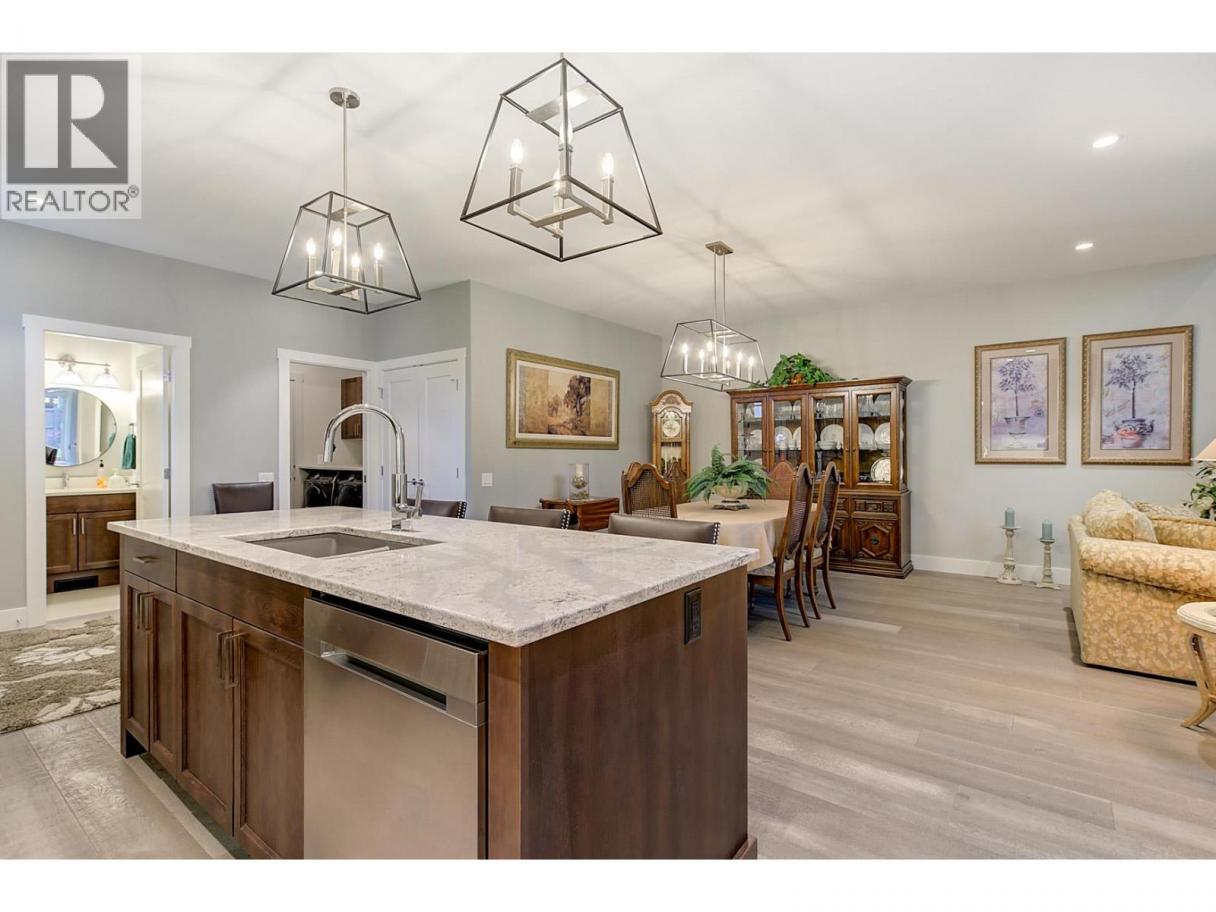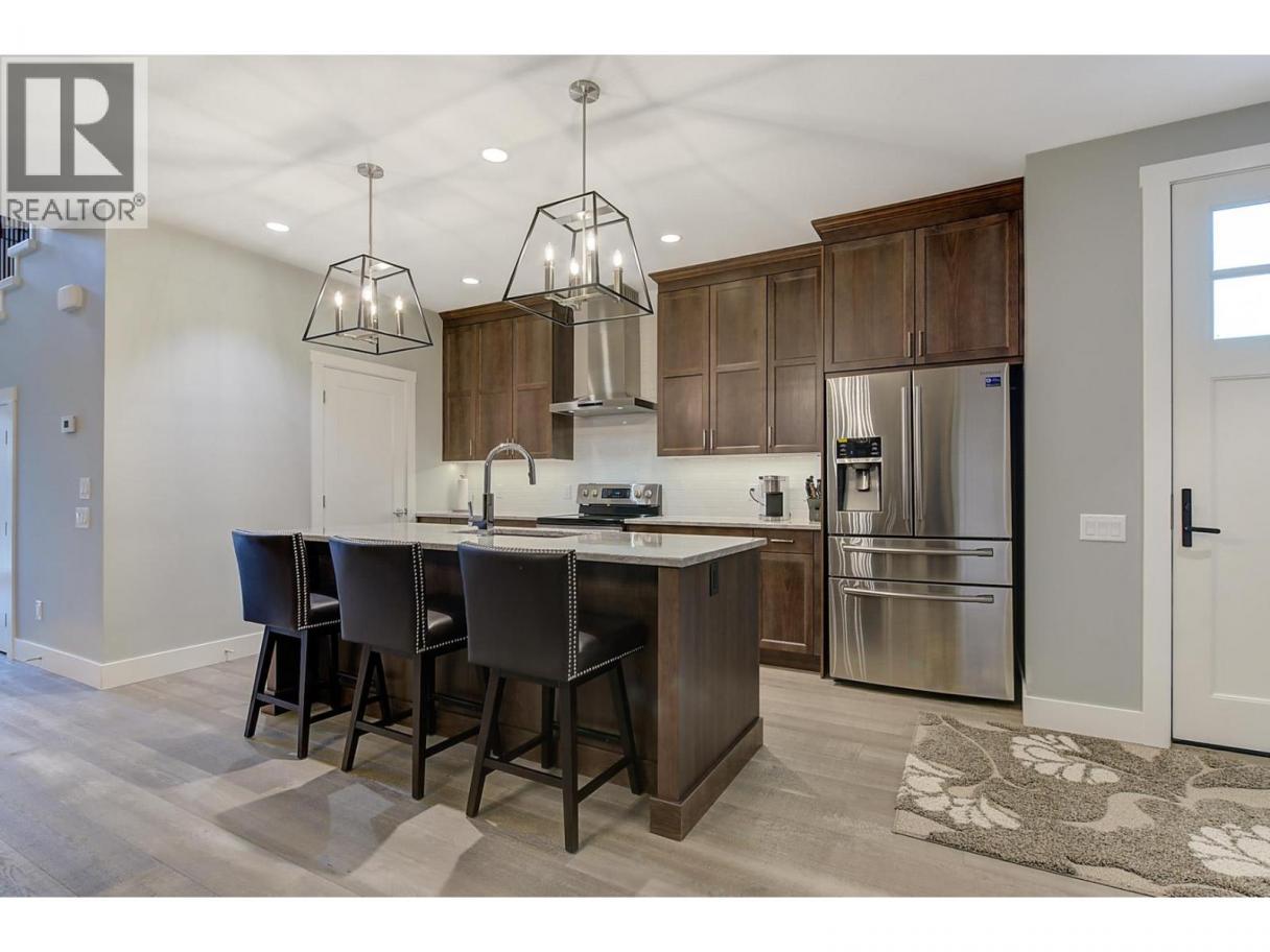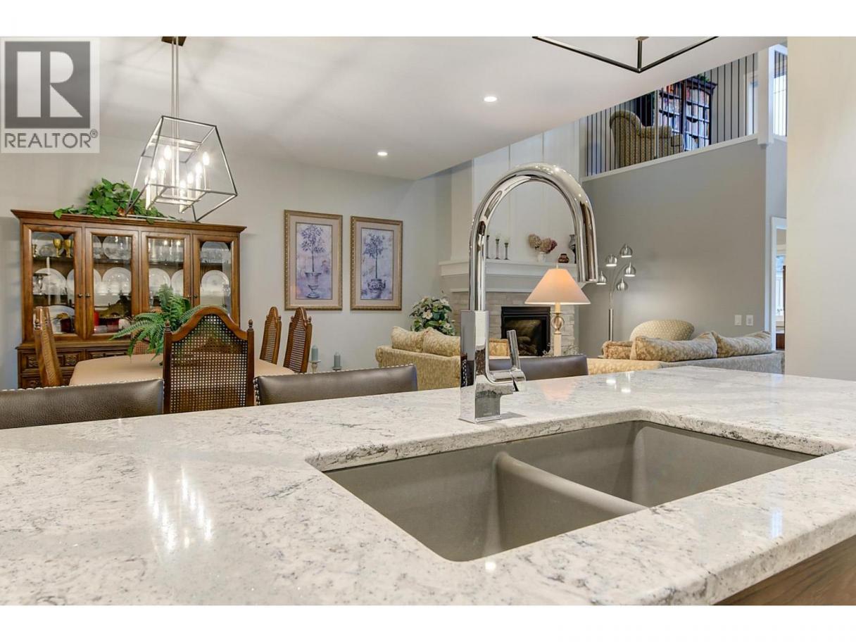 This meticulously cared-for 3-bedroom + den home combines modern design with functional living spaces. The open-concept main level is flooded with natural light, showcasing soaring ceilings and a stylish neutral palette that highlights the quartz countertops, island kitchen, and spacious walk-in pantry. The luxurious primary suite, conveniently located on the main floor, features a double vanity ensuite, a freestanding tub, and a walk-in shower. Adjacent to the garage, the mudroom offers practicality with laundry facilities, a sink, and abundant storage. Upstairs, a versatile loft serves as a second living area, complemented by two large bedrooms and a well-appointed bathroom. The fenced, low-maintenance backyard is ideal for relaxation or entertaining. The good sized double garage provides ample room, with additional storage, while the flat driveway offers extra parking. Nestled in a prime location just minutes from world-class golf courses, exceptional dining, shopping, and the breathtaking shores of Lake Okanagan, this home delivers the ultimate combination of elegance and convenience. (id:6769)