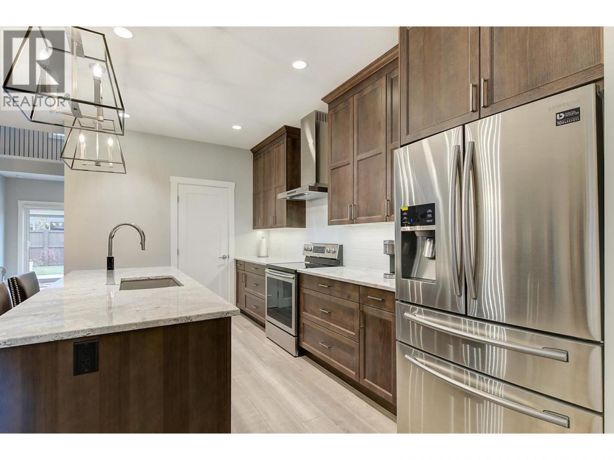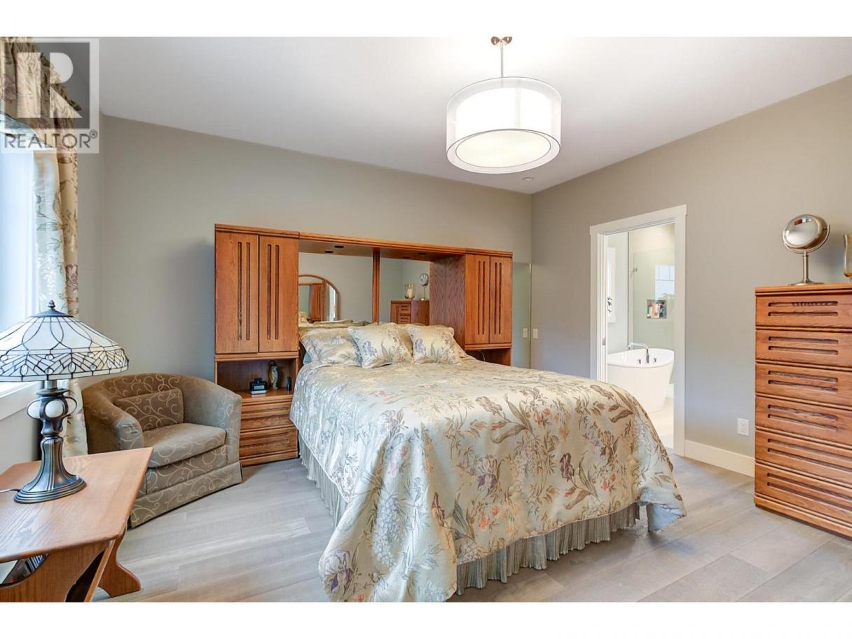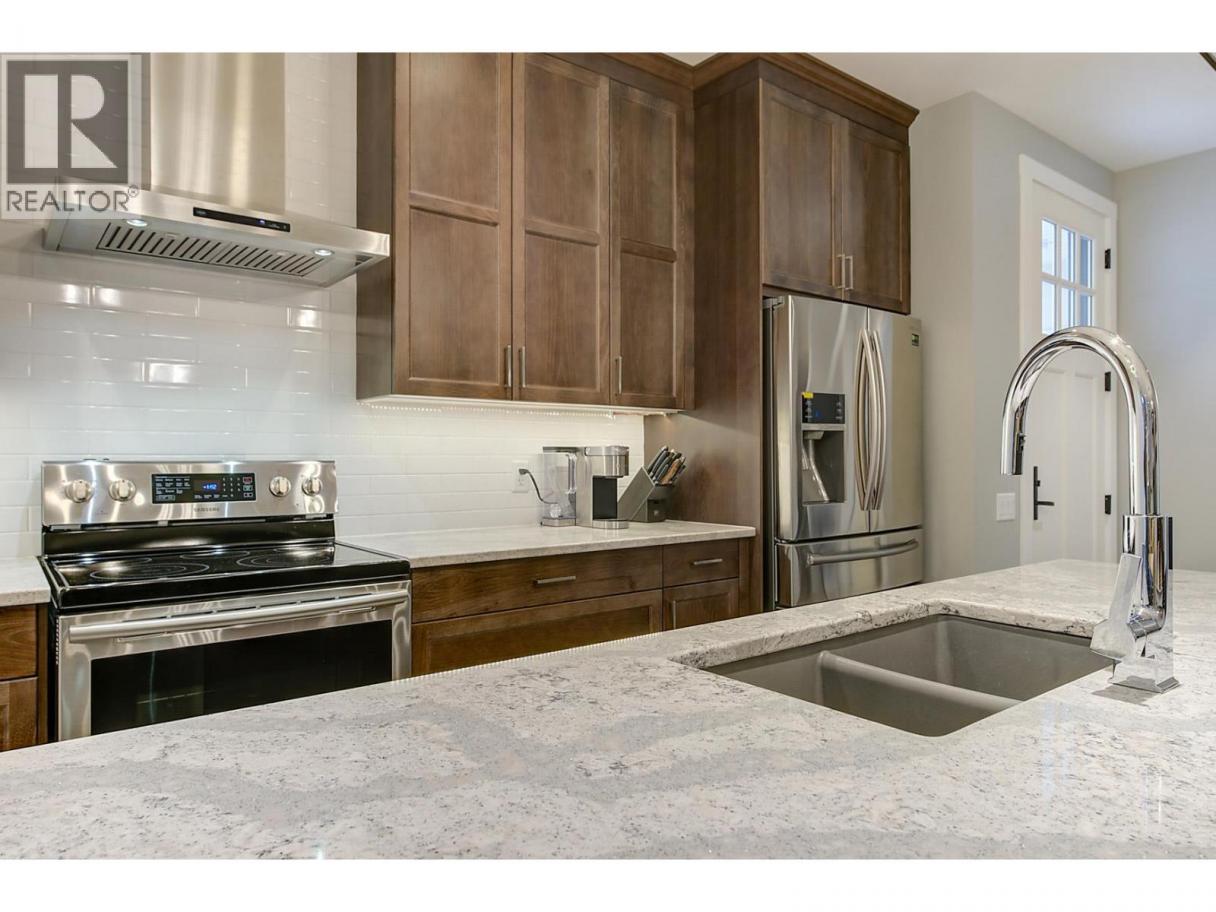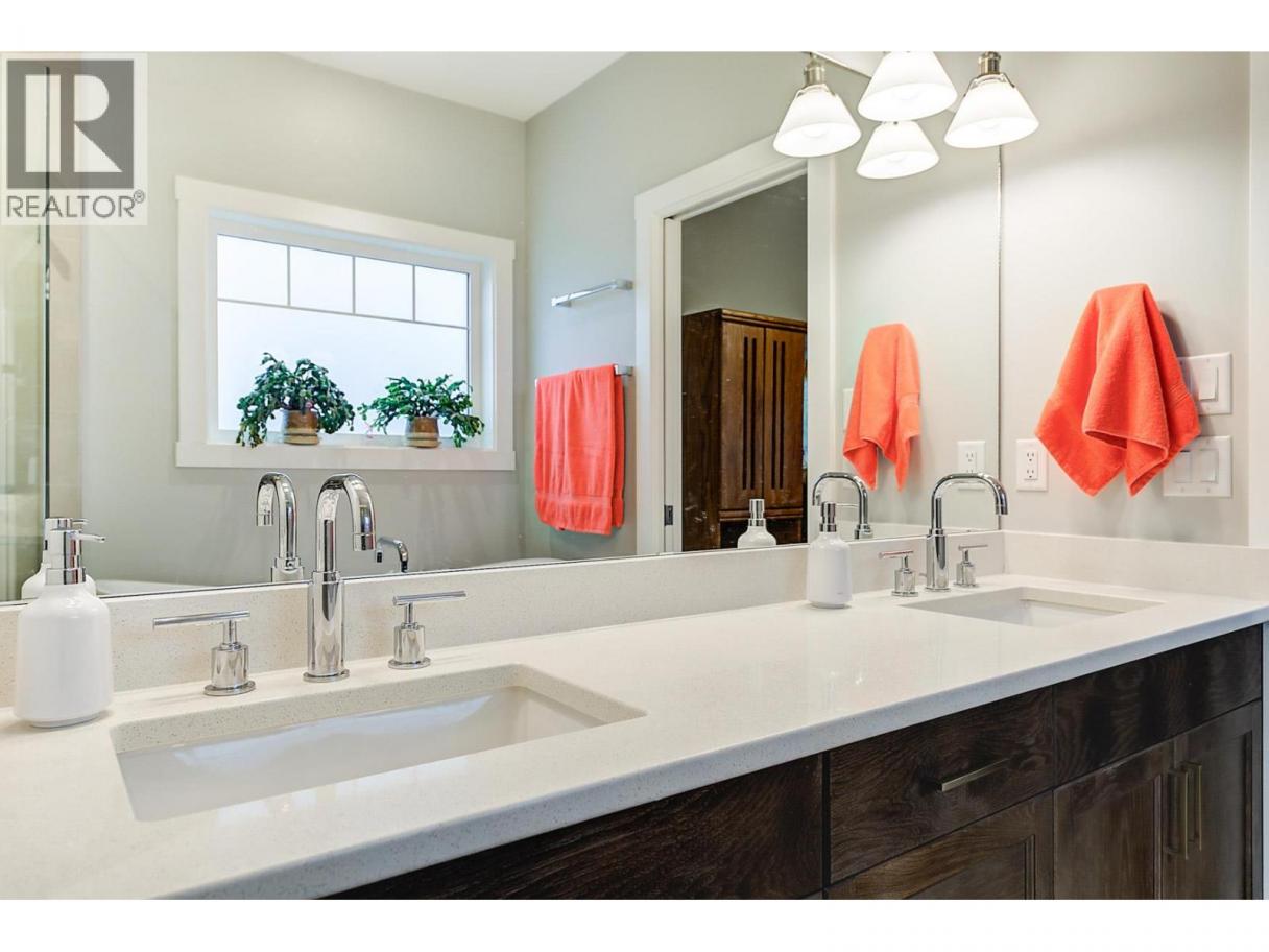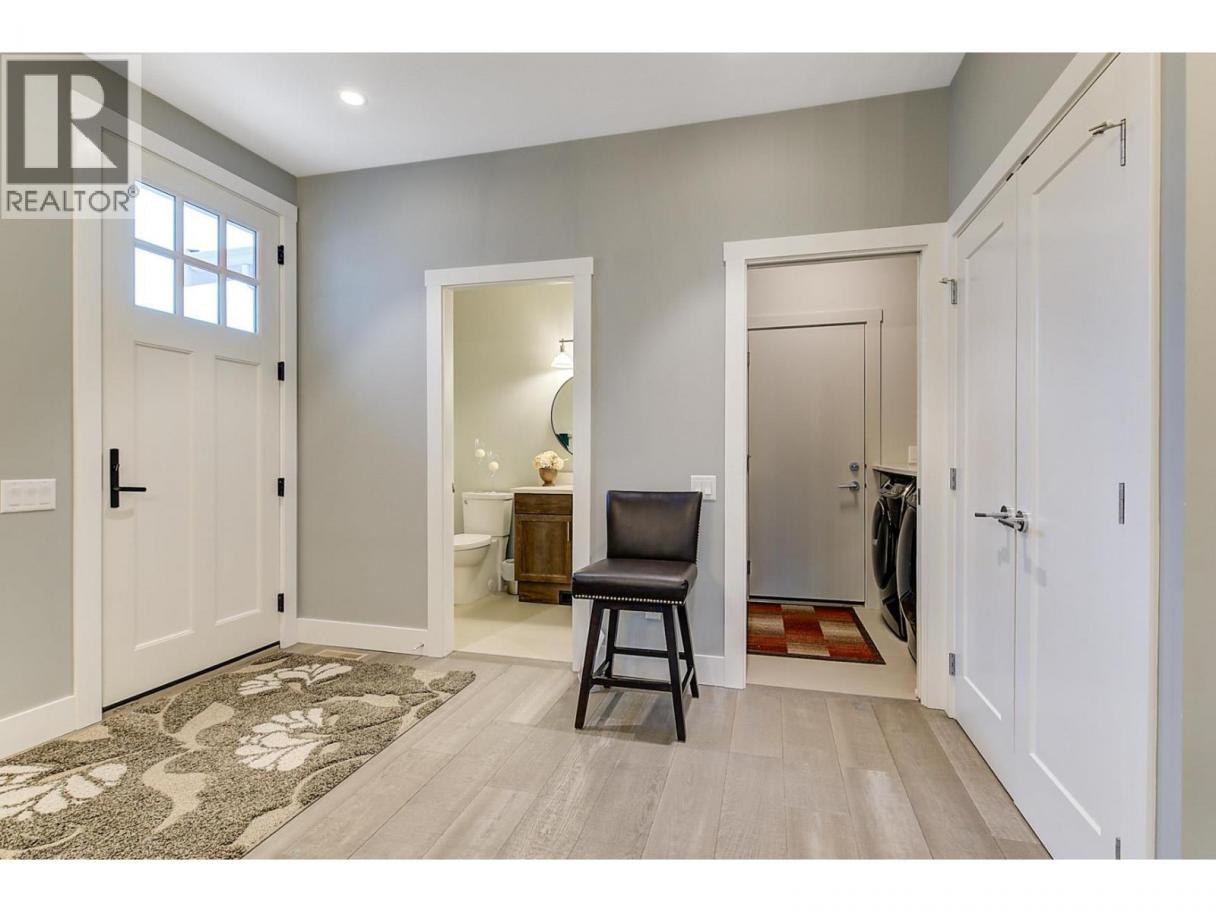 This meticulously cared-for 3-bedroom + den home combines modern design with functional living spaces. The open-concept main level is flooded with natural light, showcasing soaring ceilings and a stylish neutral palette that highlights the quartz countertops, island kitchen, and spacious walk-in pantry. The luxurious primary suite, conveniently located on the main floor, features a double vanity ensuite, a freestanding tub, and a walk-in shower. Adjacent to the garage, the mudroom offers practicality with laundry facilities, a sink, and abundant storage. Upstairs, a versatile loft serves as a second living area, complemented by two large bedrooms and a well-appointed bathroom. The fenced, low-maintenance backyard is ideal for relaxation or entertaining. The good sized double garage provides ample room, with additional storage, while the flat driveway offers extra parking. Nestled in a prime location just minutes from world-class golf courses, exceptional dining, shopping, and the breathtaking shores of Lake Okanagan, this home delivers the ultimate combination of elegance and convenience. (id:6769)