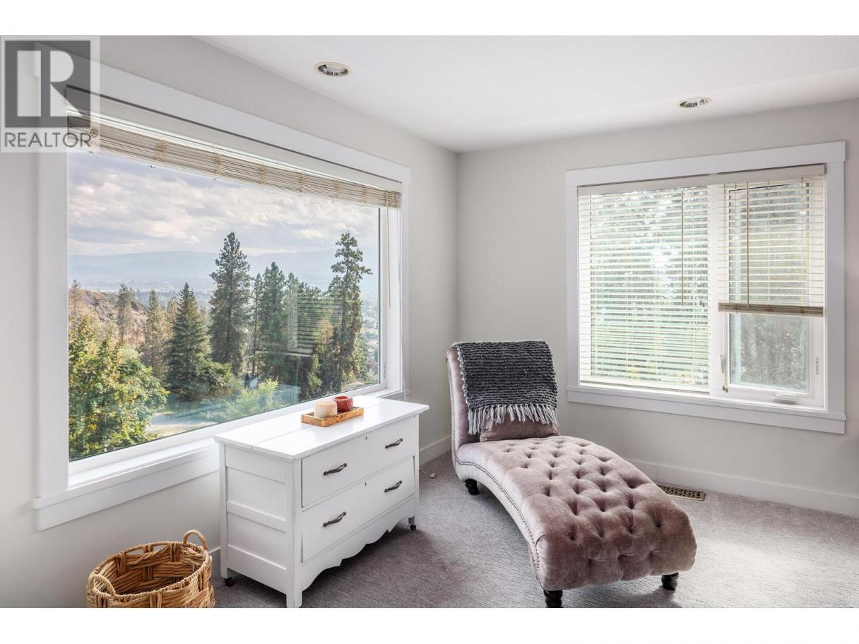 VIEWS/4879 SQ FT/2 HOUSES in 1. Unique and one of a kind home in the desirable Knox Mountain neighbourhood! Discover this character home tucked away at the end of a private cul-de-sac and offering breath taking views from all directions. This 4,879 sqft residence masterfully blends sophisticated living with a serene, secluded setting. Featuring 2 kitchens, 6 bedrooms, and 5 bathrooms, there is abundant space for your large family or guests, while a separate, fully equipped suite is perfect for generational living or an excellent income opportunity or a private retreat for visitors. Inside, an inviting open floor plan with 2 wood and 2 gas fireplaces to create the perfect atmosphere for relaxed evenings. Step outside to your private oasis with a fully fenced yard and an expansive deck that has a beautiful view of the cliff face, ideal for summer BBQs and soaking in the breathtaking panoramic lake views. The backyard is a gardeners dream with fruit trees, mature landscaping, perennials and a cozy stone fire pit area for entertaining friends and family. This prime location provides the best of both worlds—peaceful suburban living with easy access to adventure. You're just minutes from Knox Mountain's renowned hiking and biking trails and a short drive to the vibrant shops, restaurants, and recreation of downtown Kelowna. Thoughtfully renovated and brimming with charm, this rare find perfectly balances modern comfort with timeless charm. (id:6769)