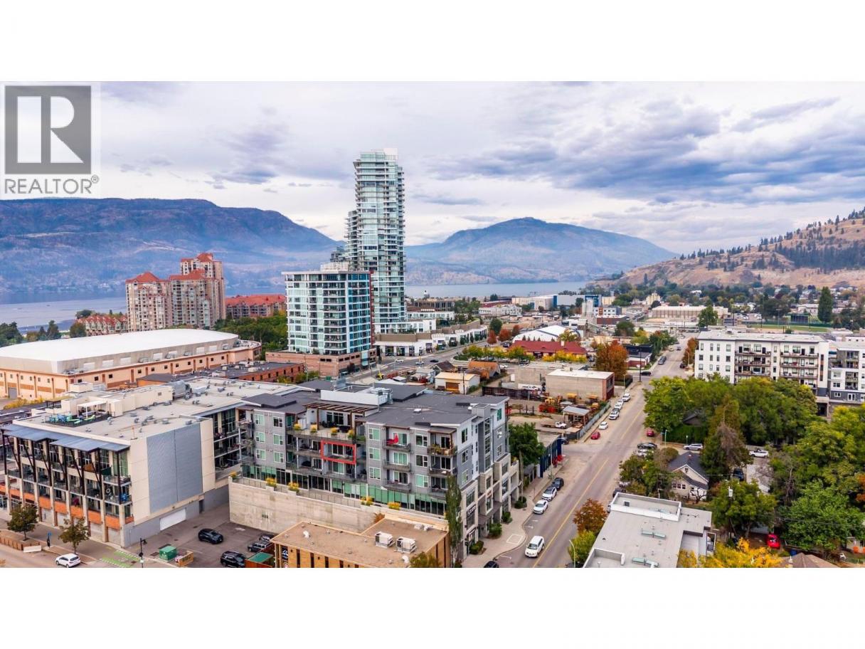 Welcome to Sole, where contemporary design meets the vibrant energy of Kelowna’s Cultural District. This 638 sq ft, 1 bedroom + den suite is filled with natural light, featuring large windows that showcase beautiful city and mountain views, creating a bright and welcoming atmosphere throughout.The open-concept layout highlights quartz countertops, stainless steel appliances, vinyl plank flooring, and a spa-inspired bathroom with double sinks and a glass shower. The bedroom wall can be closed for added privacy, while the den offers flexibility for a home office or guest space. The living area features a modern wall-mounted electric fireplace, adding warmth and ambiance, and the home comes equipped with central heating and cooling for year-round comfort. Step onto your covered patio to enjoy the view—the perfect spot for morning coffee or evening wine.You’ll appreciate the convenience of in-suite laundry, one secure underground parking stall, and one storage locker. Residents enjoy premium amenities including a rooftop patio with BBQs and fire tables, plus a fitness studio. Built by Edgecombe Construction, recipient of the 2016 GOLD Tommie Award for Home Builder of the Year, Sole is pet-friendly and ideally located just minutes from the beach, restaurants, shops, and the upcoming UBCO campus. Whether you’re seeking a modern downtown home or a great investment property, this bright, move-in-ready condo offers style, comfort, and unbeatable walkability in the heart of Kelowna. (id:6769)