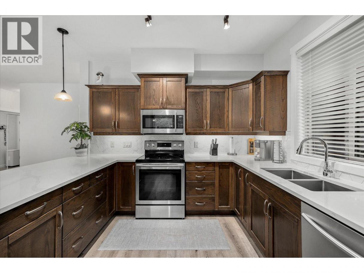 2 PARKING SPACES + 2 STORAGE UNITS! Ground-Floor Corner Condo in the Heart of Lower Mission Rare find in Mission Meadows — this spacious 2-bedroom, 2-bathroom corner condo includes two secure underground parking spaces and two storage units, an exceptional bonus for condo living. Perfect for young families, downsizers seeking single-level convenience, or as a vacation retreat, this ground-floor home blends comfort, location, and lifestyle. Enjoy living in the heart of Lower Mission, just steps from top-rated schools, Okanagan College, boutique shopping, dining, the H2O Recreation Centre (with sports fields, ice rink, and pool), and best of all — a short stroll to the lake. Inside, the newly renovated U-shaped kitchen features quartz countertops, stainless steel appliances, and overlooks a bright open-concept living and dining area designed for easy entertaining and relaxation. Step outside onto your private wrap-around patio, ideal for morning coffee or dinner al fresco. Residents of Mission Meadows enjoy access to an impressive clubhouse with a fitness center, games area, and guest suites for visiting family and friends. The community offers low strata fees, long-term rentals allowed, and one cat or one dog (up to 15” at the shoulder). Move-in ready, beautifully updated, and in one of Kelowna’s most desirable neighborhoods — this is Lower Mission living at its finest. (id:6769)