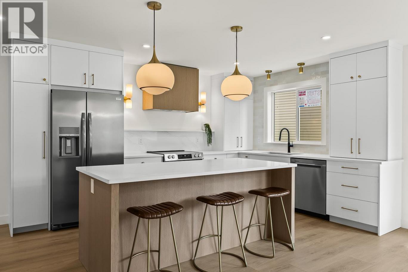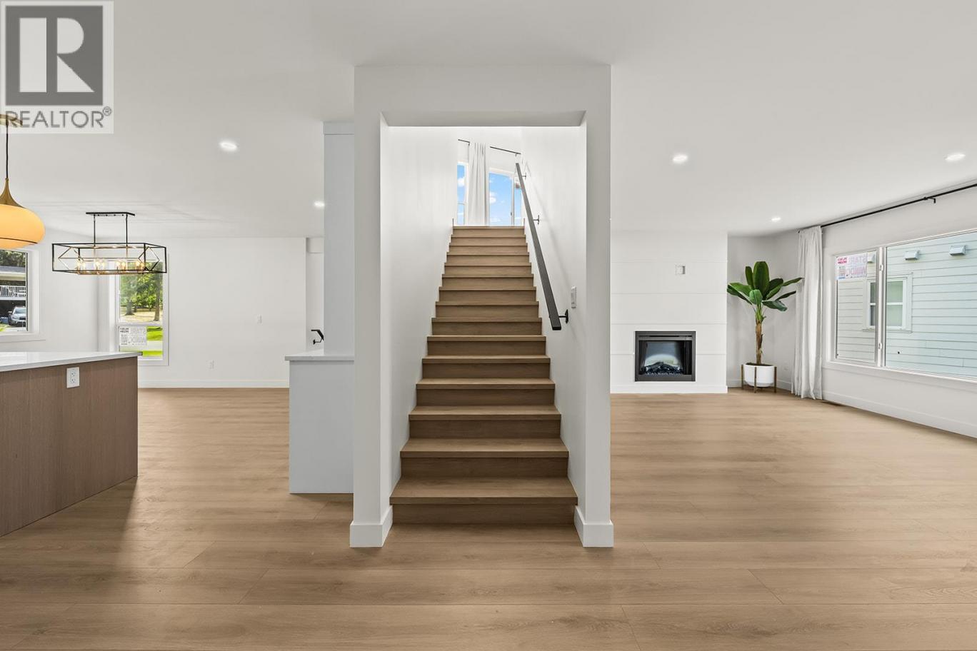 Beautiful new 4 bedroom, 3 bathroom home located in Kelowna’s highly sought-after Lower Mission neighborhood. Situated at the end of a quiet street, this property offers both privacy and convenience. Featuring high-end laminate and vinyl flooring throughout, quartz countertops, and stainless steel appliances, the home showcases stunning modern finishings with a bright and inviting design. The main level boasts a spacious living room with a cozy electric fireplace, while the upper level includes a versatile bonus room with access to a large balcony, perfect for relaxing or entertaining. The lower level offers a generous rec room with a second electric fireplace, a large laundry area, a full bathroom with double vanity, and two well sized bedrooms. Additional highlights include central air, rough-in for central vacuum, and a double garage with extra driveway parking. Ideally located within walking distance to Bellevue Creek Elementary and just minutes from shopping, restaurants, and all amenities. Enjoy Okanagan Lake and Kelowna’s beautiful beaches only a short drive away. (id:6769)
