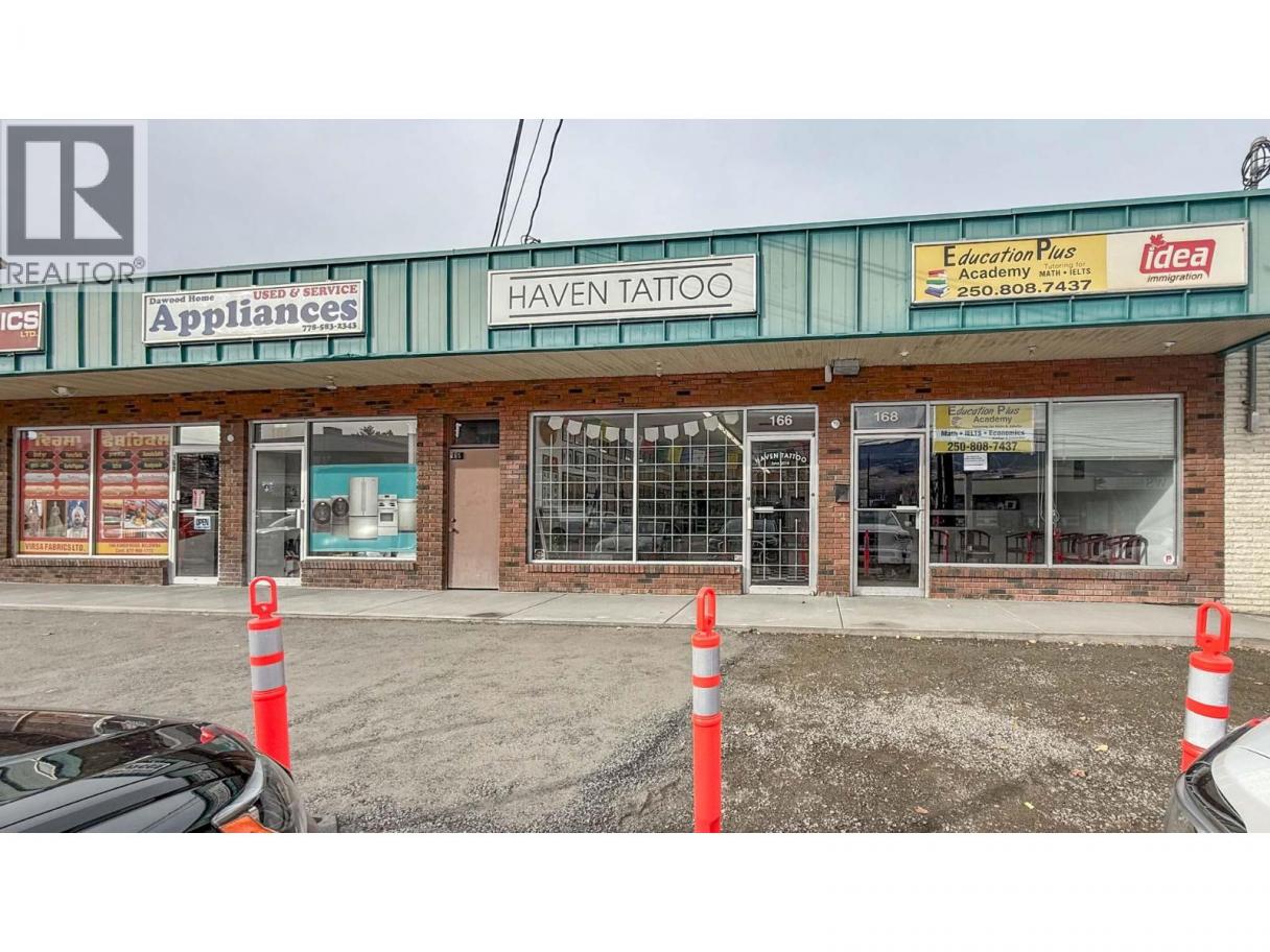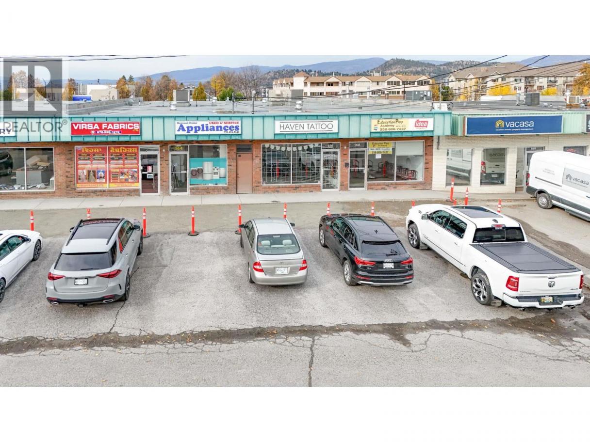 COMPLEX FACADE UPDATE IN PROGRESS! In-line, street level commercial unit available in the Asher Complex, located in the heart of the Rutland Urban Centre. Approx. 915 SF of versatile commercial space, featuring a large, open retail area to the front of the unit with oversized, street facing windows & glass entry door, individual office, flexible back area to use for staff, office or storage. Unit includes a washroom and a storage room to the rear. Parking available to the front and rear of the unit. Centrally located, close to restaurants, coffee shops, banks, boutique businesses, public transportation and only a short walk to Plaza 33. Sorry, no food uses. Vacant at the end of this month. The adjoining unit, 168 Asher Road (+/-2,085 SF) is also available for lease and can be combined if a larger footprint is desirable. (id:6769)