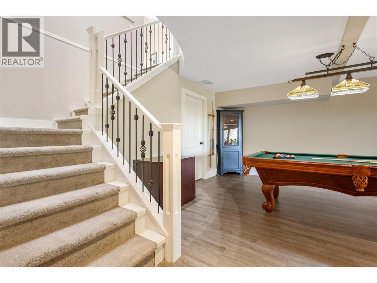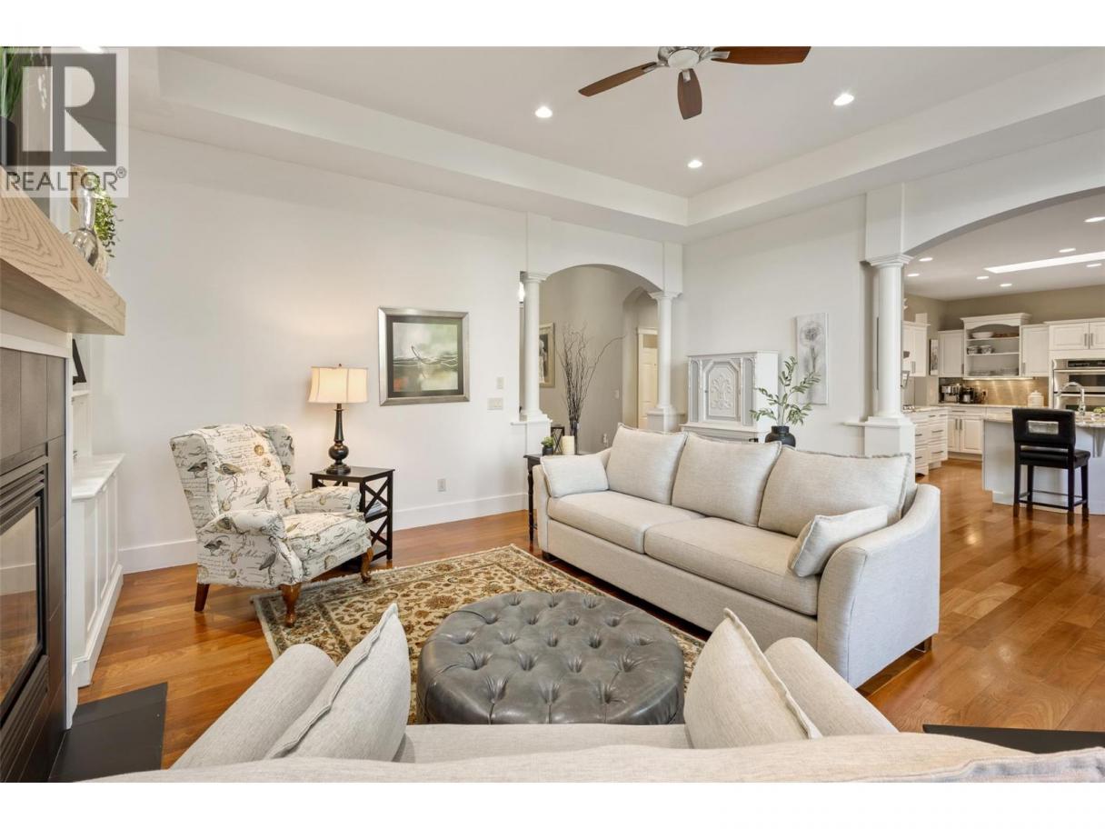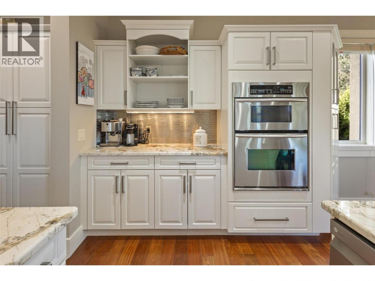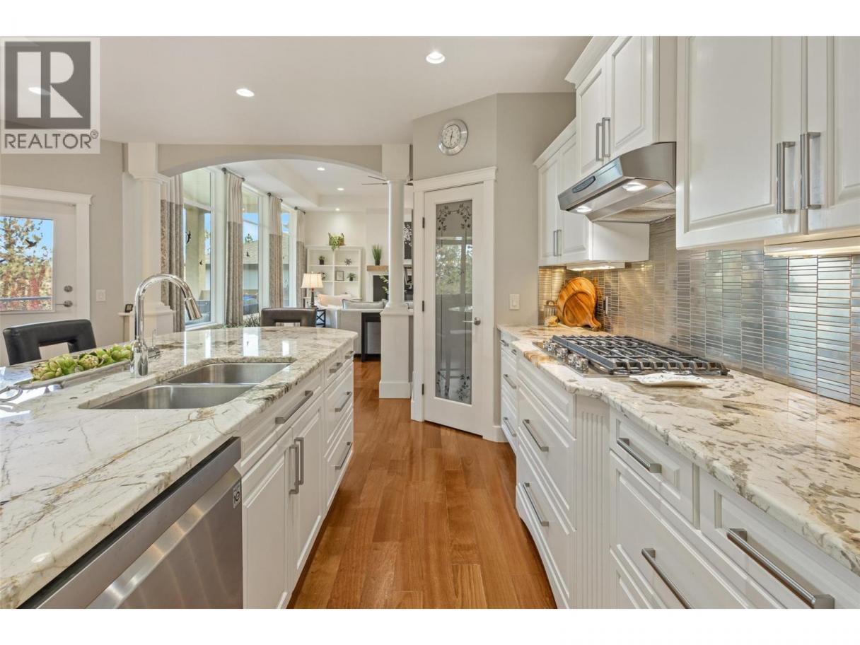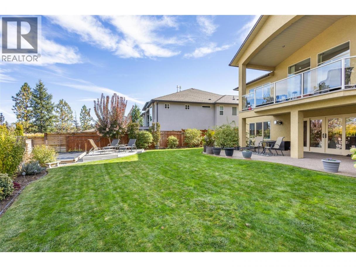 Meticulously maintained and built to impress, this 3,600+ sq. ft. walkout rancher blends timeless craftsmanship with modern comfort. From the moment you enter, 15-foot ceilings and sun-filled windows create an elevated sense of space and warmth. The main level features 11-foot ceilings, and refinished Brazilian cherry hardwood that glows with pride of ownership. The open layout connects a spacious great room, gourmet kitchen with granite counters and raised island, and a large covered deck perfect for entertaining. The luxurious primary suite offers a spa-like ensuite with heated floors, his-and-hers sinks, a double soaker tub, and a separate shower. Downstairs, the bright walkout basement is ideal for family or guests — complete with an in-law suite with separate laundy. A large bathroom with his and hers sinks. As well as 2 more bedrooms, a large games and family room, and a cozy gas fireplace. Outside, the private yard is pool-sized, hot-tub ready, and framed by meticulous landscaping. With 200-amp service, newer AC and hot water tank, underground sprinklers, and countless thoughtful upgrades, every detail has been carefully considered. Just steps to the brand-new shopping centre, top schools, and scenic trails, this is the perfect layout and location for a growing family in one of Kelowna’s most desirable neighbourhoods. (id:6769)