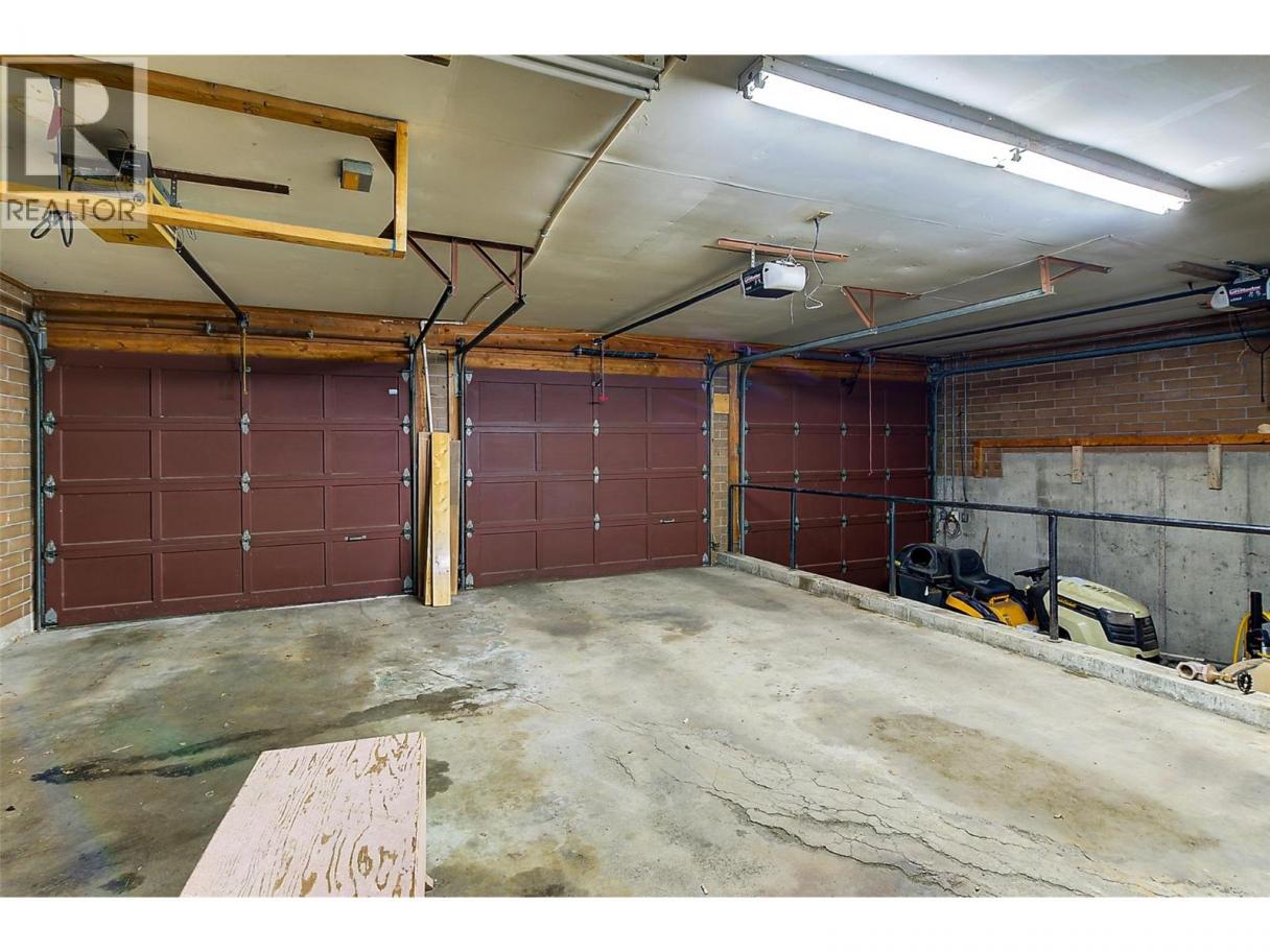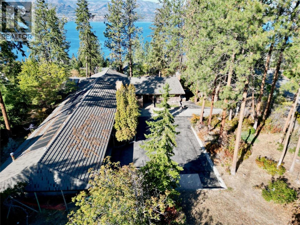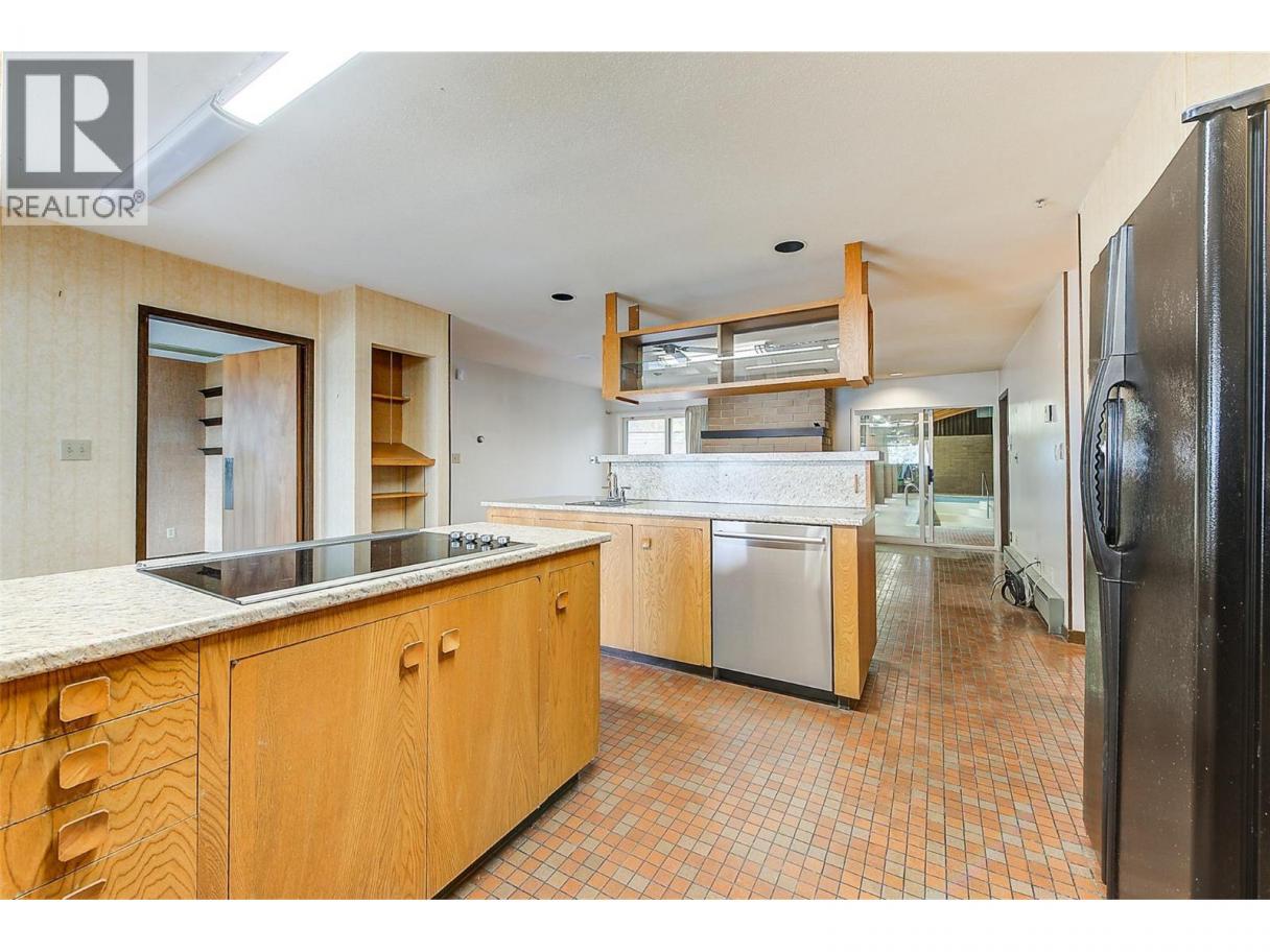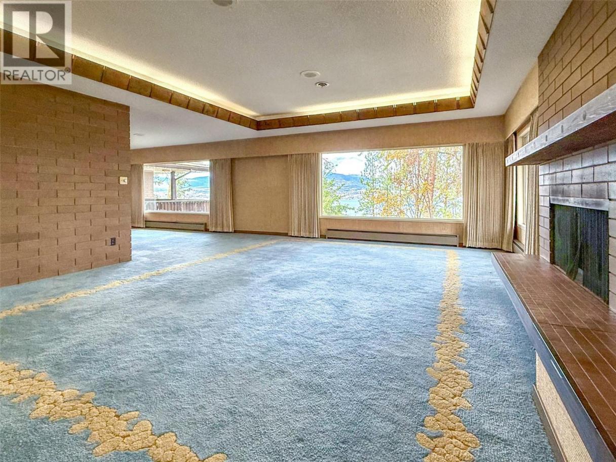 RARE EXECUTIVE ARCHITECTURALLY DESIGNED 6960 SF CONTEMPORARY ESTATE RANCHER WALKOUT, with INDOOR 20x40 CONCRETE POOL, TRIPLE GARAGE ON .93 ACRE OLD GROWTH Treed Lot with VIEW OF LAKE! 1st time on market! This Sprawling custom designed Rancher is sure to impress, full large brick exterior, concrete tile roof. While it is a walk into yesteryear decor, it is timeless in solid quality built construction and design. Big spacious rooms offer tons of potential for great for entertaining and family life! 3 Brick fireplaces, easy flo floor plan. Large inviting Entry with open stairs down greets you. Massive living room with 2 picture windows, classic sculpted carpets, enjoys a stunning View of the large grounds, Lake, Westside and even Bridge. Extra Large floor to ceiling Brick real wood fireplace. Big Dining room with picture window to View and solid wood pass door to Kitchen. Country sized wood kitchen with built in's, window over sink to View, with open plan to adjacent family room with Brick gas fireplace and glass sliding door to front private courtyard. Large semi-covered Deck. 1469 SF Laminate Wood beamed Dive depth Concrete Pool and swirl pool area with solar heat will impress you! 2 Beds plus den up, 3 bedrooms down. Large Rec Room with Wood fireplace. Huge Workshop area, tons of storage. 600 amp service! Drilled private well, city connection avail. Huge driveway welcomes you, Courtyard parking area. Home is ""as is where is"" but great bones, ready for your ideas. (id:6769)