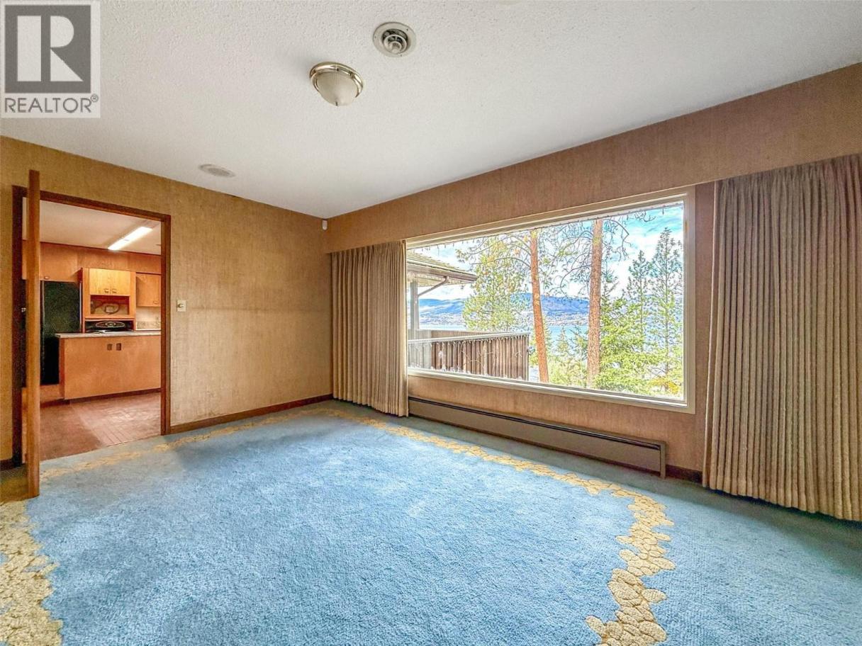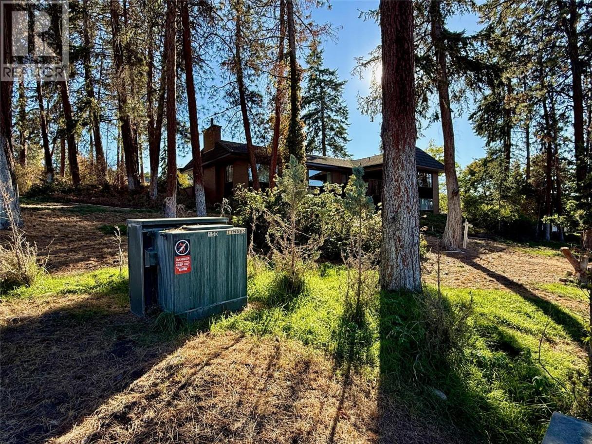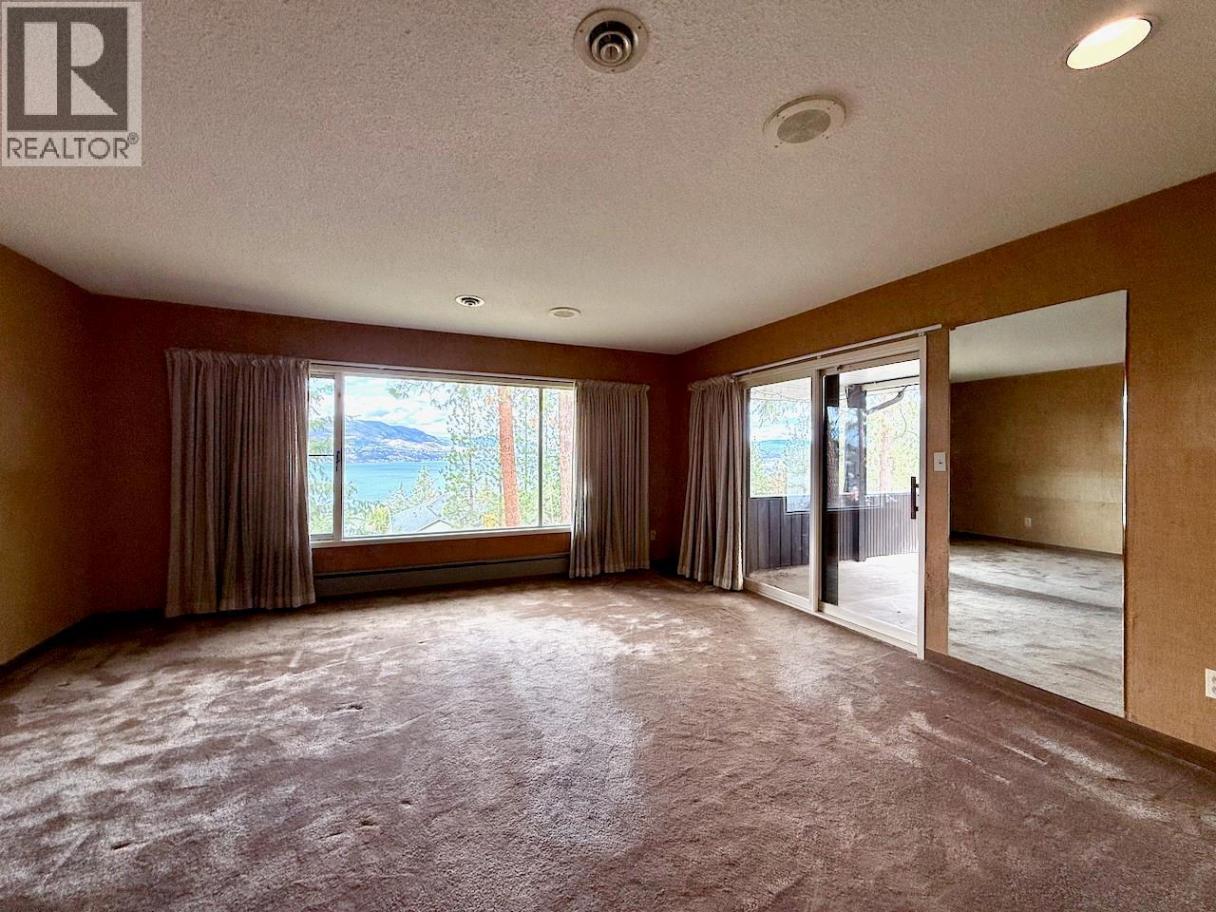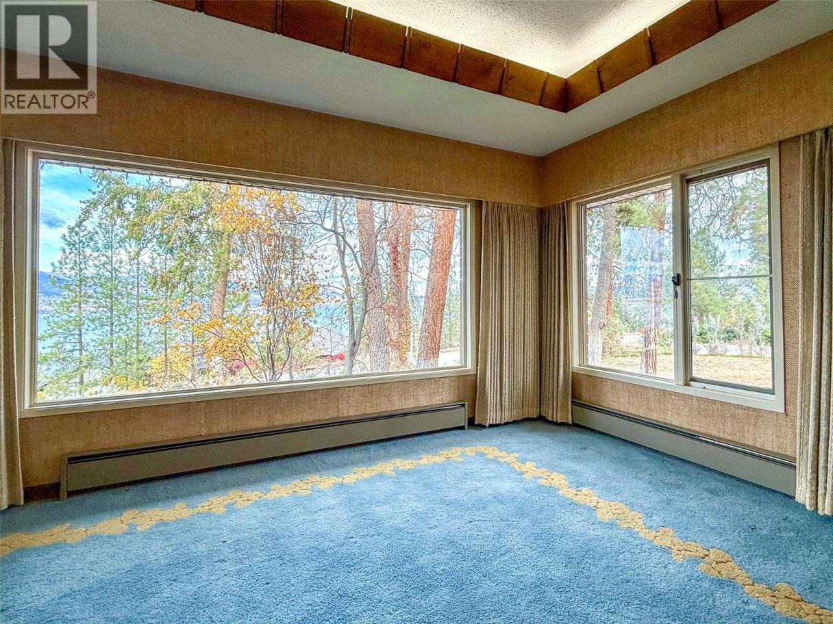 RARE EXECUTIVE ARCHITECTURALLY DESIGNED 6960 SF CONTEMPORARY ESTATE RANCHER WALKOUT, with INDOOR 20x40 CONCRETE POOL, TRIPLE GARAGE ON .93 ACRE OLD GROWTH Treed Lot with VIEW OF LAKE! 1st time on market! This Sprawling custom designed Rancher is sure to impress, full large brick exterior, concrete tile roof. While it is a walk into yesteryear decor, it is timeless in solid quality built construction and design. Big spacious rooms offer tons of potential for great for entertaining and family life! 3 Brick fireplaces, easy flo floor plan. Large inviting Entry with open stairs down greets you. Massive living room with 2 picture windows, classic sculpted carpets, enjoys a stunning View of the large grounds, Lake, Westside and even Bridge. Extra Large floor to ceiling Brick real wood fireplace. Big Dining room with picture window to View and solid wood pass door to Kitchen. Country sized wood kitchen with built in's, window over sink to View, with open plan to adjacent family room with Brick gas fireplace and glass sliding door to front private courtyard. Large semi-covered Deck. 1469 SF Laminate Wood beamed Dive depth Concrete Pool and swirl pool area with solar heat will impress you! 2 Beds plus den up, 3 bedrooms down. Large Rec Room with Wood fireplace. Huge Workshop area, tons of storage. 600 amp service! Drilled private well, city connection avail. Huge driveway welcomes you, Courtyard parking area. Home is ""as is where is"" but great bones, ready for your ideas. (id:6769)
