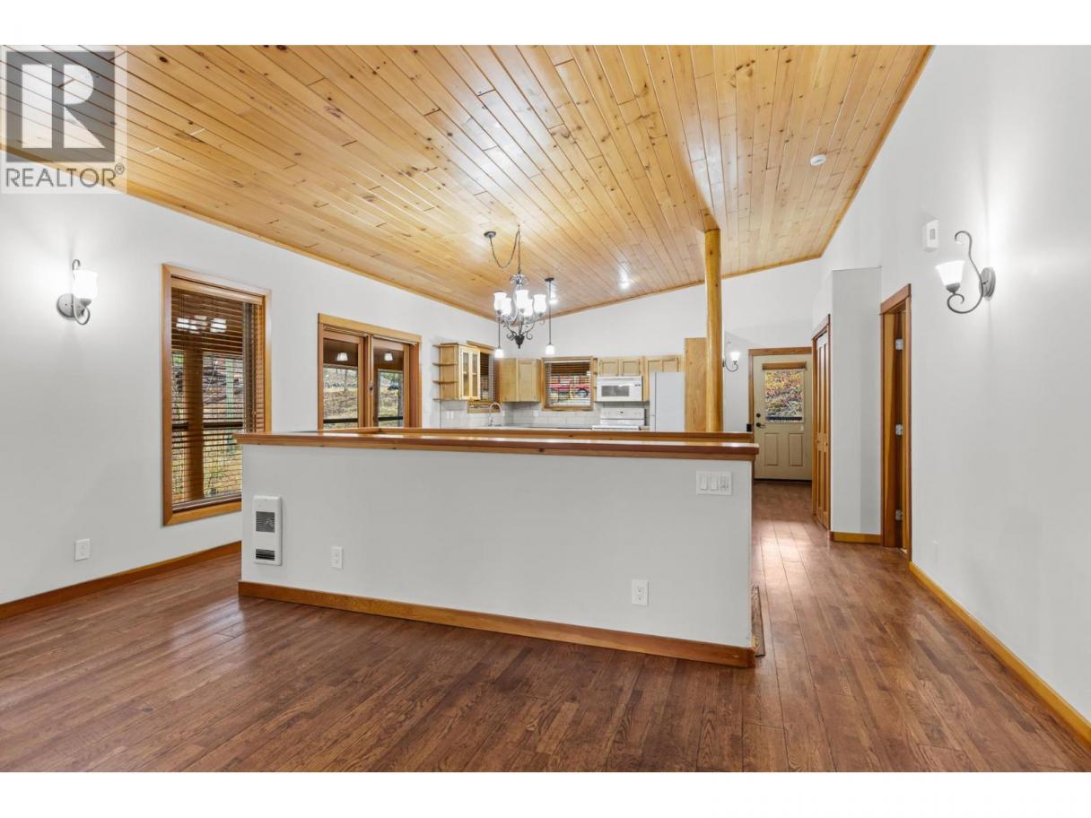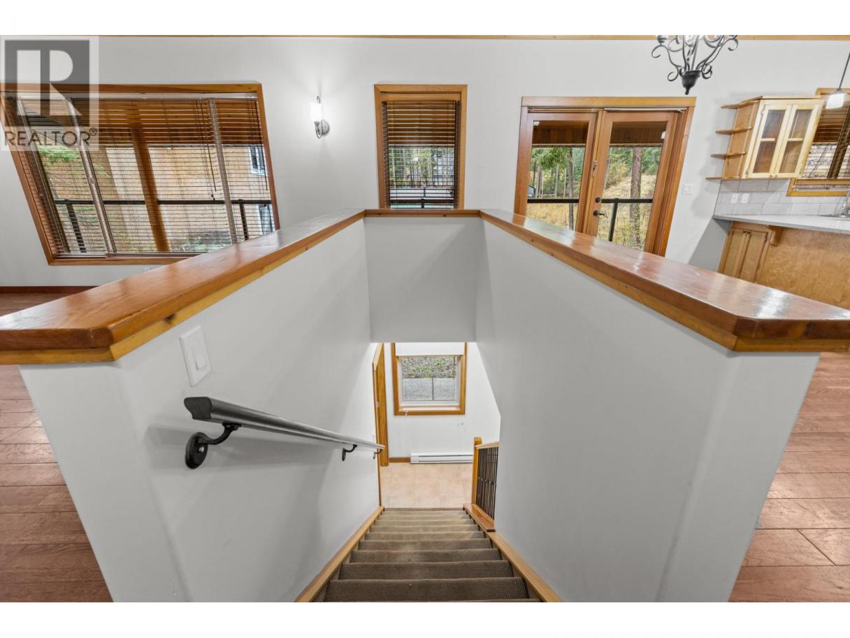Welcome to this cozy custom-built home, located on generous 0.44 acre lot, close to parks, trails, and recreation, with four bedrooms, three bathrooms, and 2,383 square feet of living space. The main level features open concept living with vaulted ceilings, beautiful wood ceilings, and a full wrap around covered deck. The primary bedroom has a large closet and full ensuite, while a second bedroom and full bath finish his level. Downstairs, the basement has been completely redone with new floors, paint, lighting, and a beautiful bathroom with dual vanities. This level is roughed in for a suite with separate entrance, so there is great income potential. There is an oversized detached double garage + limitless outdoor parking, perfect for all the cars, toys, and storage. Well maintained exterior with beautiful woodwork and beams, and a long-lasting metal roof. A great property for those who want a lot of space, a lot of privacy, income potential, and beautiful natural surroundings. (id:6769)