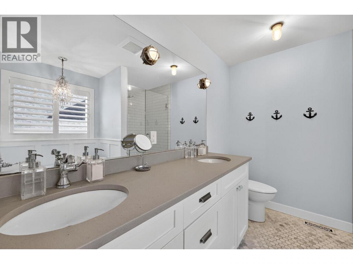 This detached cottage-style residence at La Casa Lakeside Resort offers lake-side living with incredible lake views, backing onto private greenspace & featuring an extended driveway for ample parking. Enjoy multiple outdoor living options with a private back deck & two front-facing decks (perfect for sunning, shade, relaxing, or entertaining). The att. dble garage includes an extra fridge & b/in cabinets, while an office/den & full bath provides flexibility for owners. The main floor features a 2nd bed with a cheater ensuite complete with walk-in tiled shower. Island kitch. equipped w/ss appls, includes a gas range & under-counter bev. fridge. Soaring ceilings in the great room w/a wall of lake-view windows lead to the spacious cov. deck. Up, the private primary level offers a large walk-in closet, a lofted space w/a sundeck & a luxurious 5-piece ensuite w/a sep soaker tub & shower. Add'l highlights: quartz counters throughout, epoxy garage floor, custom blinds, California shutters & sold turnkey. Short-term rentals are permitted & La Casa has a strong vacation rental market—option to self-manage or let an on-site management company handle it as a passive investment. Resort amenities: beach, marina w/boat slips, boat launch, swimming pools, hot tubs, aqua parks, mini golf, playground, tennis & pickleball courts, volleyball, fire pits, dog beach, gated security, owners' lounge, fitness center, on-site grocery/liquor store, & a restaurant! *Some photos are virtually staged* (id:6769)