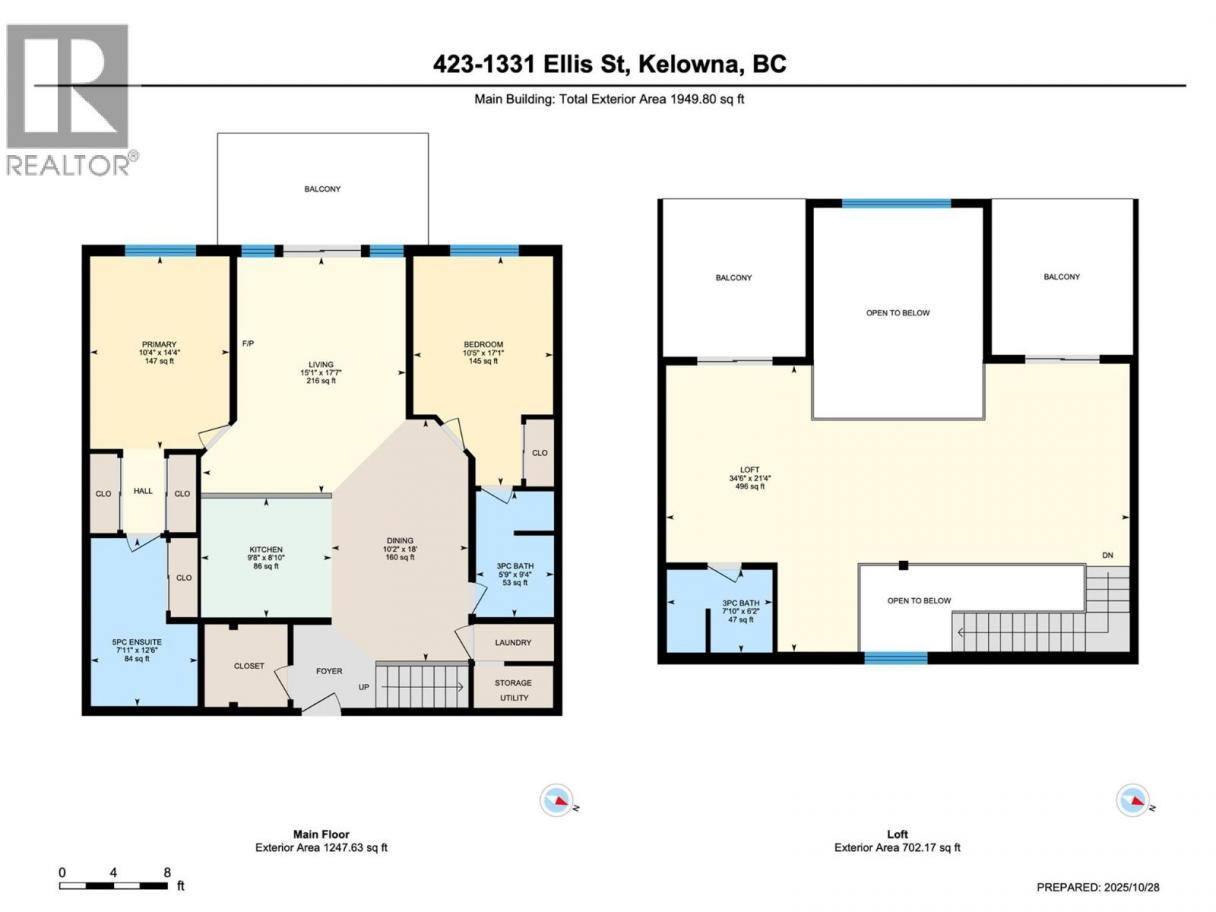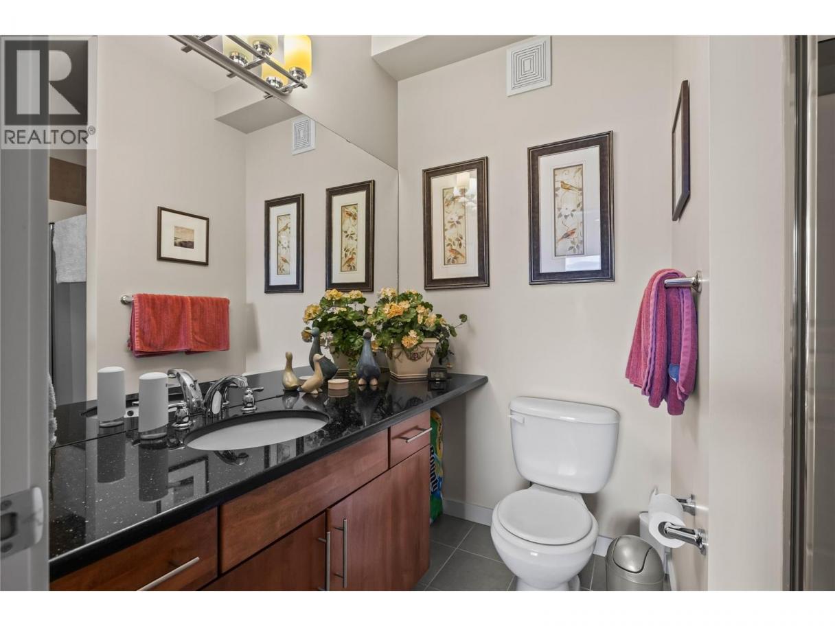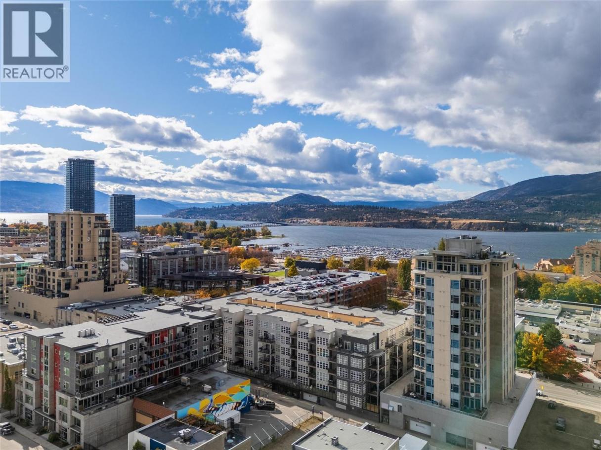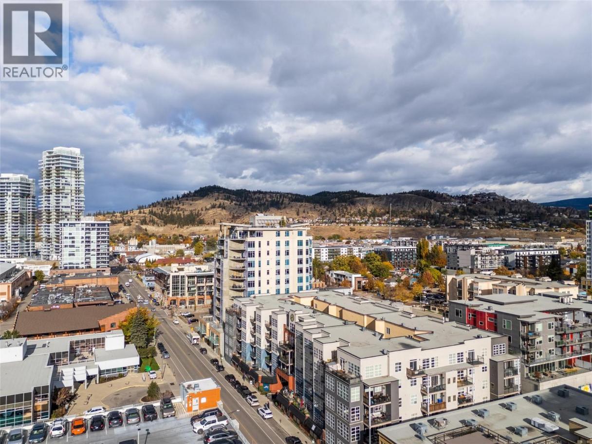 Downtown Kelowna Loft Living at Its Best — Nearly 2,000 Sq Ft of Bright, Stylish Space. A truly unique and rare offering in the heart of downtown Kelowna — welcome to Ellis Court. This exceptional home combines urban sophistication with spacious comfort, featuring soaring 20-foot ceilings, beautiful hardwood floors throughout, and expansive west-facing windows that fill the space with natural light and Okanagan Lake within sight. The main floor offers two generous bedrooms and two full baths, including a luxurious 5-piece primary ensuite and a 3-piece cheater ensuite for guests. A large uncovered balcony off the living area provides the perfect spot to take in the downtown sights and sounds. Upstairs, the massive loft offers flexible space for a third bedroom or media lounge, and an additional space for a home office, complete with its own 3-piece bath and two private balconies, ideal for enjoying quiet morning coffee or evening sunsets. Modern upgrades bring peace of mind, including: New furnace & A/C (2021), Washer & dryer (2021), Hot water tank (2017), Motorized blackout curtains in living room & loft (2024), New sliding patio doors (2020) and balcony flooring (2020). Ellis Court is pet-friendly (with restrictions) and includes 1 parking stall and 1 storage locker. Step outside your door to Prospera Place, Kelowna Community Theatre, the YMCA, local breweries, restaurants, and shops — all just minutes from the lake and beaches. This is downtown living without compromise. (id:6769)