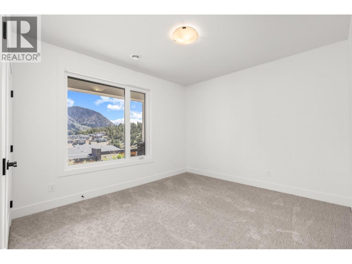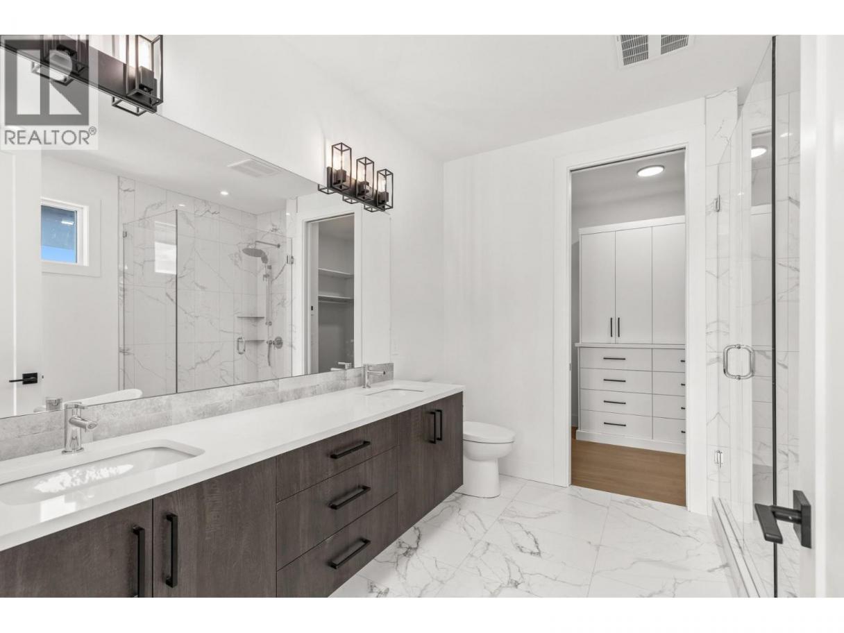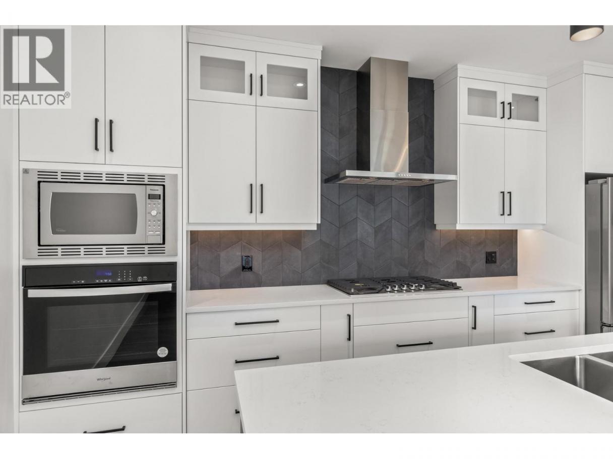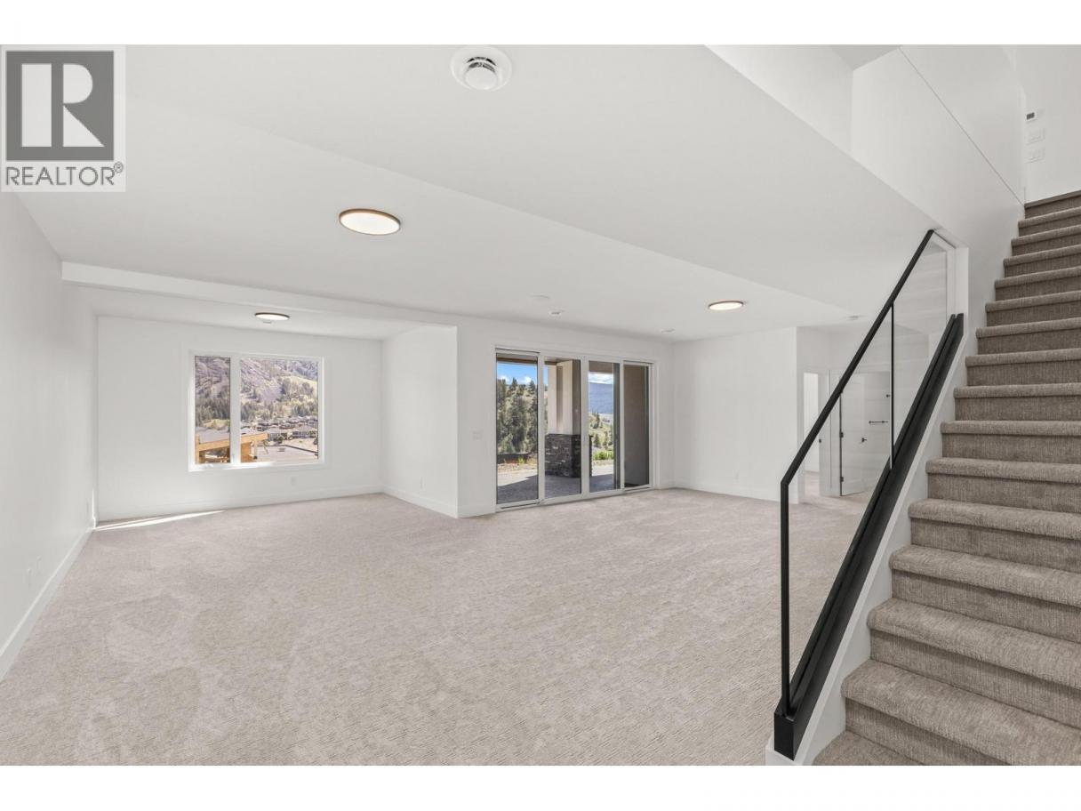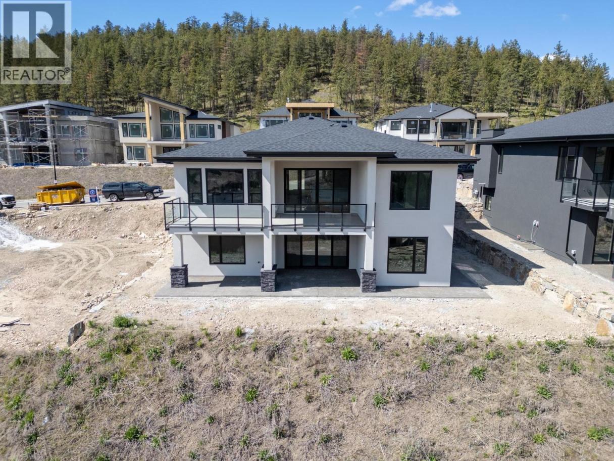 Brand New Walkout Rancher with Legal Suite! Welcome to this stunning new home offering sweeping valley and mountain views. Every detail has been thoughtfully designed — from the custom tile work and chic modern color palette to the smart, open-concept layout. The main floor features a gourmet island kitchen with a gas cooktop, overlooking the Great Room with a unique Hydra fireplace and floor-to-ceiling windows that flood the space with natural light. A spacious laundry room with abundant cabinetry adds everyday convenience. You’ll also find a second bedroom and a stylish powder room on this level, ideal for guests or family. The bright living and dining areas flow seamlessly onto a large covered deck, perfect for entertaining. The elegant primary suite enjoys a gorgeous outlook and features a luxurious ensuite with double sinks, a soaker tub, and an oversized glass and ceramic shower, plus a generous walk-in closet. The lower level includes two additional large bedrooms, a full 5-piece bath, a recreation room, and access to a covered patio. A self-contained legal one-bedroom suite offers flexible options for guests or rental income. Additional highlights include an oversized double garage with an extra-wide driveway, superior insulation and airtight construction, and Energy Step Code 3 compliance (R24 walls and R60 ceilings) for exceptional energy efficiency. Located just 20 minutes to downtown, and 30 minutes to Big White Ski Resort. 10-Year New Home Warranty (id:6769)
