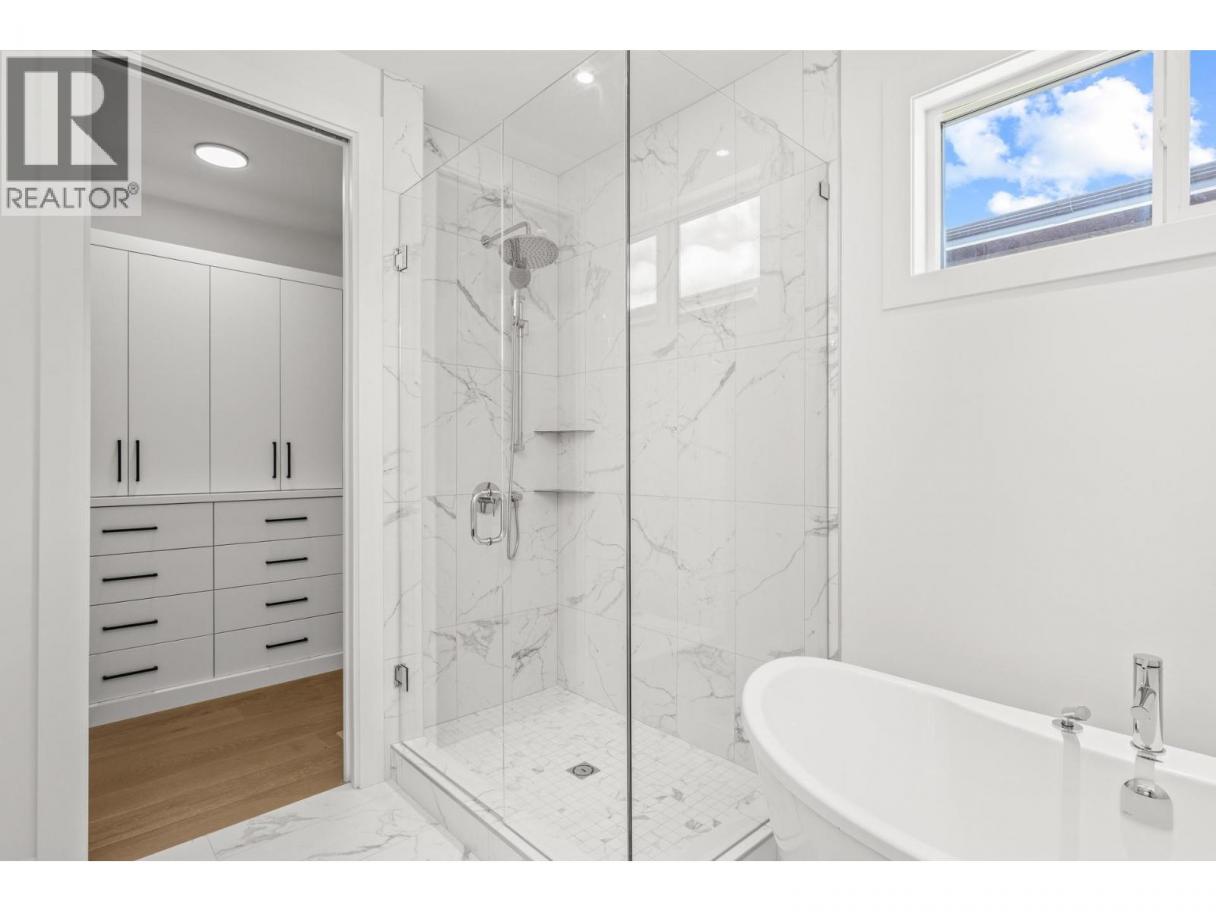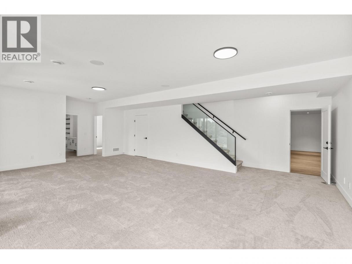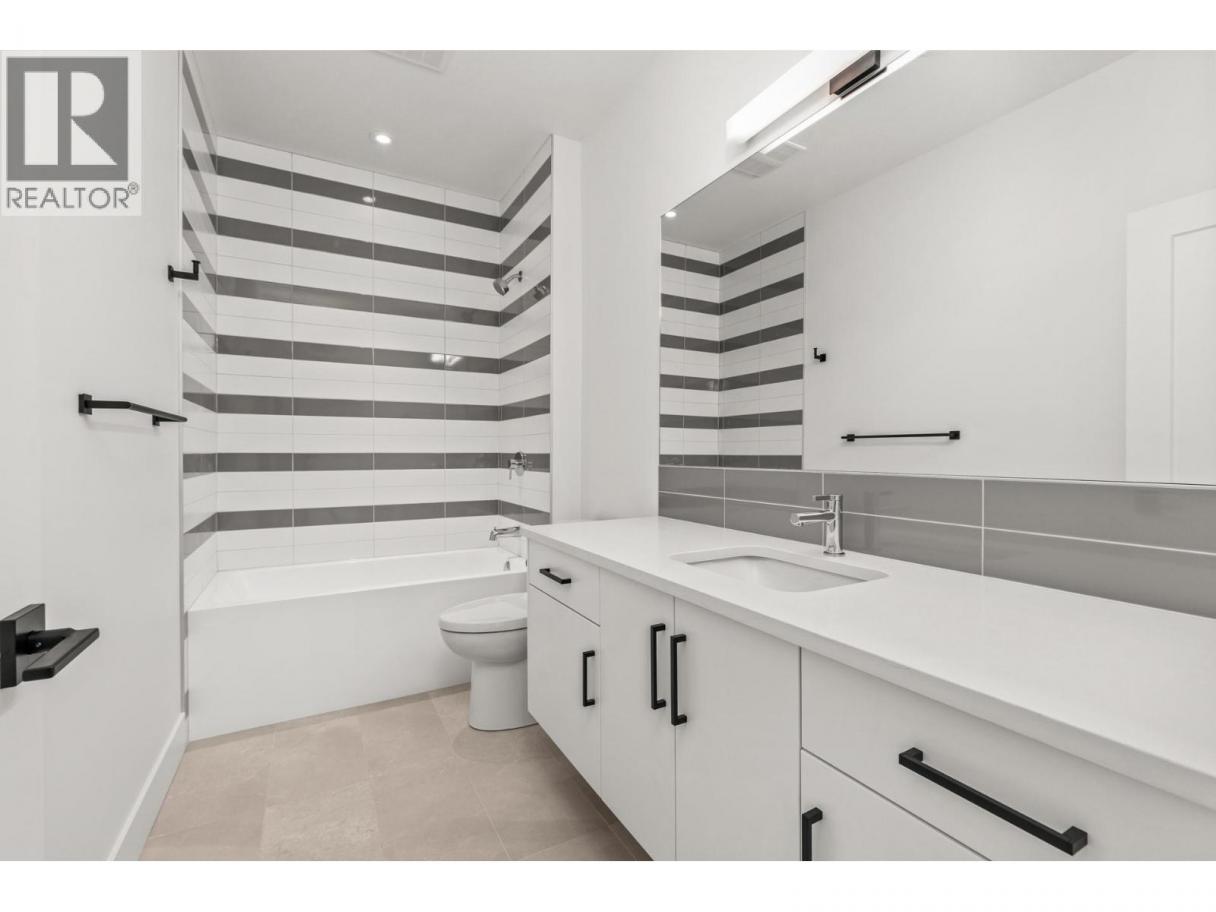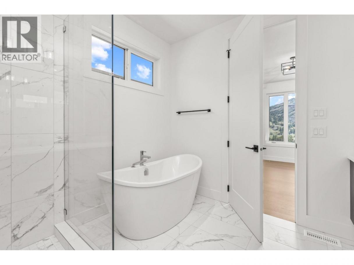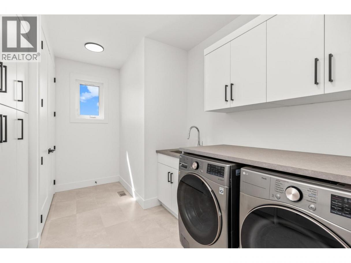 Brand New Walkout Rancher with Legal Suite! Welcome to this stunning new home offering sweeping valley and mountain views. Every detail has been thoughtfully designed — from the custom tile work and chic modern color palette to the smart, open-concept layout. The main floor features a gourmet island kitchen with a gas cooktop, overlooking the Great Room with a unique Hydra fireplace and floor-to-ceiling windows that flood the space with natural light. A spacious laundry room with abundant cabinetry adds everyday convenience. You’ll also find a second bedroom and a stylish powder room on this level, ideal for guests or family. The bright living and dining areas flow seamlessly onto a large covered deck, perfect for entertaining. The elegant primary suite enjoys a gorgeous outlook and features a luxurious ensuite with double sinks, a soaker tub, and an oversized glass and ceramic shower, plus a generous walk-in closet. The lower level includes two additional large bedrooms, a full 5-piece bath, a recreation room, and access to a covered patio. A self-contained legal one-bedroom suite offers flexible options for guests or rental income. Additional highlights include an oversized double garage with an extra-wide driveway, superior insulation and airtight construction, and Energy Step Code 3 compliance (R24 walls and R60 ceilings) for exceptional energy efficiency. Located just 20 minutes to downtown, and 30 minutes to Big White Ski Resort. 10-Year New Home Warranty (id:6769)