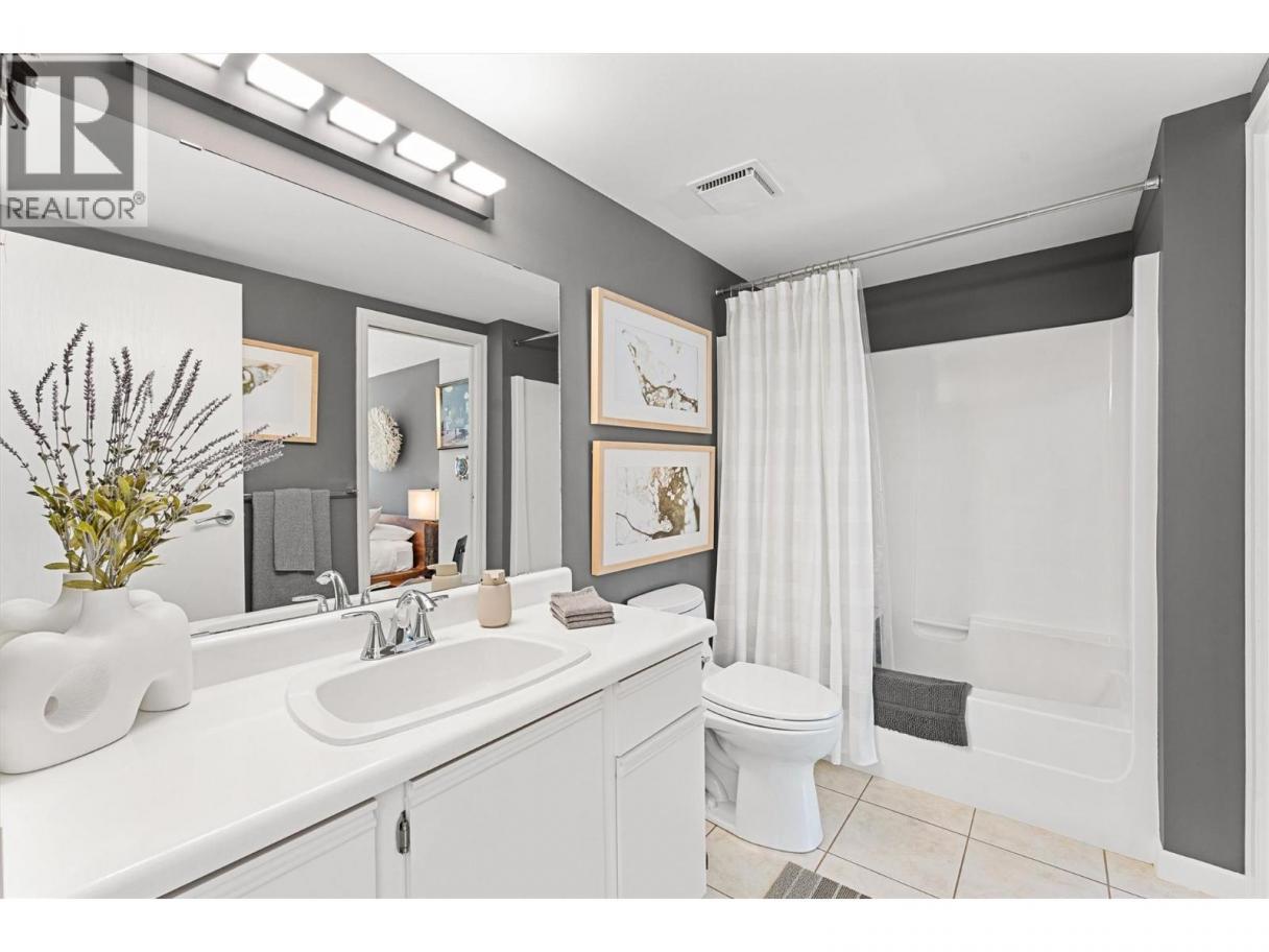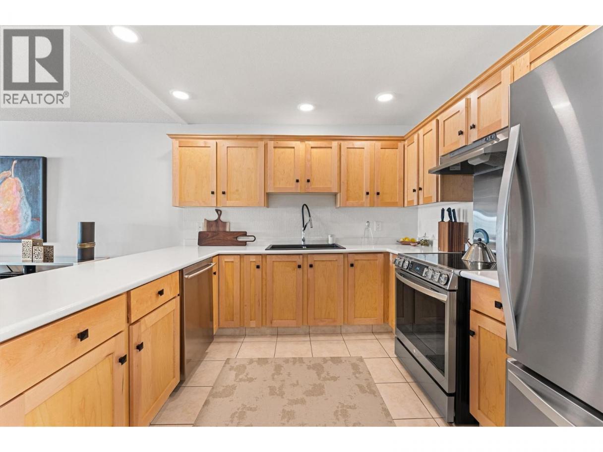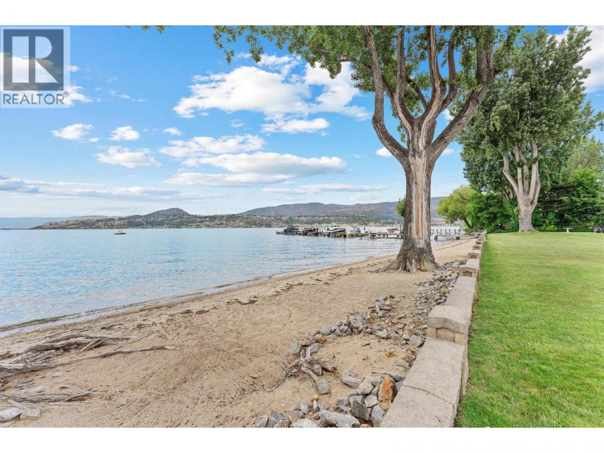 This beautifully maintained waterfront residence offers bright, spacious one-level living in one of Kelowna’s most sought-after communities. Featuring two generous bedrooms and two bathrooms, the home includes a modern maple kitchen with an eating peninsula and adjacent dining area, perfect for entertaining. The living room, complete with a cozy gas fireplace, opens into a sun-drenched flex space through new floor-to-ceiling glass doors, leading to a fully refurbished lakefront patio. The expansive primary bedroom features a walk-through closet and a luxurious 5-piece ensuite with a glass shower and soaking tub. Additional highlights include updated LED recessed lighting, remote-controlled foyer lighting, blackout blinds in the front bedroom, new ceilings in the primary suite, refreshed paint and hardware, a split-unit heater and A/C in the living room, a newer LG slide-in range, and a large in-suite storage closet. The newly renovated laundry room adds to the home’s convenience. Building enhancements include a rubberized entry staircase and landings, fresh exterior paint, and updated front landscaping. Residents enjoy access to a concrete pool and newly tiled hot tub, along with secure underground parking—stall #28 included. Centrally located and within walking distance to amenities, this move-in-ready home blends modern comfort with timeless lakeside charm. (id:6769)