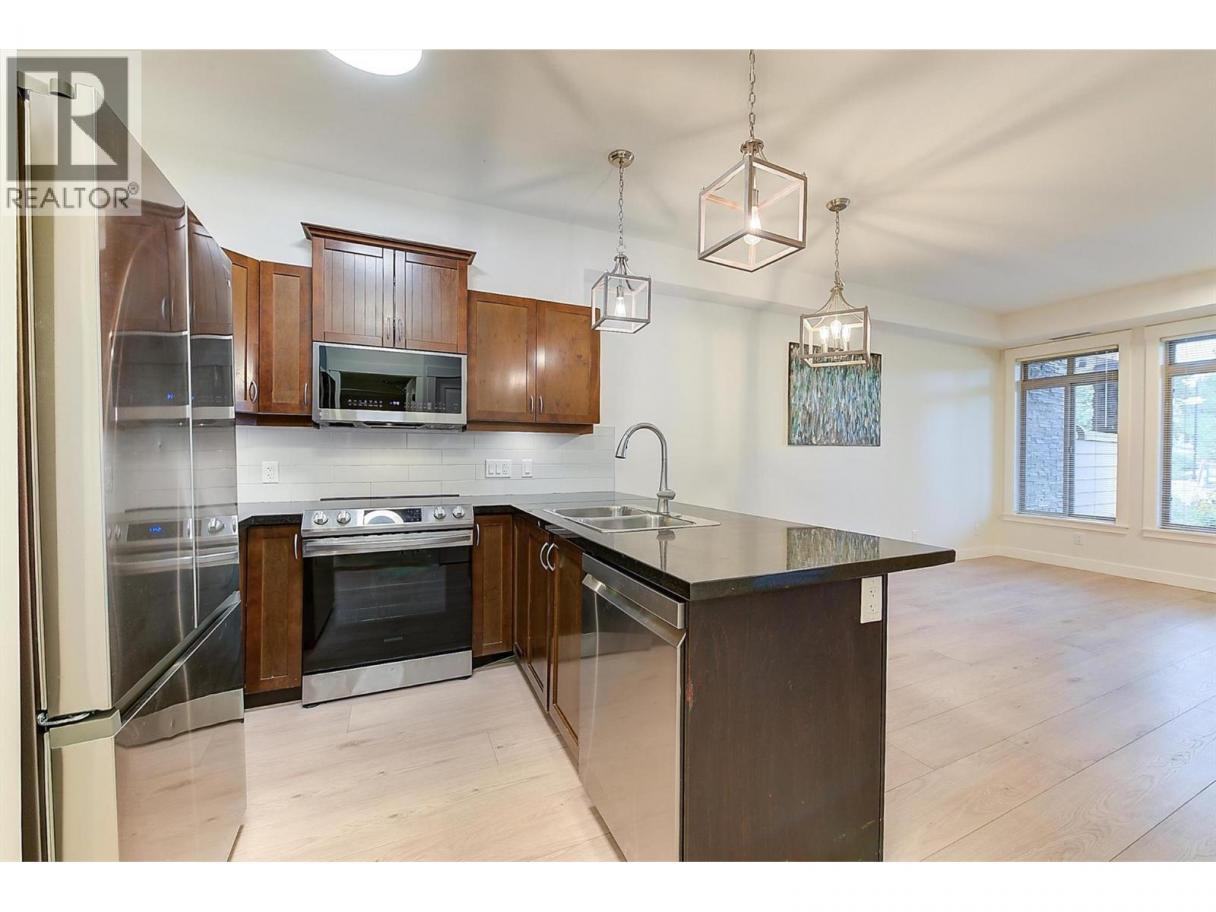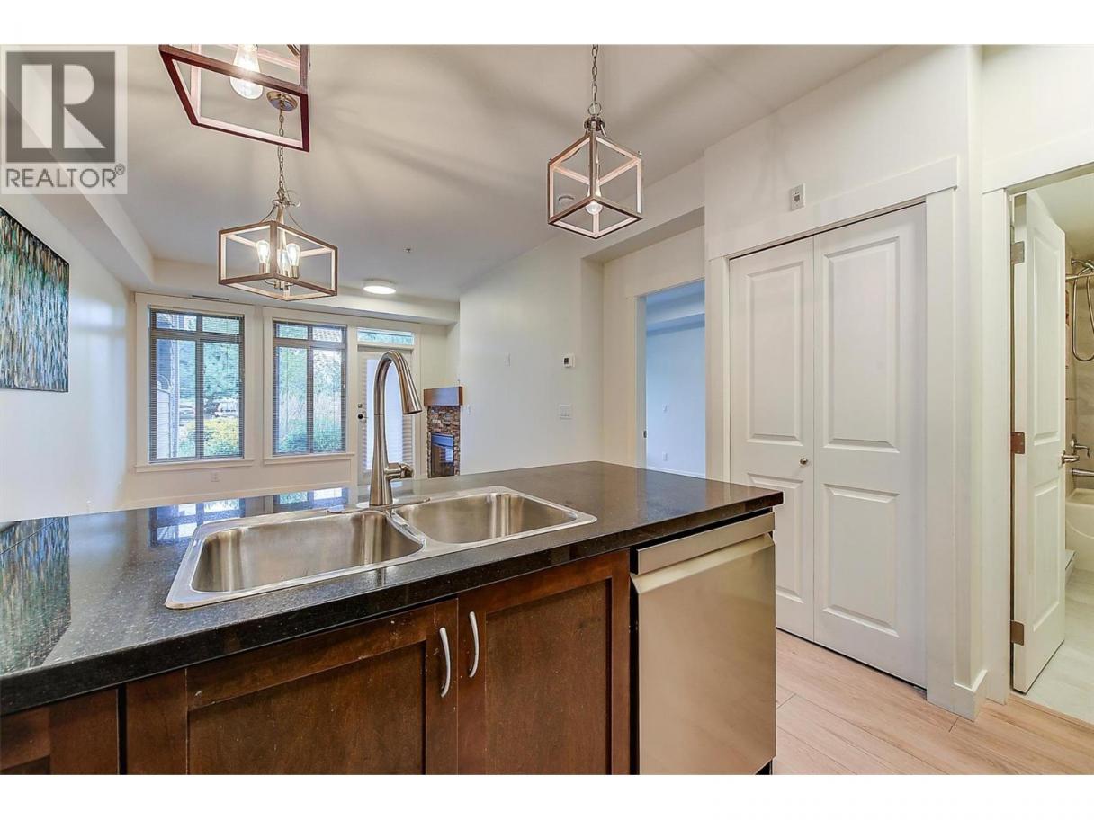 Incredible deal on this beautiful 1 bed, 1 bath executive condo is located in The Aria a condo complex located on Two Eagles Golf Course. You are close to everything you could need or want. This bright 1st-floor unit has an open floor plan, stainless steel appliances, granite counters, breakfast eating bar, lots of cupboard space, a comforting fireplace & freshly painted. Sip your morning coffee or evening glass of wine on your large 9X16 ft covered balcony overlooking Two Eagles Golf Course. The strata fee is $260.68 & covers property management, hot water, garbage, sewer, & water. The monthly lease fee is $171.50. This home is an excellent investment opportunity, a downsize option, great for the first-time buyer, or for your summer getaway. The unit has had recent upgrades to paint, flooring and lighting. Rentals & pets are allowed with restrictions. Also included are secure underground parking & a private storage locker (id:6769)