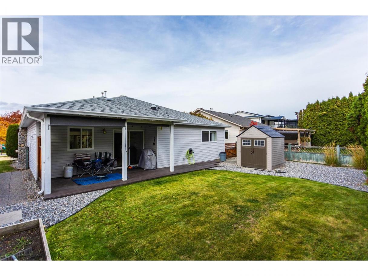 Welcome to the desirable Country Rhodes family community!!!! This spacious rancher features a bright kitchen with nook, open flow dining and living room areas great for entertaining, large windows which bring in lots of natural light. Two larger bedrooms, laundry room and two bathrooms... all on one main floor living!! Sliding glass doors welcome you to your private patio area with fully fenced landscaped back yard. Room for garden area and storage shed. Central air, gas fireplace, covered front porch overlooking the large park area, 4ft full basement crawl space, gutters, roof, appliances, garage door, washer/dryer, water softener...you name it!!.. and double garage. Amenities include inground outdoor pool, large park, playground, clubhouse with kitchen great for those large gatherings. RV/boat parking based on availability. Just minutes to Kelowna International Airport, UBCO, golf courses, Kangaroo farm, shopping, schools and so much more! No age restrictions. 2 pets (dogs or cats) per household - no size restrictions. A must see!! (id:6769)