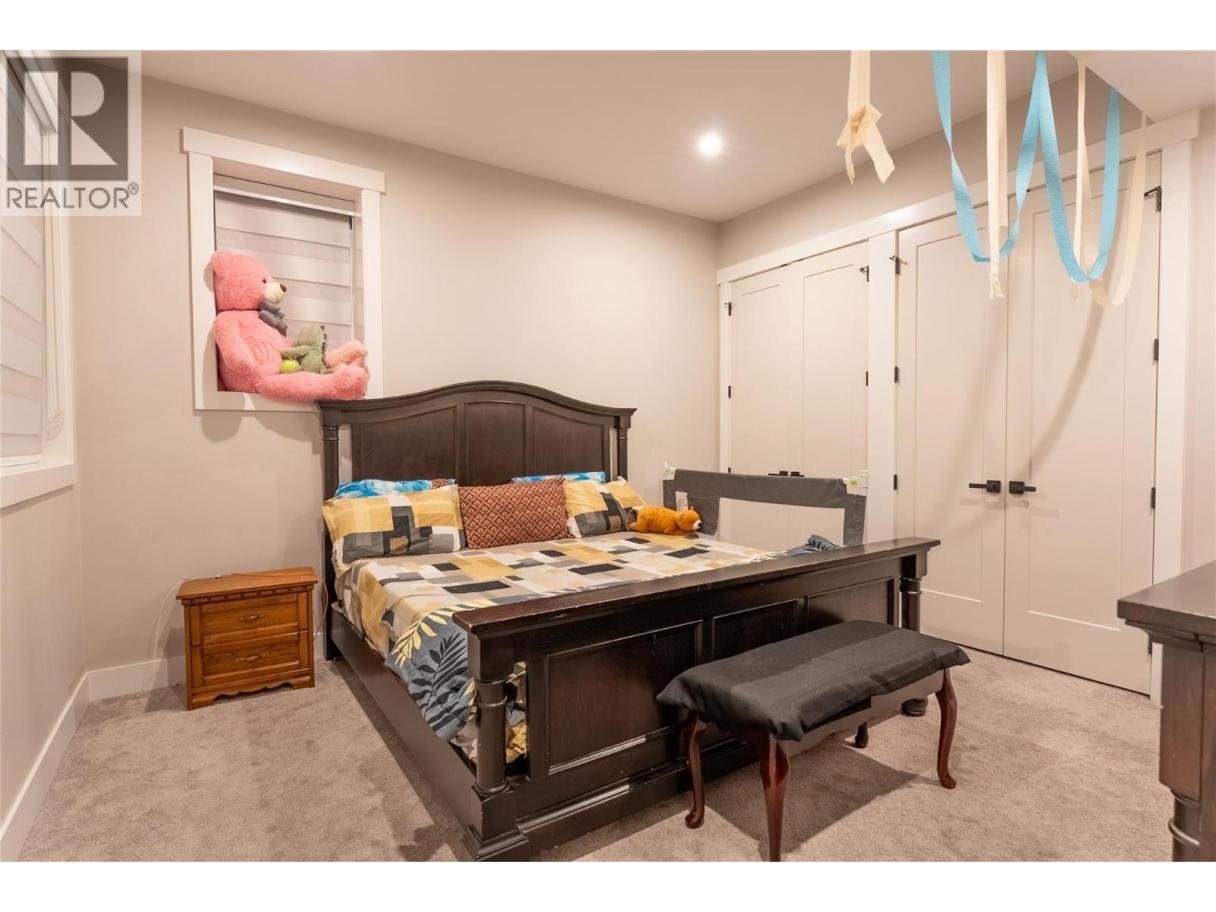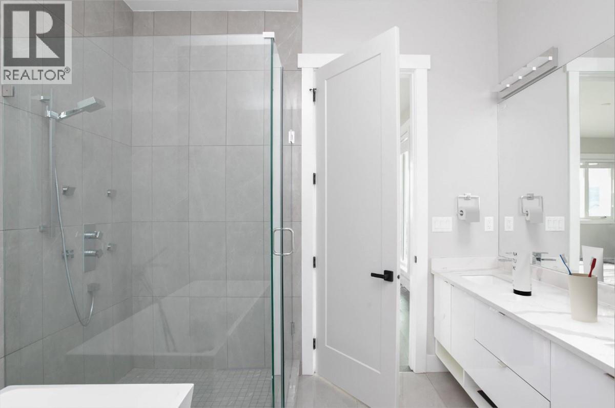 Modern 6-bed, 6-bath home suited home in Black Mountain's private Mine Hill Lane! The main floor of this remarkable home features an airy open-concept layout, grand vaulted ceilings, large picture windows featuring stunning views sweeping East of Kirschner mountain to Okanagan Lake, cozy fireplace, elegant kitchen , large island with bar seating, beautiful quartz counters, tons of cabinets, spacious master suite abundance of south exposure windows with doors leading to the and wrap around patio, spa-like ensuite with glass shower, free-standing soaker tub, well-appointed main bathroom, office and extra bedrooms. 3-car garage & access to the large covered patio with glass railing to showcase those remarkable South and West facing views. The self-contained, legal lower-level suite is every bit as stunning as the main floors featuring 1-bedroom, 1-bathroom, laundry, access to yard & covered patio. There is also an additional 2-bedroom nanny suite downstairs for multi-generational living! (id:6769)