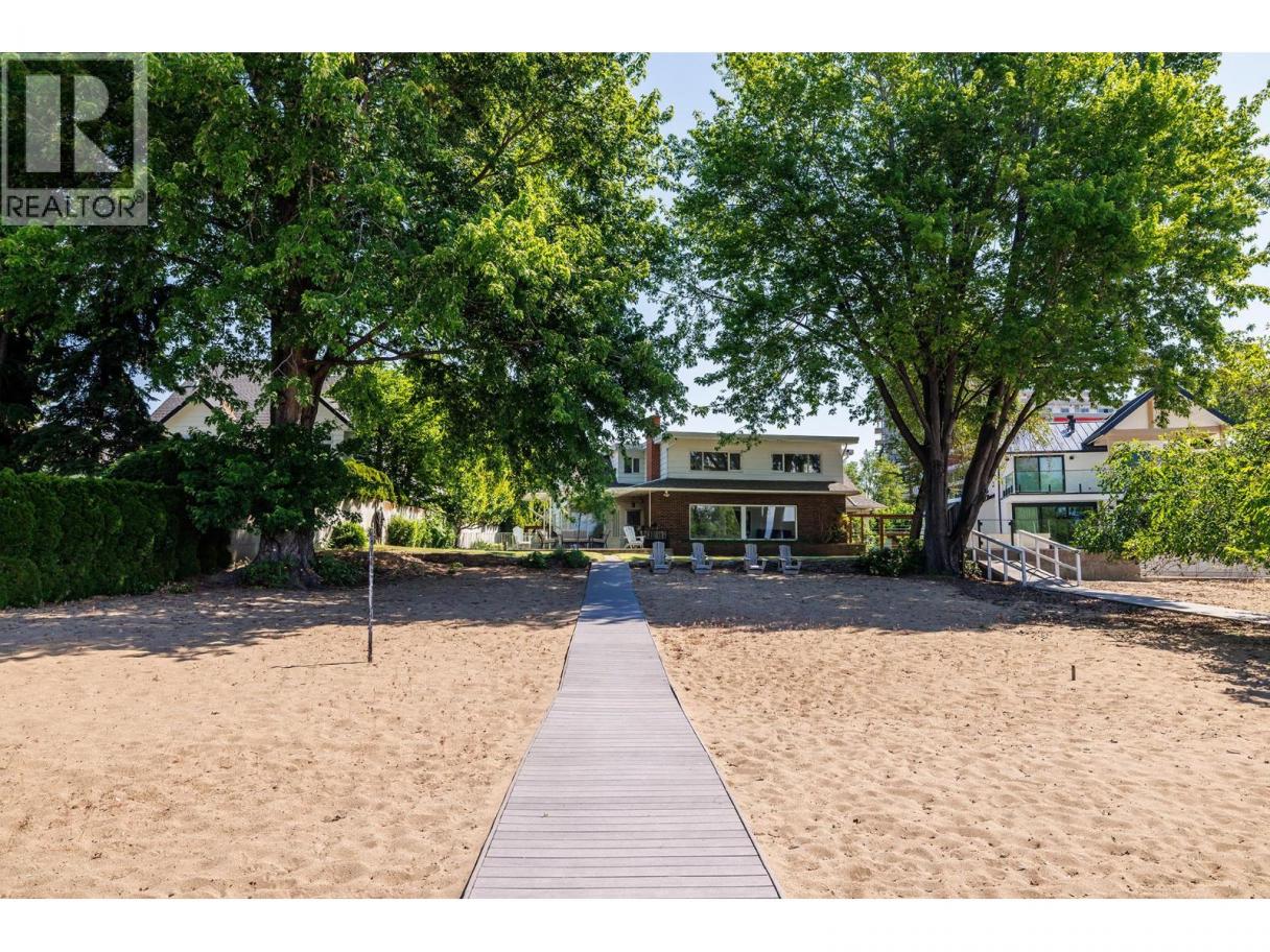 Prime lakeshore living in Kelowna's Lower Mission. A rare offering of level lakeshore with spectacular ""Hawaiian"" golden sand in one of Kelowna’s most coveted neighborhoods. Set on 0.46 acres, this gated estate captures breathtaking lake, mountain, and city views with coveted southwest exposure. Designed for effortless indoor-outdoor living, the generous lakeside patio with a fireplace is perfect for evening entertaining. The spacious living and dining rooms showcase uninterrupted lake views, while a cozy family room offers serene garden vistas. The main level features a luxurious primary bed with ensuite, complemented by 4 guest beds upstairs, ideal for hosting family and friends. Enjoy the best of Okanagan living with a dock featuring composite decking and a boat lift, a 768 sq. ft. detached garage, and RV parking. Mature landscaping, lush gardens, and a private, fenced setting create a true oasis just steps from the vibrant Pandosy Village. An unparalleled opportunity to live the ultimate beach house lifestyle, walkable to shops, dining, schools, and amenities. (id:6769)