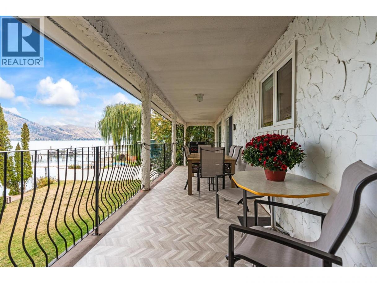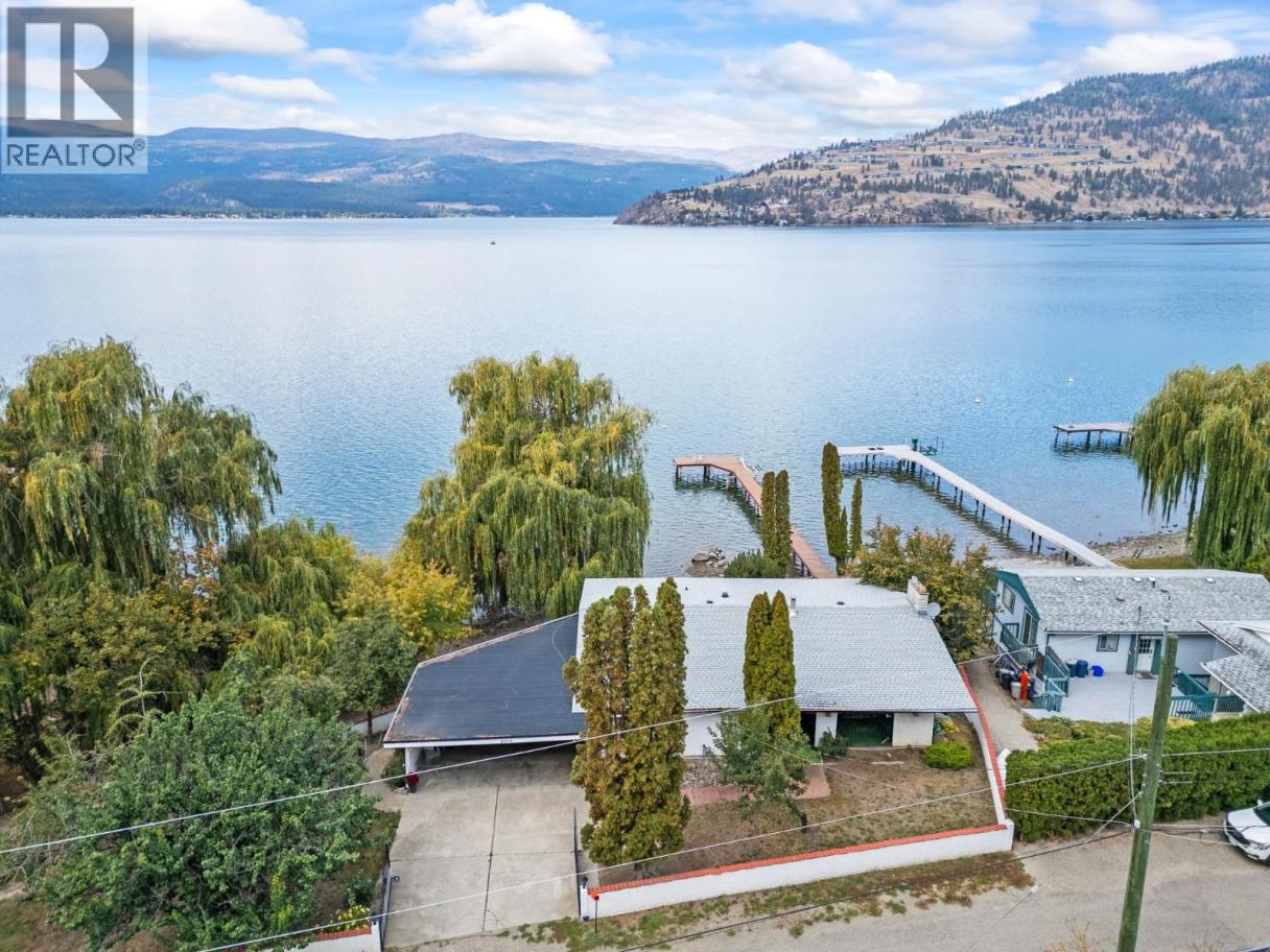 Lakefront Living Like No Other! Tucked away from the bustle of Okanagan Landing Road, this unique 4-bedroom, 3-bathroom lakefront home offers the ultimate Okanagan lifestyle. Whether you’re seeking a serene vacation retreat, long term enjoyment or a long-term investment with future development potential, this property is a rare find on Peters Road. The main level features a bright and open kitchen, living, and dining area that seamlessly flows onto a covered deck—perfect for entertaining while taking in full lake views. The primary bedroom with ensuite, an additional bedroom nearby, and a main bath complete this level. The walkout basement offers two additional bedrooms, suite potential or flexible living space, currently set up with additional sleeping quarters with media area, and opens to another partially covered deck with panoramic lake views. Enjoy the yard, ideal for lawn games and outdoor fun. Additional highlights include a double carport, fenced yard, dock with boat lift, and multiple outdoor spaces to soak in the stunning scenery. This is a once-in-a-lifetime opportunity to own a private slice of Okanagan lakefront paradise. (id:6769)