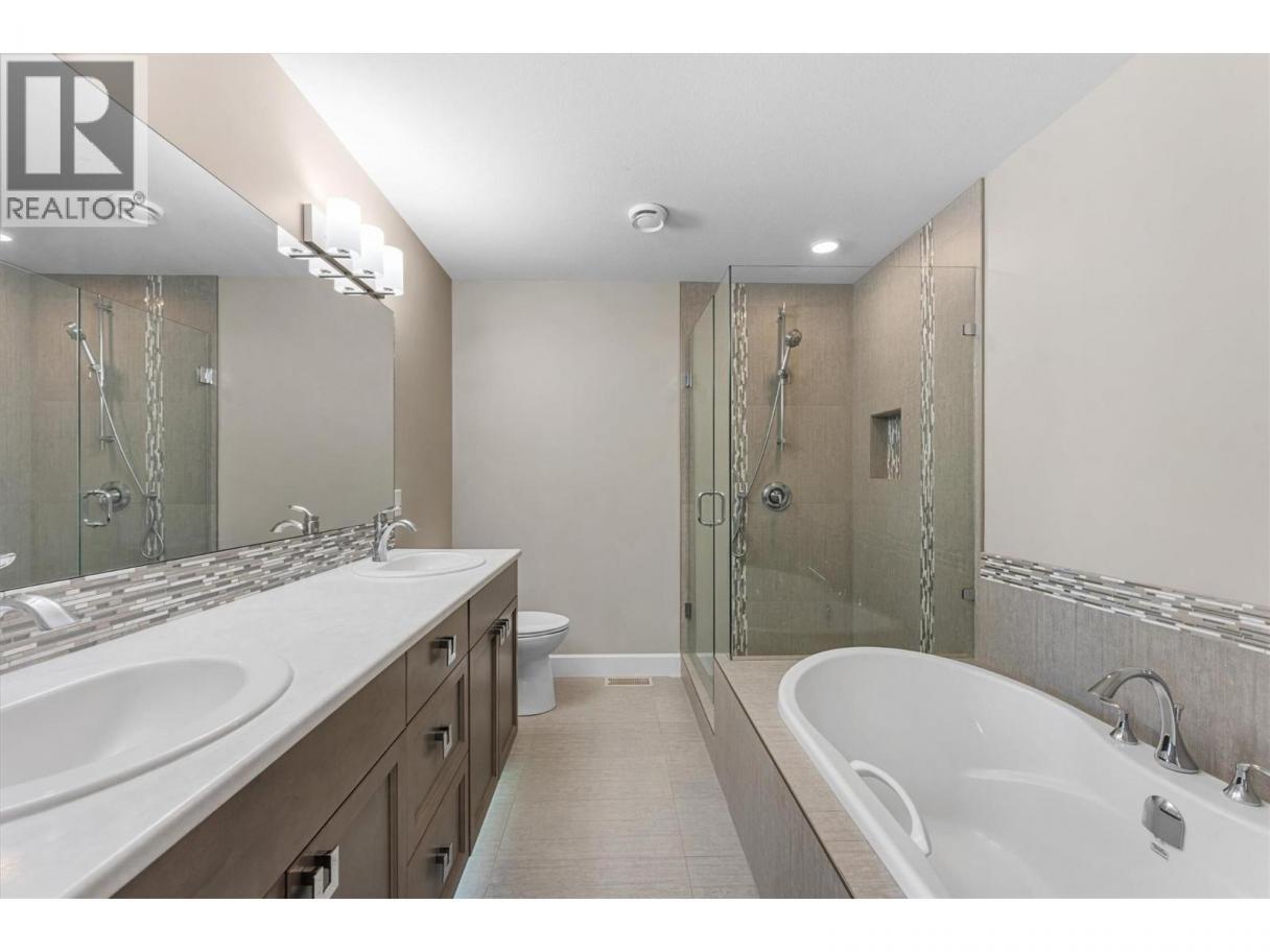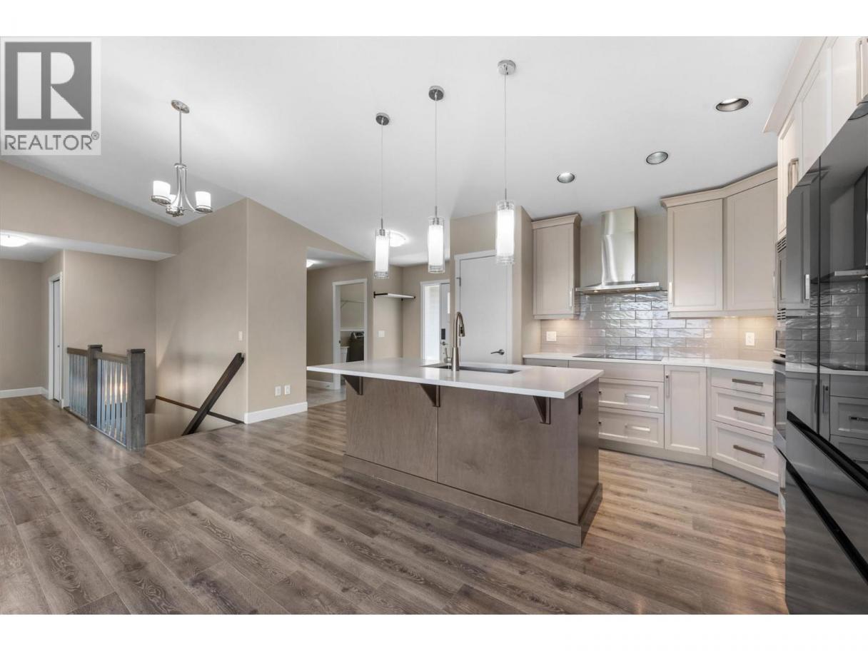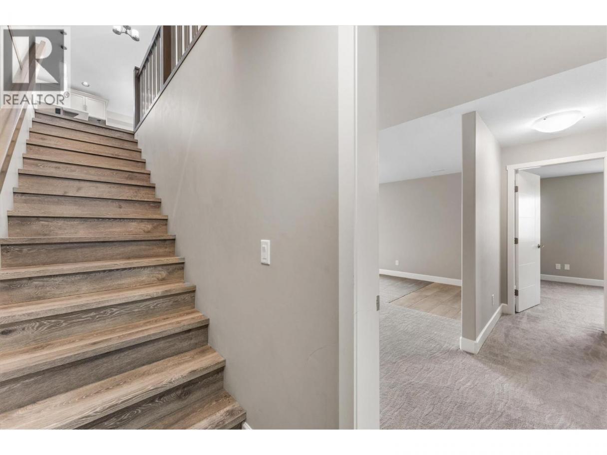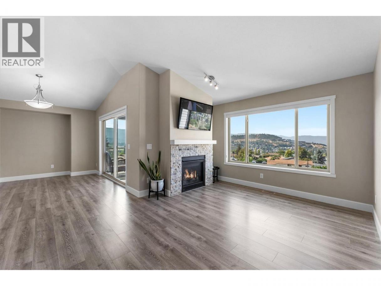 This immaculate 5-bedroom, 3-bath rancher has sweeping valley views and a great layout. This well maintained home has an open concept main level with a bright, modern kitchen featuring quartz countertops, custom cabinetry, under cabinet lighting, and sleek black & stainless appliances. The living area has vaulted ceilings, a tile-accented gas fireplace, and oversized windows that frame the scenic Black Mountain hillside. Step out onto the covered deck, perfect for morning coffee or relaxing at sunset. The large primary bedroom includes a walk-in closet and an ensuite with a soaker tub, double vanity, and glass shower. Downstairs, you’ll find two additional bedrooms, a large rec room, full bath, and a walkout patio. The double garage, ample storage, and low-maintenance landscaping add practical appeal. Bare land strata fees are only $80/month. This move-in-ready home is a rare find: modern style, priced under $1 million, and minutes from parks, schools, golf, and urban conveniences. (id:6769)
