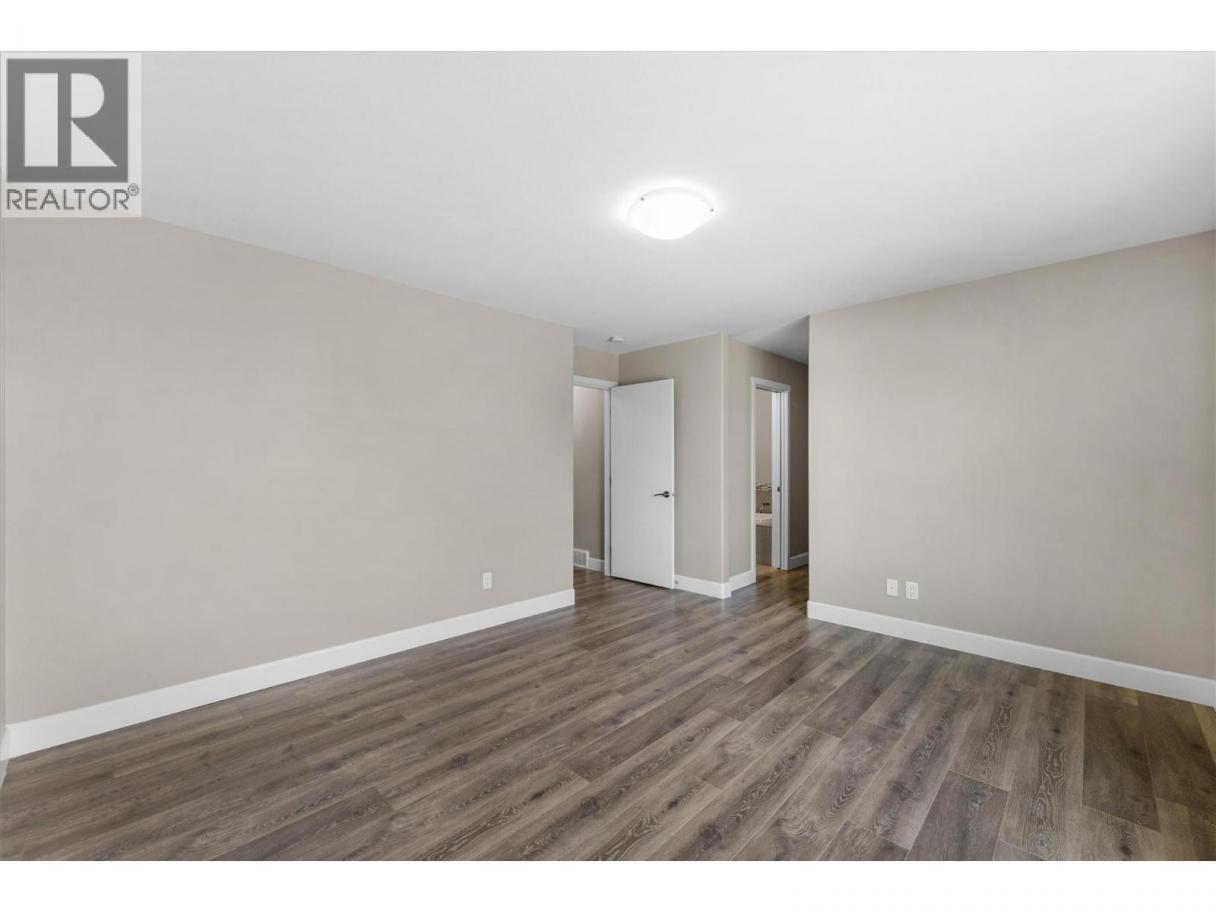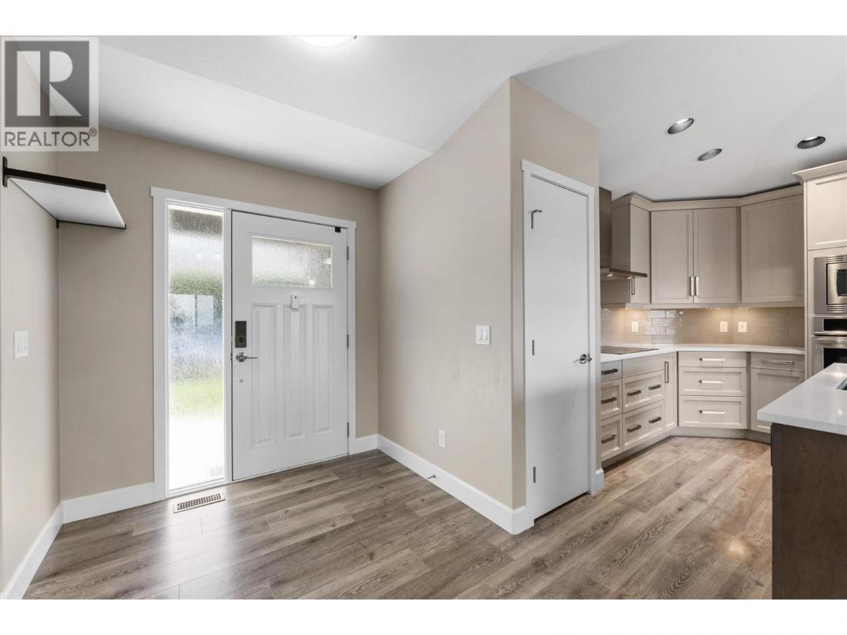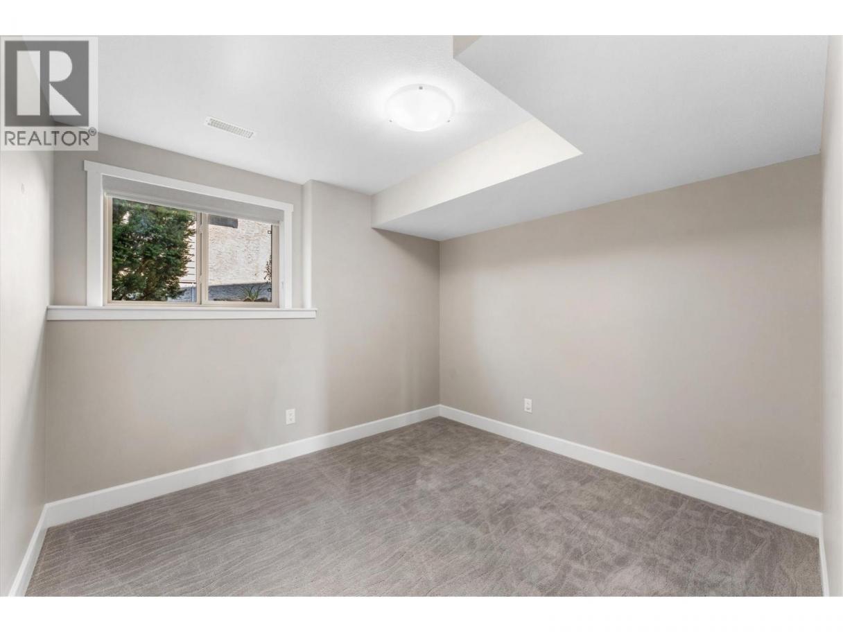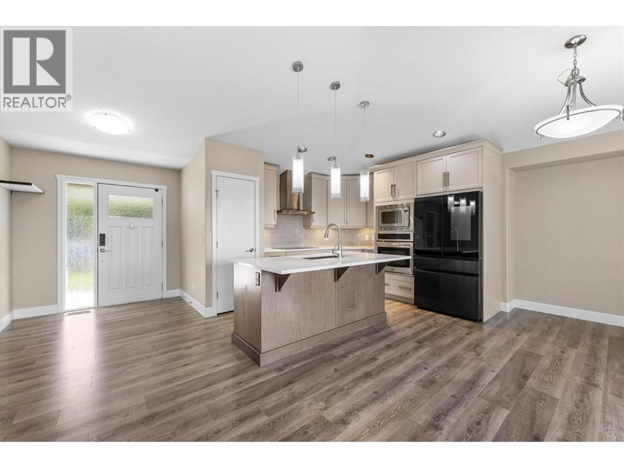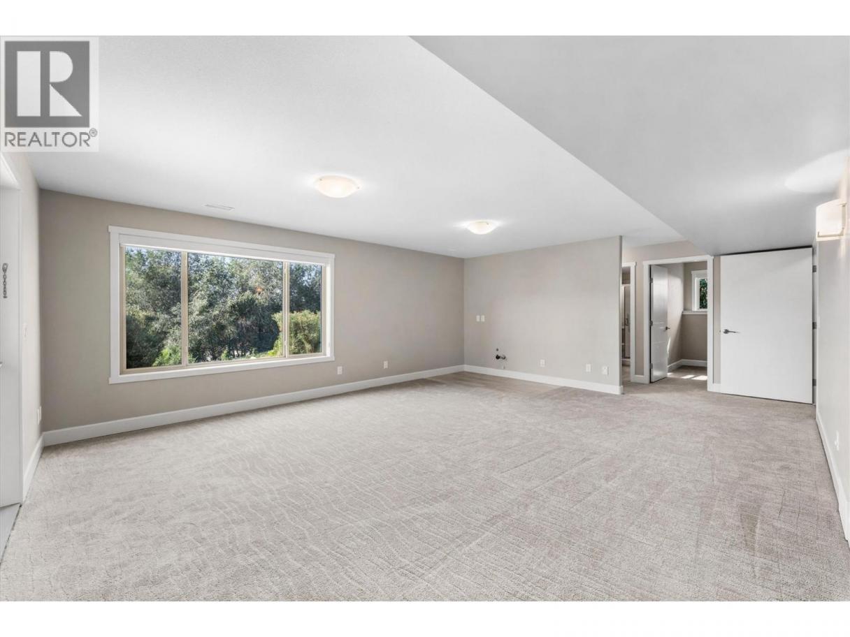 This immaculate 5-bedroom, 3-bath rancher has sweeping valley views and a great layout. This well maintained home has an open concept main level with a bright, modern kitchen featuring quartz countertops, custom cabinetry, under cabinet lighting, and sleek black & stainless appliances. The living area has vaulted ceilings, a tile-accented gas fireplace, and oversized windows that frame the scenic Black Mountain hillside. Step out onto the covered deck, perfect for morning coffee or relaxing at sunset. The large primary bedroom includes a walk-in closet and an ensuite with a soaker tub, double vanity, and glass shower. Downstairs, you’ll find two additional bedrooms, a large rec room, full bath, and a walkout patio. The double garage, ample storage, and low-maintenance landscaping add practical appeal. Bare land strata fees are only $80/month. This move-in-ready home is a rare find: modern style, priced under $1 million, and minutes from parks, schools, golf, and urban conveniences. (id:6769)