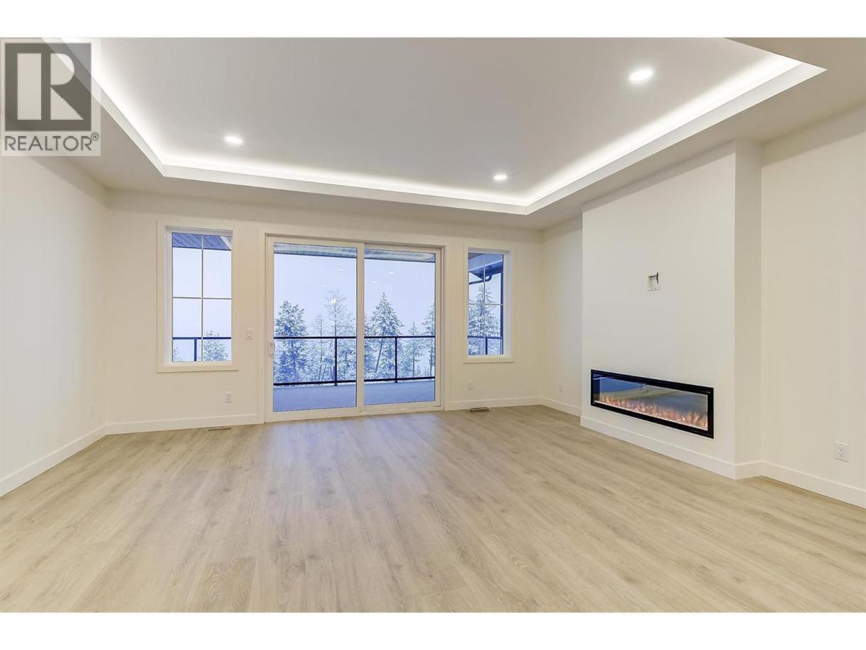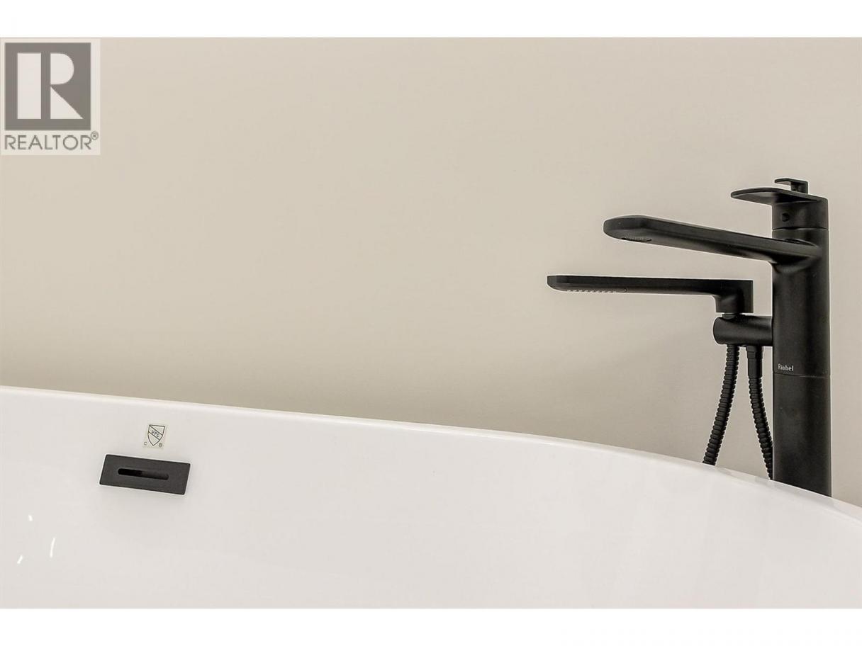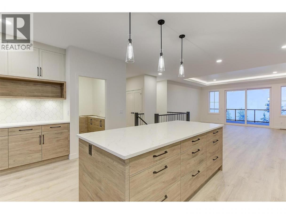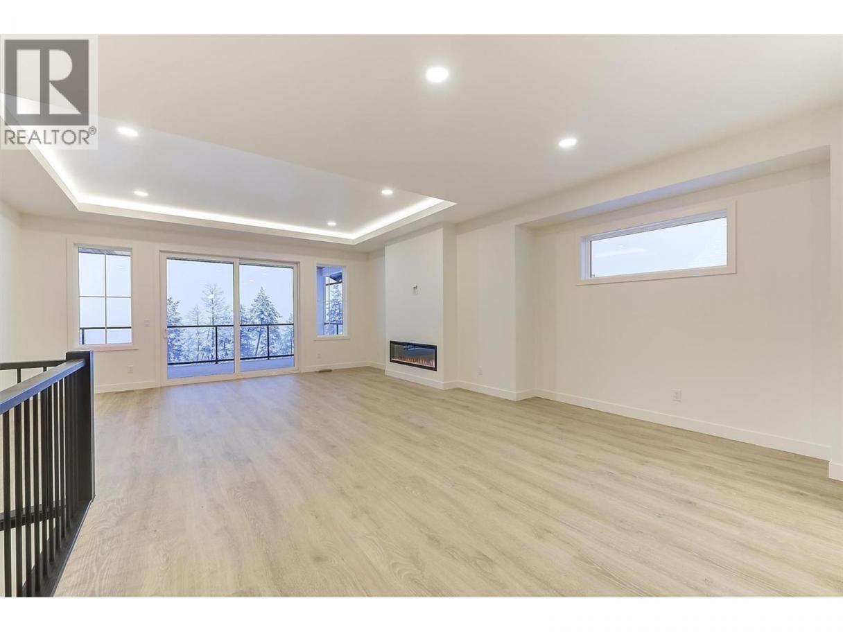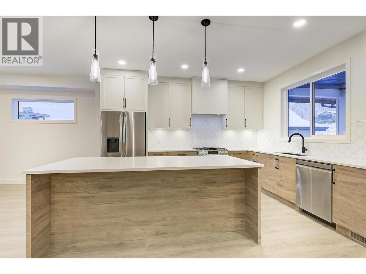 Come experience this quality Knorr Enterprises LTD. home on Kirschner Mountain with mountain & valley views. This stylish home has 5 bedrooms + den & 4 bathrooms. The covered veranda opens to an entryway & ground floor den w ensuite. A bright 2-bedroom Legal Suite w separate laundry, appliances & covered patio. The main floor offers a bright & open living/dining room w linear fireplace, ""tray"" ceiling w custom lighting & large windows/sliding door to take in the views. There is a large covered deck w wood ceiling. The kitchen offers Quartz counters, two-tone cabinets, an oversized island, a butler pantry, plus a kitchen-bar wall area + stainless appliances & gas range & a second covered deck w gas line. 2 carpeted bedrooms, linen closet & 4-piece main bathroom, a full laundry room w cupboards & sink on this level. The primary bedroom is bright & open w large windows for the views. A windowed walk-in closet & a 5-piece ensuite w custom tiled shower, heated floors, double vanity sink, quartz counter & stand-alone tub make up the primary oasis. The home offers an oversized double garage complete w utility room. The EV charger & central vacuum are both roughed-in. The home comes w Hardie board & brick exterior, landscaping, quality laminate floors throughout & carpet in the main home bedrooms & stairs. Hot water on demand, 200 amps CATT 5, lots of storage. Backs onto a park & is close to Black Mountain Elementary & BM Golf Course. Price +GST. Make this beautiful house your home. (id:6769)