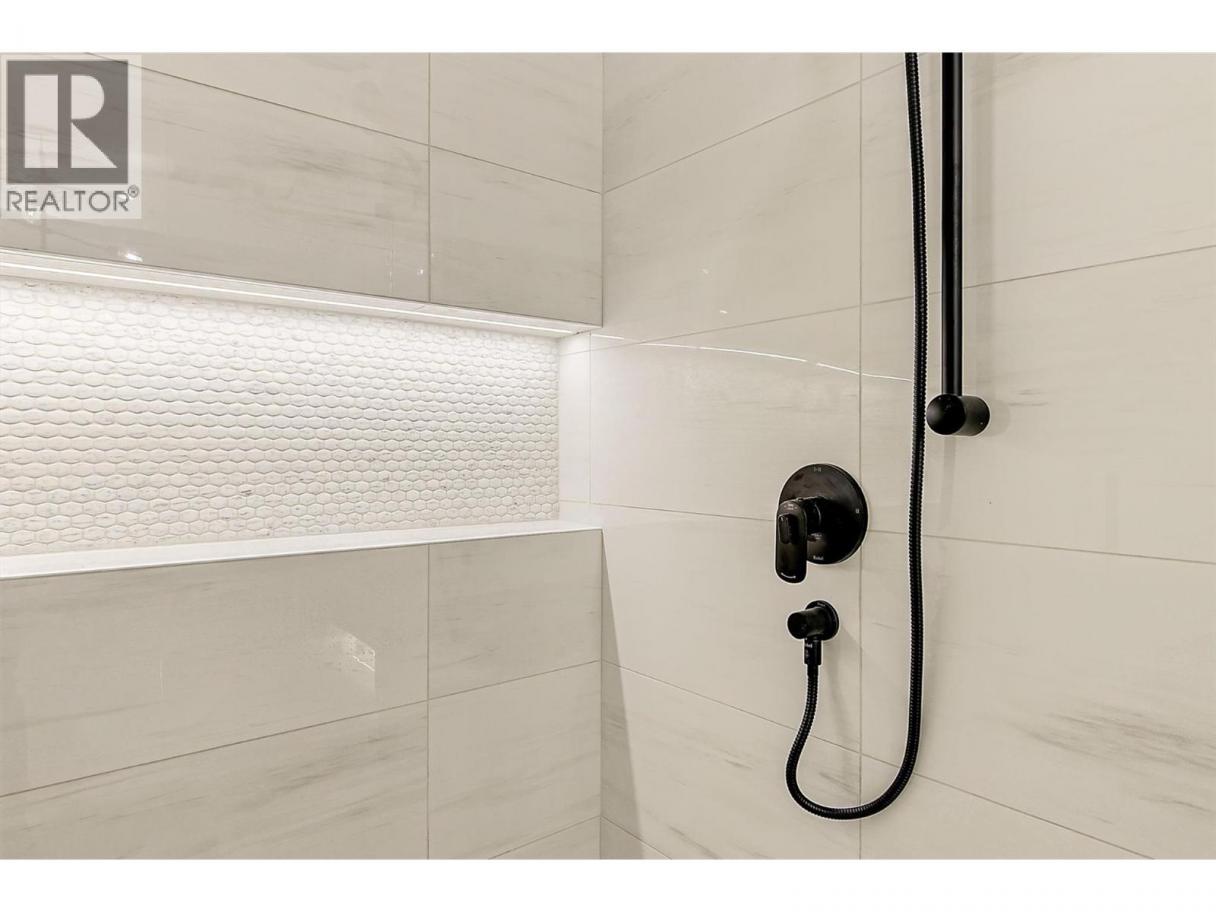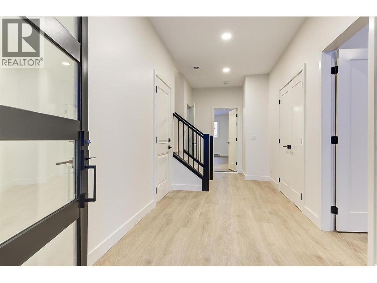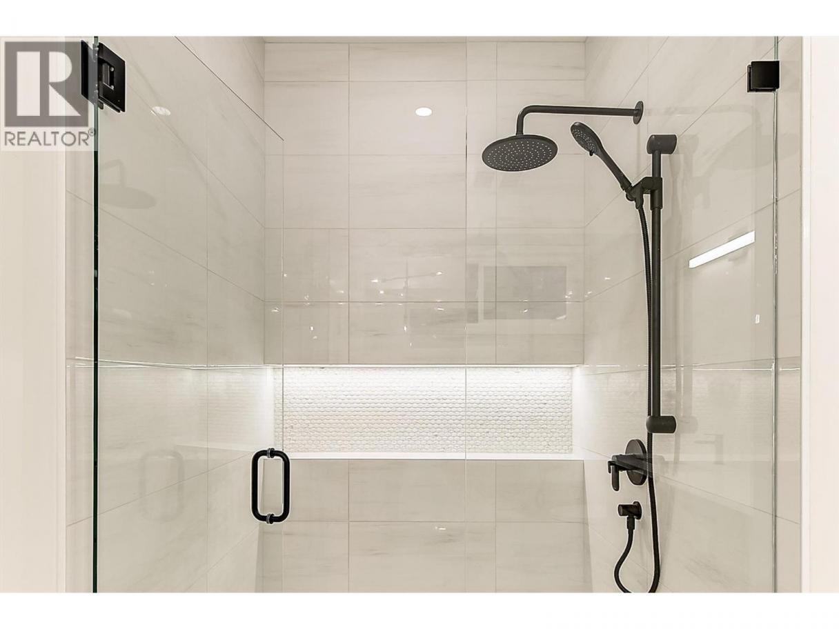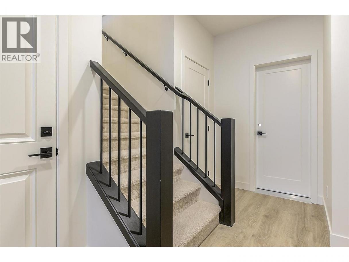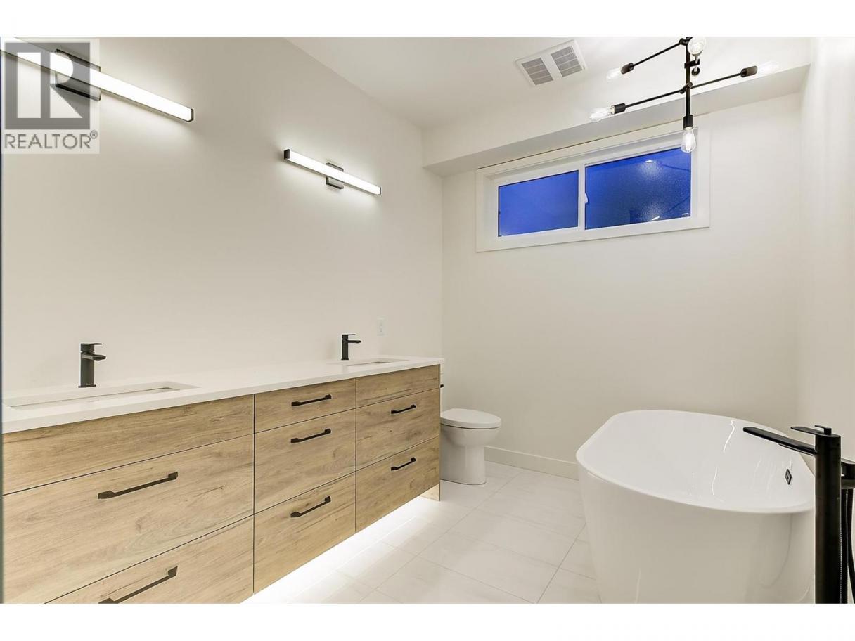 Come experience this quality Knorr Enterprises LTD. home on Kirschner Mountain with mountain & valley views. This stylish home has 5 bedrooms + den & 4 bathrooms. The covered veranda opens to an entryway & ground floor den w ensuite. A bright 2-bedroom Legal Suite w separate laundry, appliances & covered patio. The main floor offers a bright & open living/dining room w linear fireplace, ""tray"" ceiling w custom lighting & large windows/sliding door to take in the views. There is a large covered deck w wood ceiling. The kitchen offers Quartz counters, two-tone cabinets, an oversized island, a butler pantry, plus a kitchen-bar wall area + stainless appliances & gas range & a second covered deck w gas line. 2 carpeted bedrooms, linen closet & 4-piece main bathroom, a full laundry room w cupboards & sink on this level. The primary bedroom is bright & open w large windows for the views. A windowed walk-in closet & a 5-piece ensuite w custom tiled shower, heated floors, double vanity sink, quartz counter & stand-alone tub make up the primary oasis. The home offers an oversized double garage complete w utility room. The EV charger & central vacuum are both roughed-in. The home comes w Hardie board & brick exterior, landscaping, quality laminate floors throughout & carpet in the main home bedrooms & stairs. Hot water on demand, 200 amps CATT 5, lots of storage. Backs onto a park & is close to Black Mountain Elementary & BM Golf Course. Price +GST. Make this beautiful house your home. (id:6769)