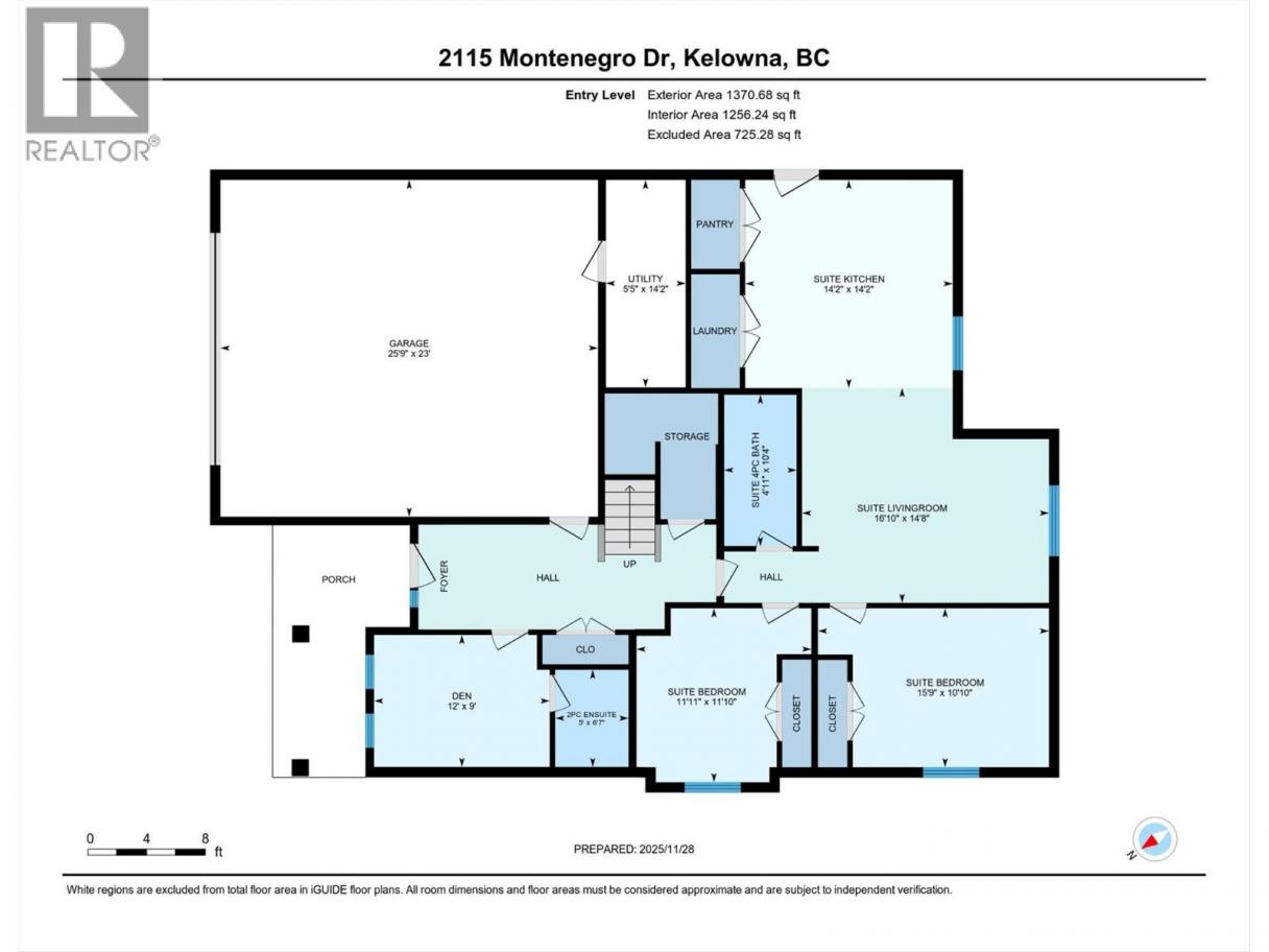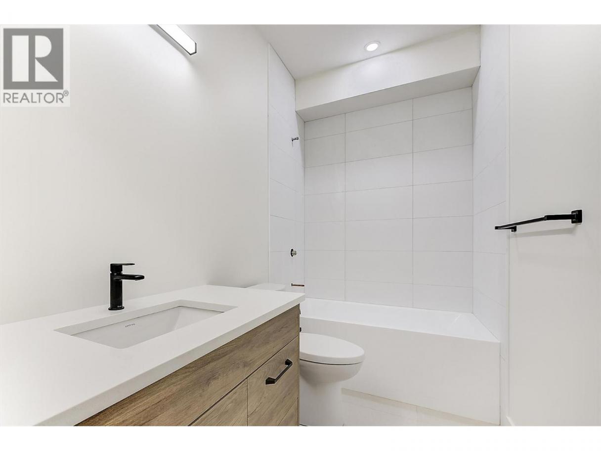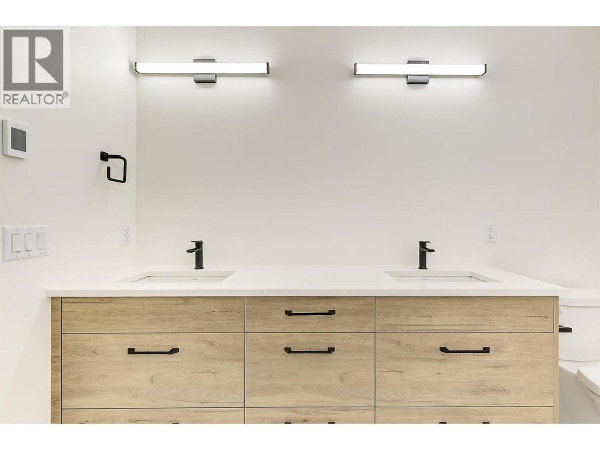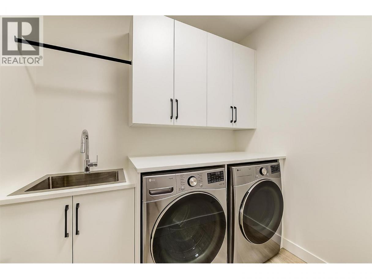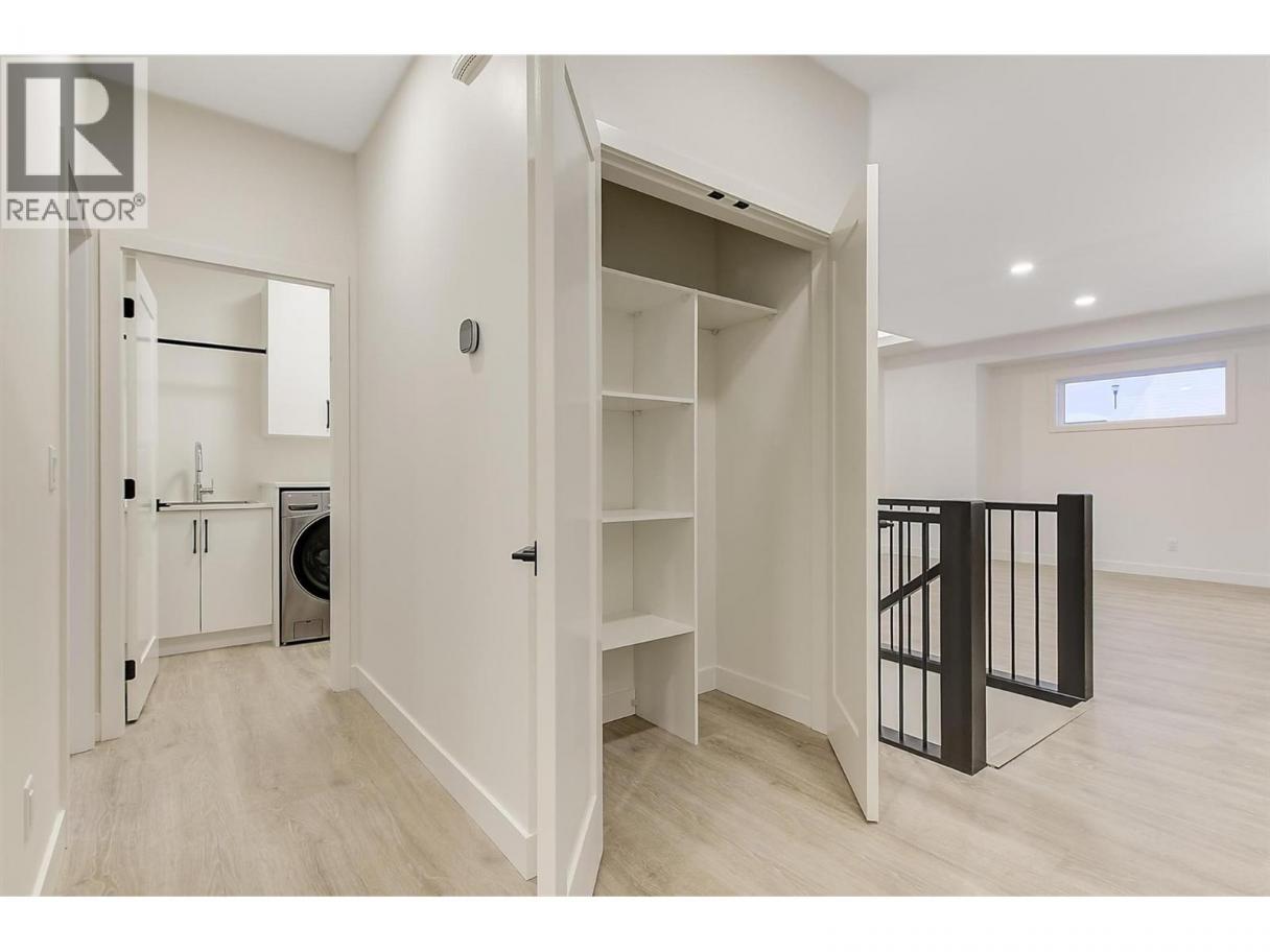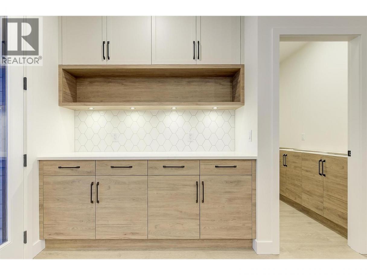 Come experience this quality Knorr Enterprises LTD. home on Kirschner Mountain with mountain & valley views. This stylish home has 5 bedrooms + den & 4 bathrooms. The covered veranda opens to an entryway & ground floor den w ensuite. A bright 2-bedroom Legal Suite w separate laundry, appliances & covered patio. The main floor offers a bright & open living/dining room w linear fireplace, ""tray"" ceiling w custom lighting & large windows/sliding door to take in the views. There is a large covered deck w wood ceiling. The kitchen offers Quartz counters, two-tone cabinets, an oversized island, a butler pantry, plus a kitchen-bar wall area + stainless appliances & gas range & a second covered deck w gas line. 2 carpeted bedrooms, linen closet & 4-piece main bathroom, a full laundry room w cupboards & sink on this level. The primary bedroom is bright & open w large windows for the views. A windowed walk-in closet & a 5-piece ensuite w custom tiled shower, heated floors, double vanity sink, quartz counter & stand-alone tub make up the primary oasis. The home offers an oversized double garage complete w utility room. The EV charger & central vacuum are both roughed-in. The home comes w Hardie board & brick exterior, landscaping, quality laminate floors throughout & carpet in the main home bedrooms & stairs. Hot water on demand, 200 amps CATT 5, lots of storage. Backs onto a park & is close to Black Mountain Elementary & BM Golf Course. Price +GST. Make this beautiful house your home. (id:6769)