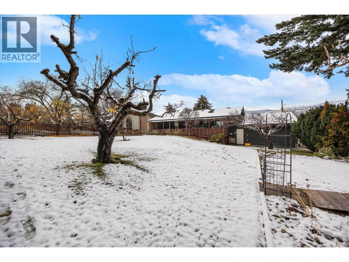 Welcome to this warm and inviting 4-bedroom, 3-bathroom home located in one of the most sought-after, family-oriented neighbourhoods just moments from Okanagan Lake and listed nearly $100,000 under assessed value. This property offers an incredible opportunity to enjoy an exceptional location with endless potential to update and personalize to your taste. The layout is highly functional, featuring two bedrooms on the main level, a large living area with a charming wood-burning fireplace, and generous storage throughout, including a spacious cold room. But it’s the backyard that truly sets this home apart. Extremely private and beautifully landscaped, the outdoor space is framed by mature cedars and filled with an abundance of fruit trees, lush gardens, and thoughtful irrigation throughout. With so much natural produce at your fingertips, you may never need to visit the farmers market again. A large sun deck overlooks the yard, creating the perfect setting for morning coffee, summer dinners, or quiet evenings enjoying your picturesque backyard oasis. Additional highlights include a large garage, tons of parking, room for recreational vehicles, and ample storage options for busy families or hobbyists. This is a rare opportunity to secure a property in an incredible location with a spectacular backyard—offering both immediate enjoyment and long-term potential to personalize the home of your dreams. (id:6769)