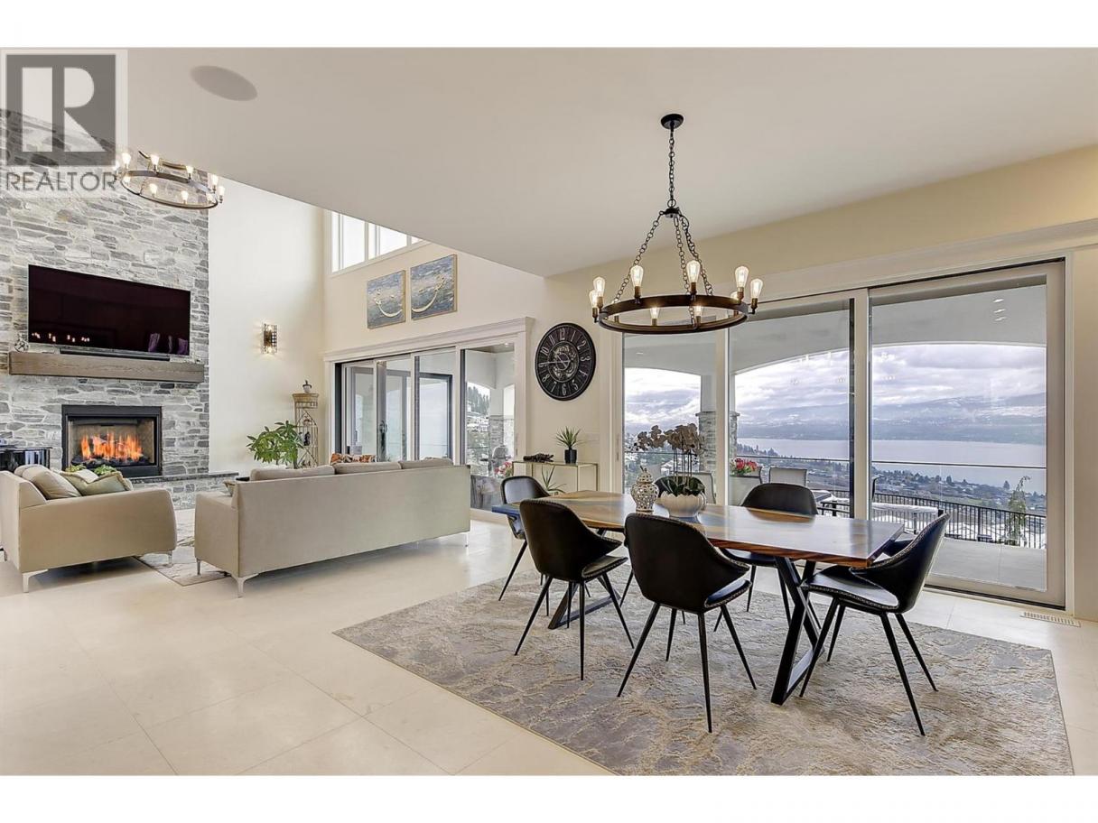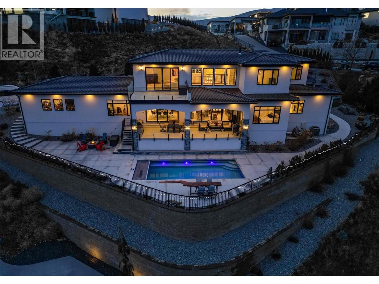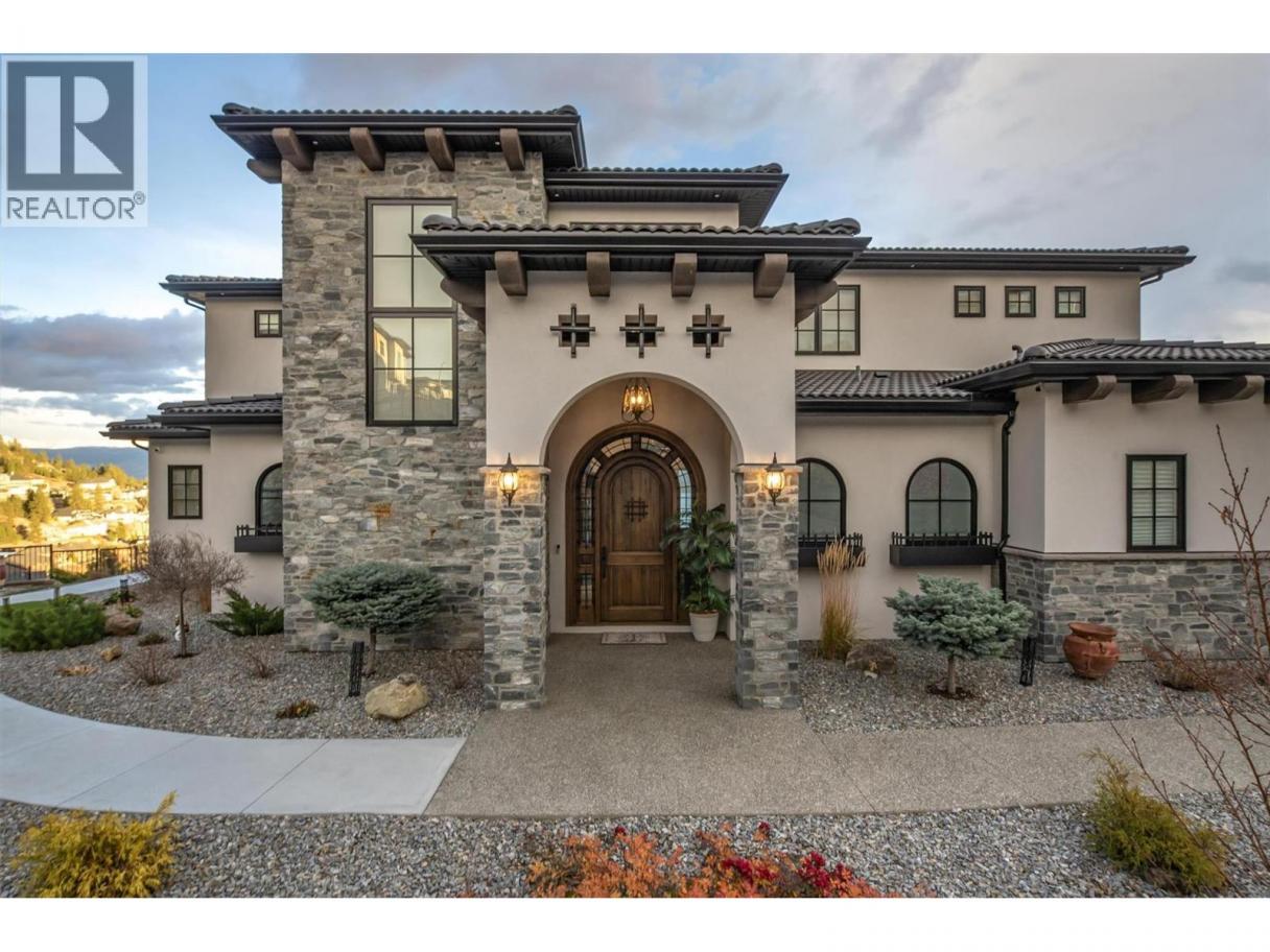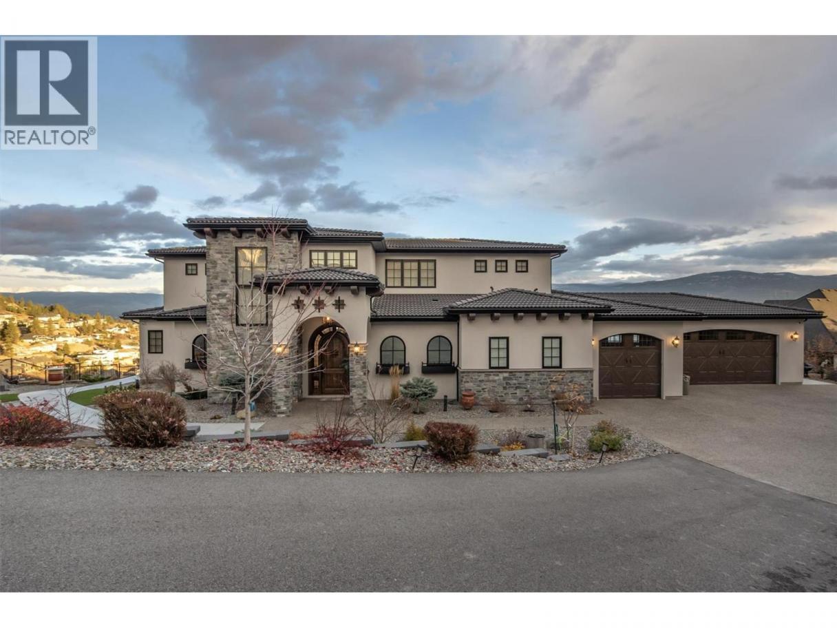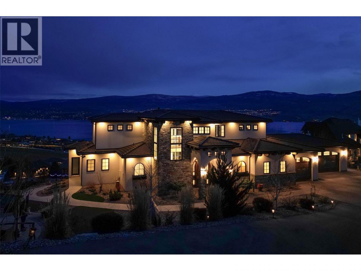 Nestled within the exclusive Vineyard View estates lies a rare gem, a meticulously crafted mini estate with mesmerizing lake and city views. No expense was spared in achieving the highest standards of quality for both the interior & exterior. Magnificent arched wooden front door gives access to the main living area which offers exquisite imported natural limestone tiles that flow seamlessly throughout, complemented by matching solid slab stair treads. The main floor has a luxurious primary suite which is designed to take full advantage of the stunning views. The exquisite kitchen features stunning titanium granite & high end appliances with custom hood fan. Great room offers an open ceiling with elegant details and natural stone gas fireplace. Floor-to-ceiling windows in both the great room and dining area provide breathtaking 180-degree views of the lake & city. Main floor also offers an office, guest powder rm & laundry facilities. The upper level offers 2 guest bedrooms, a full bath and a spacious family rm with access to an upper sundeck, all offering spectacular views of the lake and city. Oversized covered sundeck with tile floors, ceiling heaters and a built-in BBQ. Oversized triple garage with epoxy flooring with access to the mudroom with built-ins, large pantry. 6' crawl space w/stair access. Gated property offering ultimate privacy & magnificent landscaping w/multiple outdoor seating areas. Cozy fire pit, pool w/auto cover & pool bath.Tile roof, plenty of open pkg. (id:6769)