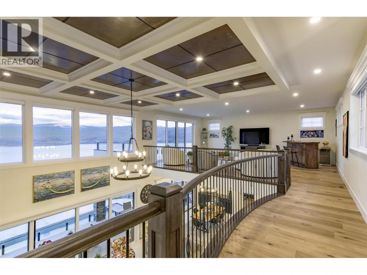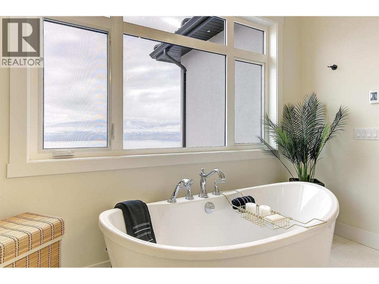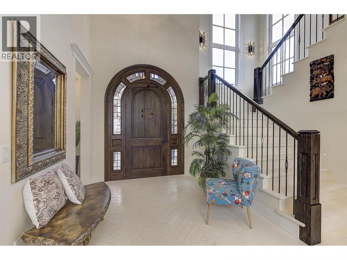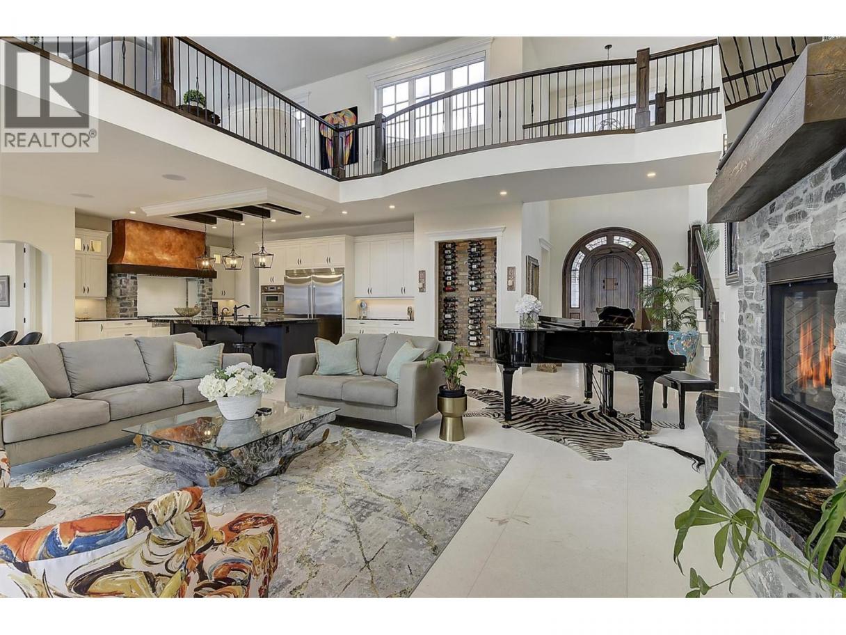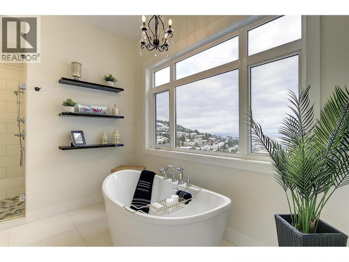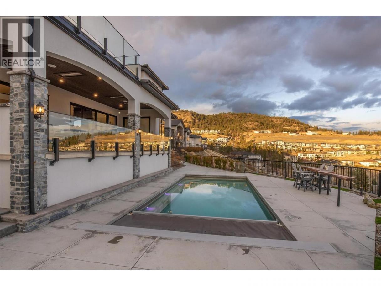 Nestled within the exclusive Vineyard View estates lies a rare gem, a meticulously crafted mini estate with mesmerizing lake and city views. No expense was spared in achieving the highest standards of quality for both the interior & exterior. Magnificent arched wooden front door gives access to the main living area which offers exquisite imported natural limestone tiles that flow seamlessly throughout, complemented by matching solid slab stair treads. The main floor has a luxurious primary suite which is designed to take full advantage of the stunning views. The exquisite kitchen features stunning titanium granite & high end appliances with custom hood fan. Great room offers an open ceiling with elegant details and natural stone gas fireplace. Floor-to-ceiling windows in both the great room and dining area provide breathtaking 180-degree views of the lake & city. Main floor also offers an office, guest powder rm & laundry facilities. The upper level offers 2 guest bedrooms, a full bath and a spacious family rm with access to an upper sundeck, all offering spectacular views of the lake and city. Oversized covered sundeck with tile floors, ceiling heaters and a built-in BBQ. Oversized triple garage with epoxy flooring with access to the mudroom with built-ins, large pantry. 6' crawl space w/stair access. Gated property offering ultimate privacy & magnificent landscaping w/multiple outdoor seating areas. Cozy fire pit, pool w/auto cover & pool bath.Tile roof, plenty of open pkg. (id:6769)