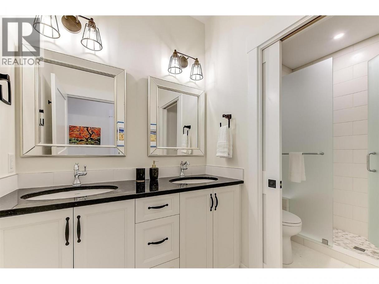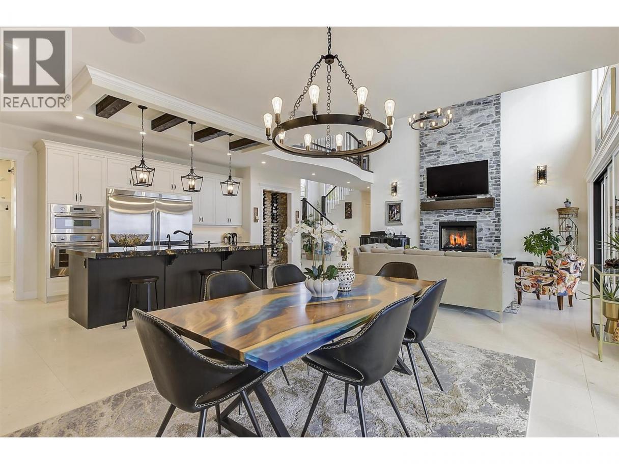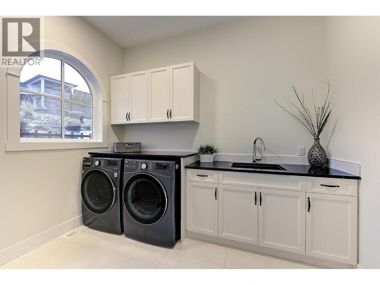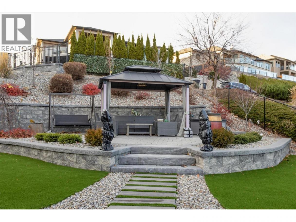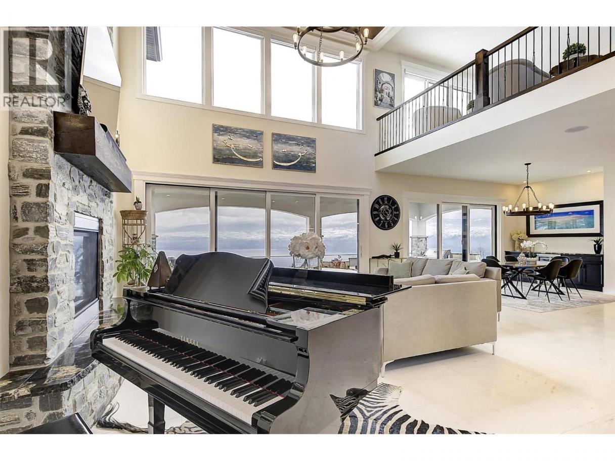 Nestled within the exclusive Vineyard View estates lies a rare gem, a meticulously crafted mini estate with mesmerizing lake and city views. No expense was spared in achieving the highest standards of quality for both the interior & exterior. Magnificent arched wooden front door gives access to the main living area which offers exquisite imported natural limestone tiles that flow seamlessly throughout, complemented by matching solid slab stair treads. The main floor has a luxurious primary suite which is designed to take full advantage of the stunning views. The exquisite kitchen features stunning titanium granite & high end appliances with custom hood fan. Great room offers an open ceiling with elegant details and natural stone gas fireplace. Floor-to-ceiling windows in both the great room and dining area provide breathtaking 180-degree views of the lake & city. Main floor also offers an office, guest powder rm & laundry facilities. The upper level offers 2 guest bedrooms, a full bath and a spacious family rm with access to an upper sundeck, all offering spectacular views of the lake and city. Oversized covered sundeck with tile floors, ceiling heaters and a built-in BBQ. Oversized triple garage with epoxy flooring with access to the mudroom with built-ins, large pantry. 6' crawl space w/stair access. Gated property offering ultimate privacy & magnificent landscaping w/multiple outdoor seating areas. Cozy fire pit, pool w/auto cover & pool bath.Tile roof, plenty of open pkg. (id:6769)
