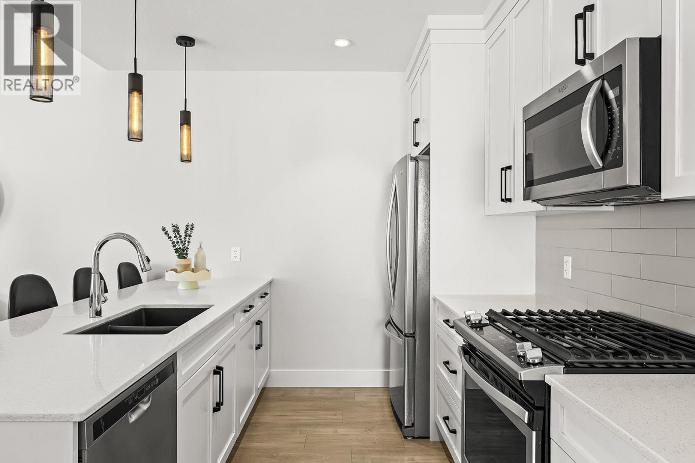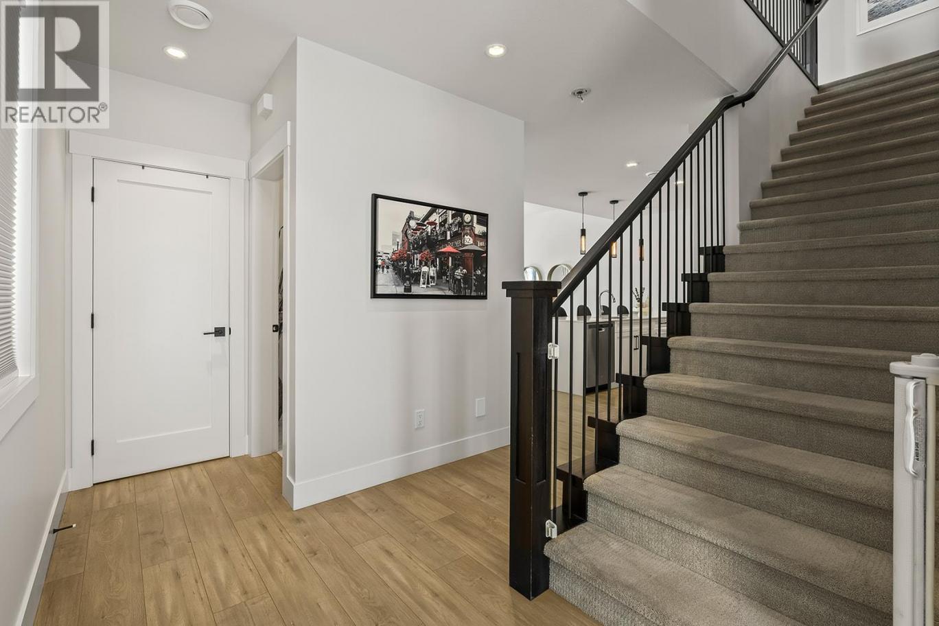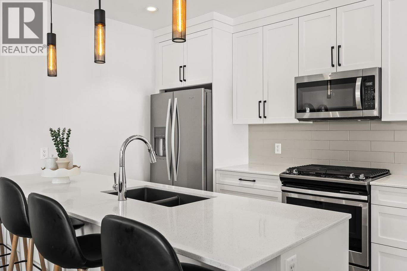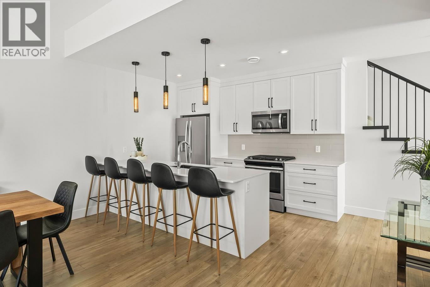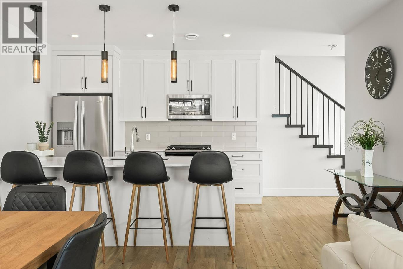 Modern half duplex living in North Glenmore – with NO STRATA! Completed in 2020, this 3 bedroom + flex / 2.5 bath home blends style, comfort, and functionality. The main level showcases bright, open spaces with large windows, a sleek gas range, soft-close cabinetry, and an oversized quartz island that naturally becomes the heart of the home. Upstairs, the primary retreat impresses with a spacious ensuite featuring dual sinks and quartz counters, plus a generous walk-in closet. Two additional bedrooms enjoy great natural light, while the versatile flex space can easily serve as a home office, gym, or media room. The fenced backyard offers privacy and plenty of room for kids and pets to play—without restrictions while you enjoy the mountain views. Designed for today’s busy lifestyles, this home also includes excellent storage solutions, a convenient upper-floor laundry, and ample parking with space for up to 5 vehicles. Tucked into a friendly North Glenmore neighbourhood, you’ll love the easy access to schools, shopping, parks, and transit. A rare, move-in ready opportunity in a sought-after location! (id:6769)