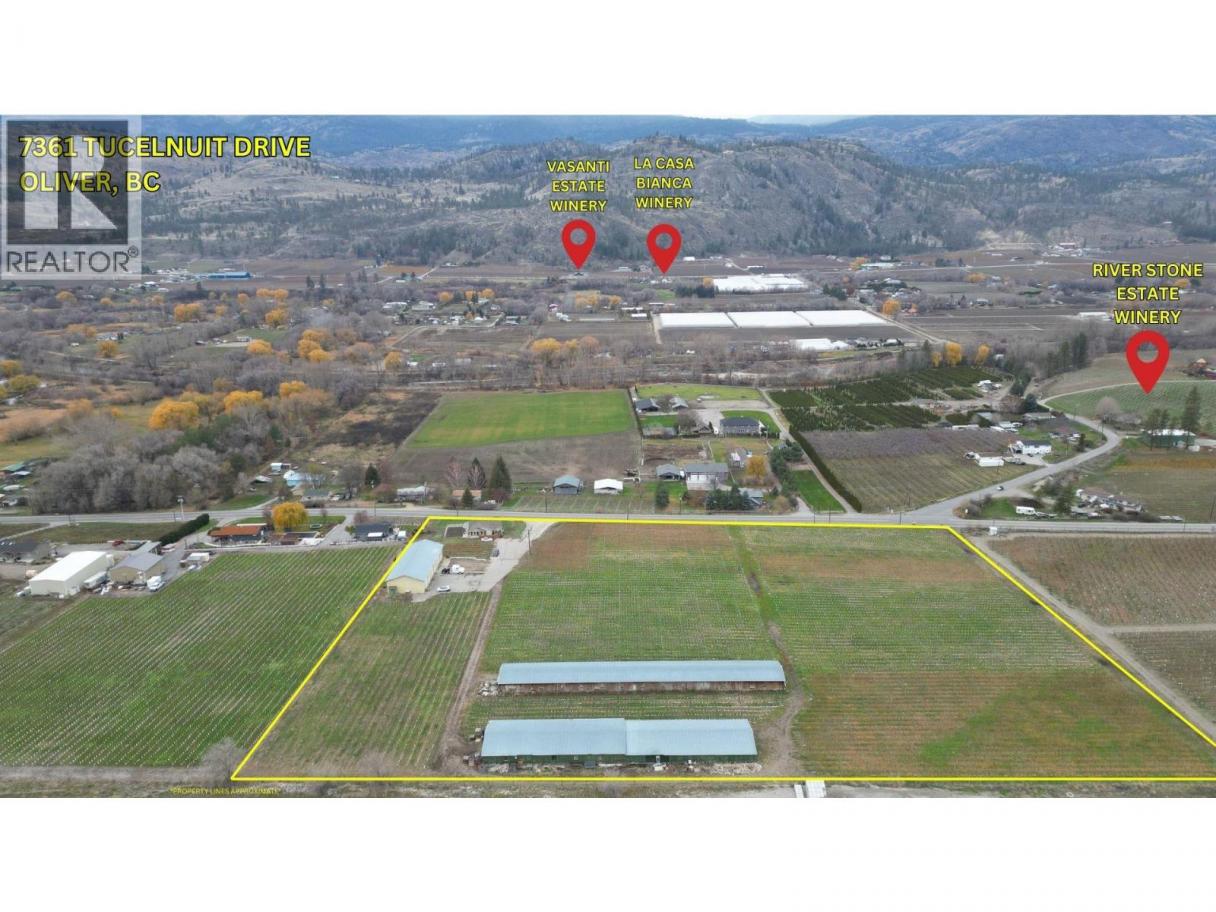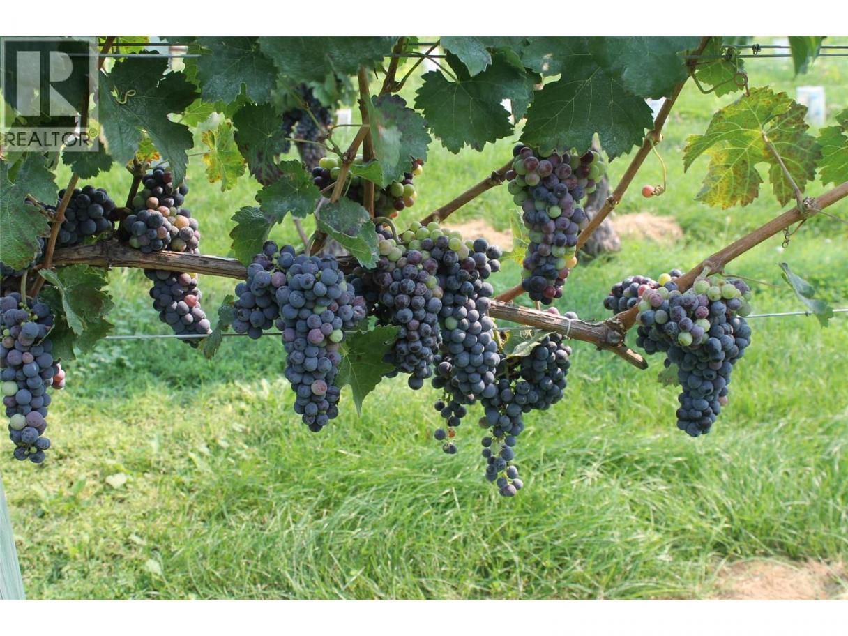 Vineyard : Close to Golden Mile and Black Sage Bench in the Wine Capital of Canada. Varietals: Cabernet Franc, Merlot, Malbec, Syrah, Sauvignon Blanc and Pinot Gris grown for award-winning wines locally. Viticulture: Grafted vines to create authentic varietals from this unique terroir. 7 x 3 spacing for optimum vine spacing, tractor access and optimum grape growing. VSP (Vertical Shoot Positioning) trellising to allow quality vine growth and cane separation. Drip, sprinkler, and overhead irrigation for diversification of watering for vines and cover crops. North-South row alignment for maximum sunlight exposure throughout the season. Condition: The vineyard comprises a combination of mature vines and a partial replant program. Parts of the vineyard are in their second year of a recent replant program, with full production expected in a couple of years. Rootstock: All vines are Vinifera grafted on American rootstock, providing robust disease and pest resistance, plus root adaptability. Production Building: A conveniently situated 4,000 sq ft manufacturing facility with tall ceilings and a central drain. Three-bay access to a twin space equipped with single phase power emanating from a three phase supply. A 5,000 sq ft concrete pad outside. Storage/Equipment Barns: Two massive barns with a total of 8,400 sq ft. Farmhouse: Two storey built in 1976 and recently updated/modernized, divided into two separate tenanted suites each with heat pumps, AC, and hot water. (id:6769)